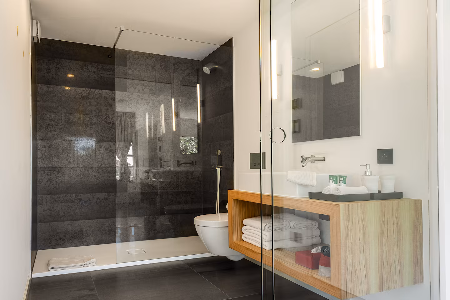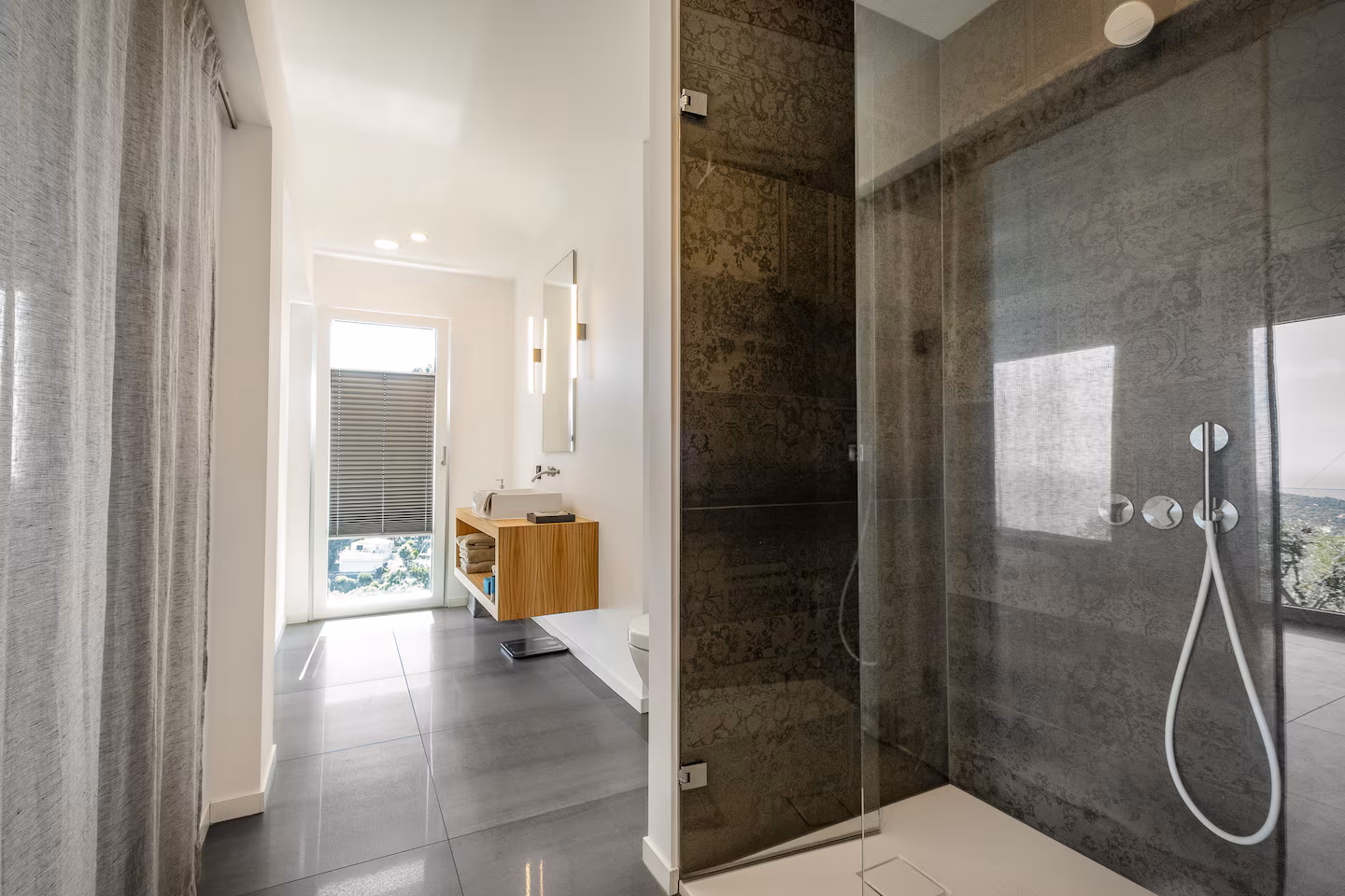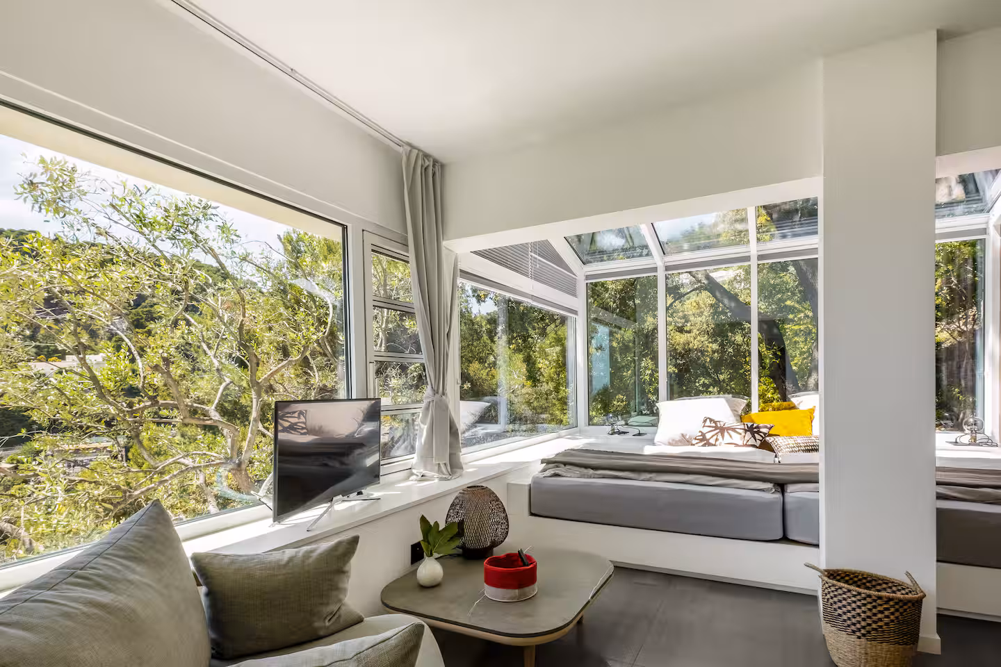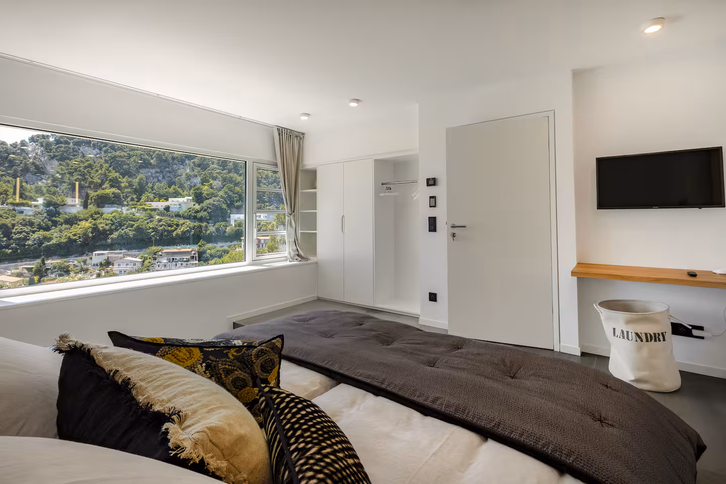 La Terra Vila est magnifiquement située sur une paroi rocheuse, orientée au sud-ouest et offrant une vue imprenable sur la mer depuis presque toutes les pièces. L’accès à la villa commence par une allée privée qui mène à un ascenseur en verre. Le premier arrêt vous conduit à une spacieuse piscine à débordement, d’où l’on jouit d’une vue à couper le souffle sur la baie. Le deuxième arrêt permet d’accéder à la villa par un sentier taillé dans les parois rocheuses. Une fois que vous tournez à gauche et entrez dans la villa, c’est un moment que les mots ne peuvent pas entièrement capturer.