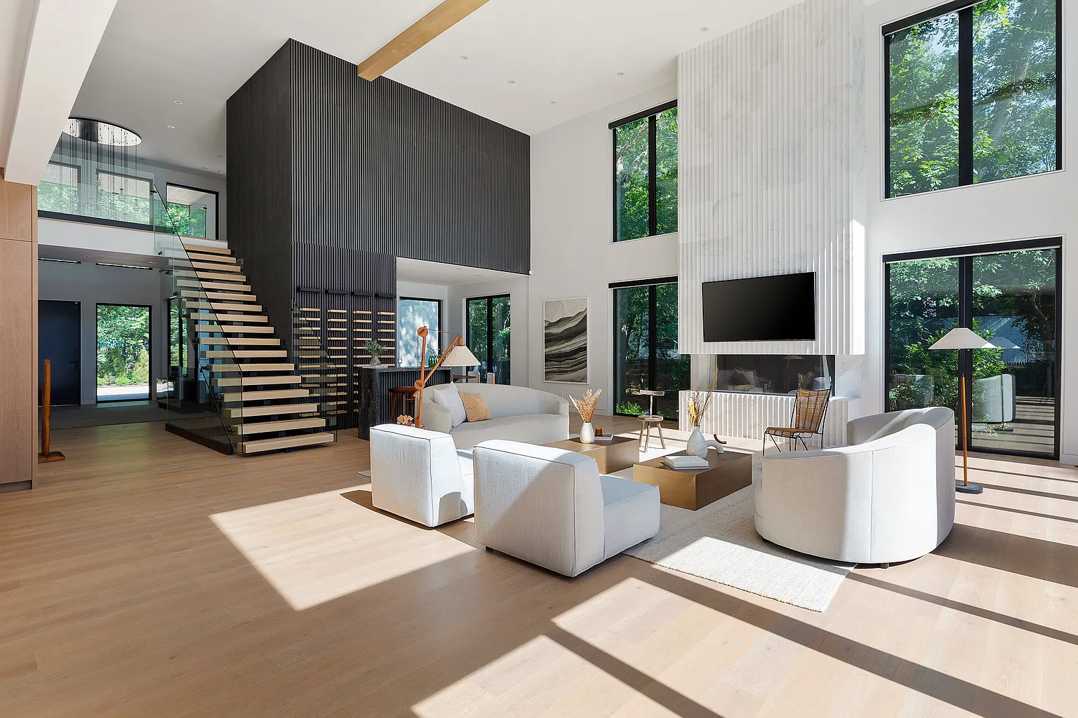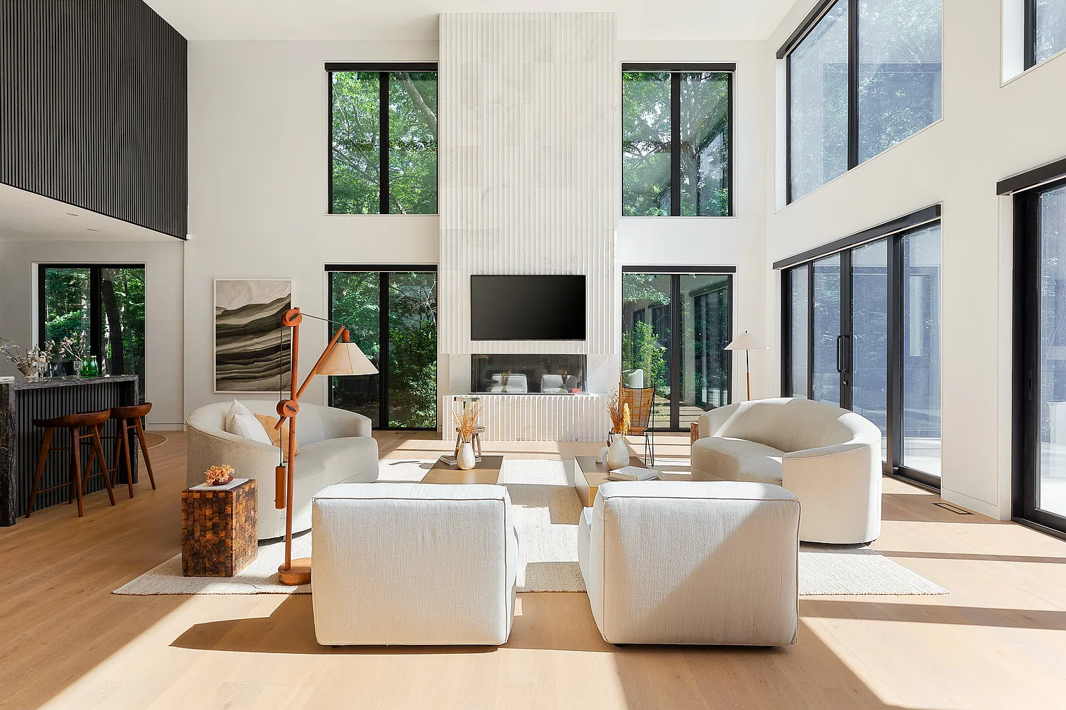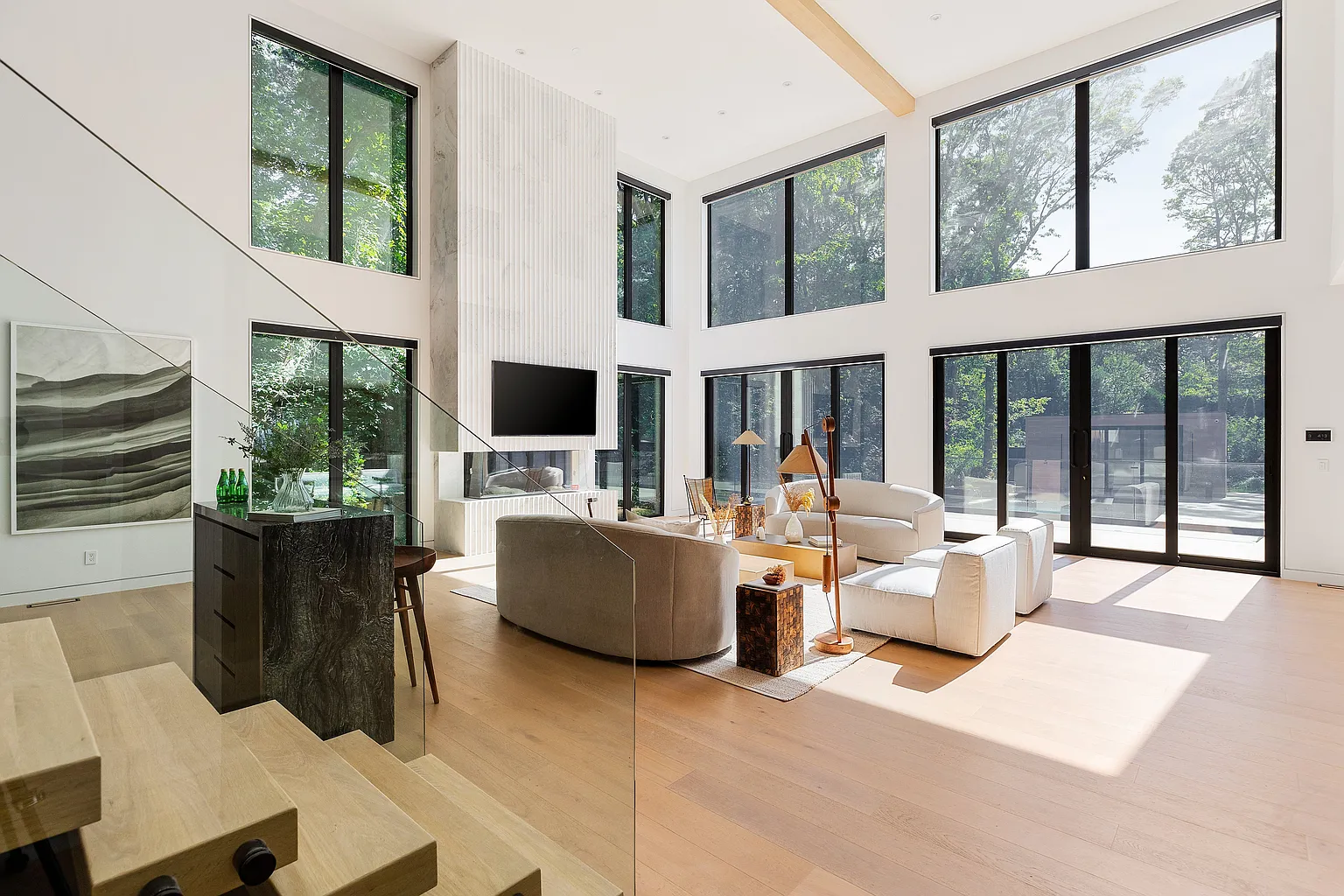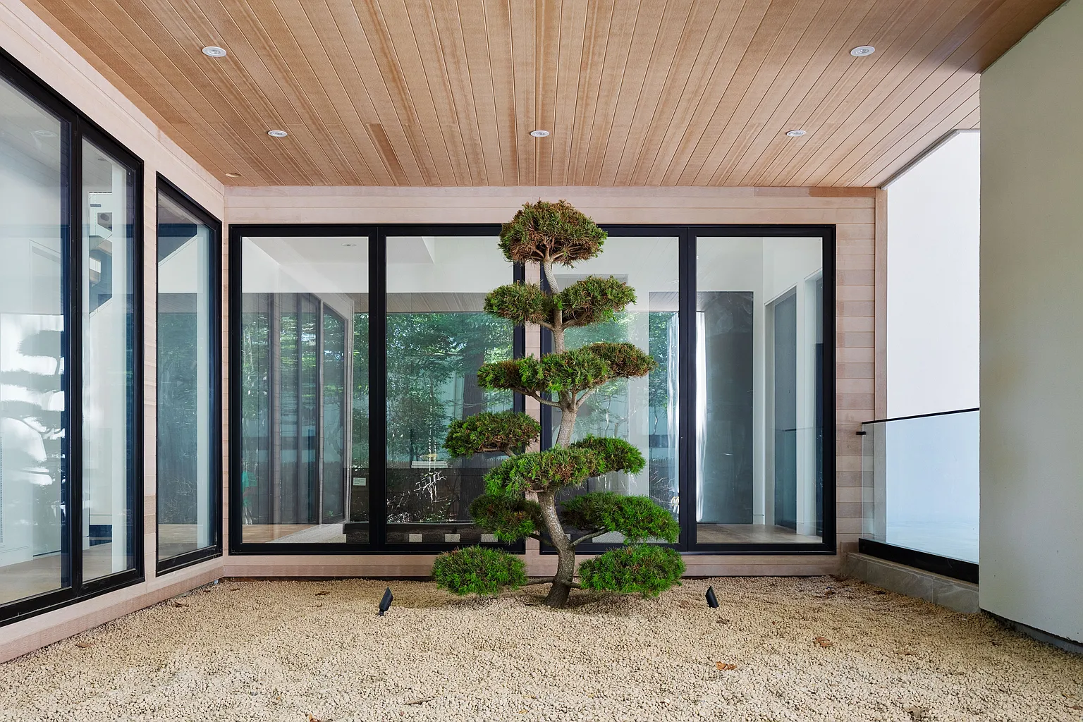 Entrez dans un tout nouveau chef-d’œuvre moderne qui incarne un design exquis et un luxe inégalé. Cette résidence à couper le souffle comprend 7 chambres à coucher et 10 salles de bains, nichées sur 1,4 acres de terrain de premier choix au sud de l’autoroute. Accessible par une allée pittoresque et boisée, la maison offre un sentiment exceptionnel d’intimité et de tranquillité. D’une superficie impressionnante de 6 350 pieds carrés, l’intérieur est orné d’élégants planchers en chêne blanc qui rehaussent son esthétique contemporaine. Dès l’entrée, vous êtes accueilli par un magnifique jardin zen intérieur, visible depuis le foyer et le salon, qui donne un ton serein à la maison.