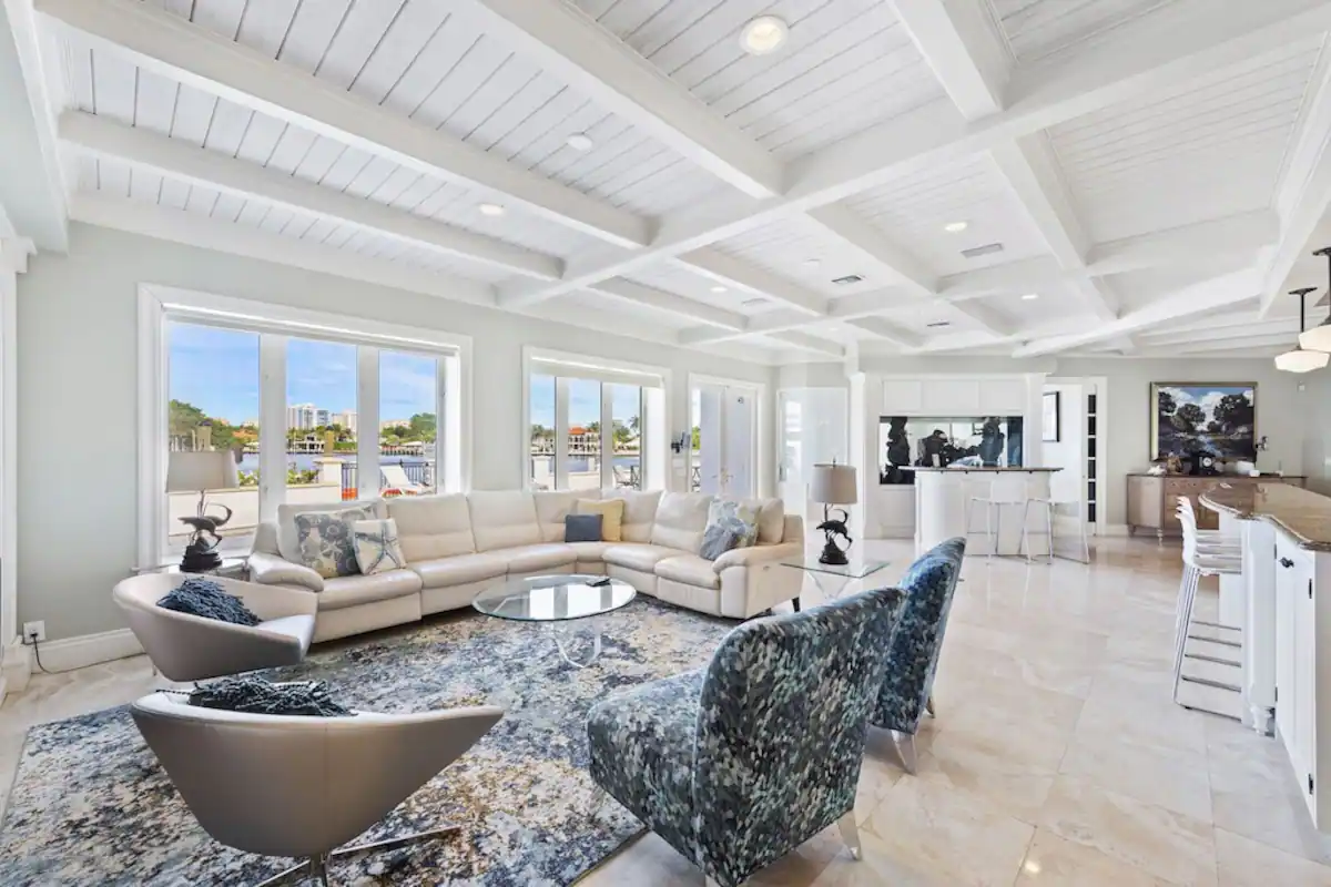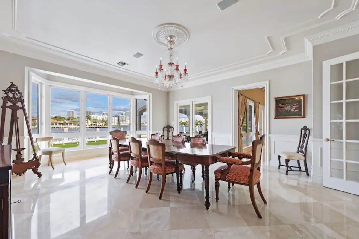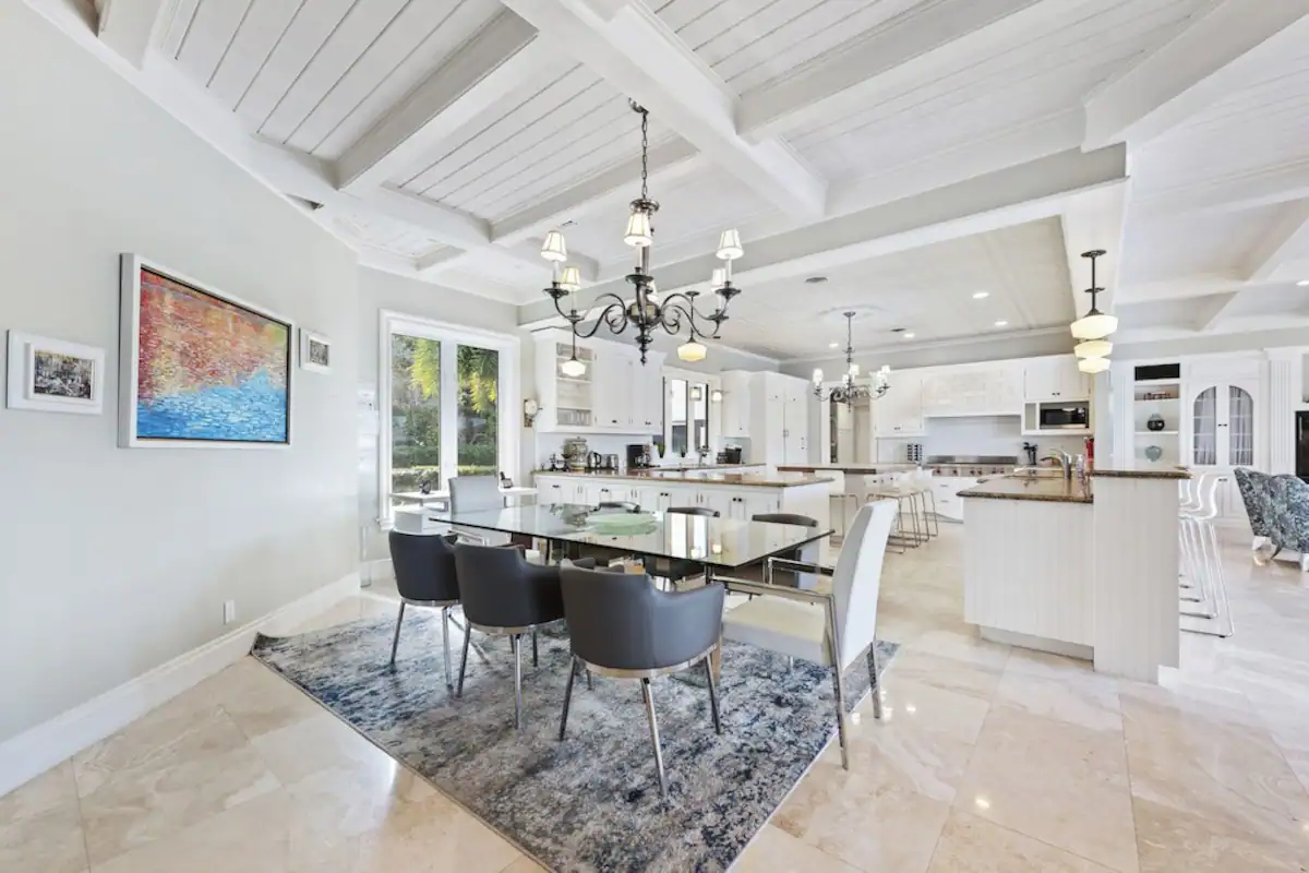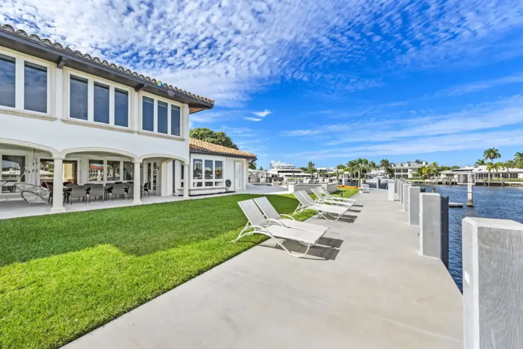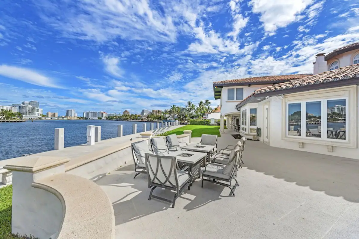Experience the ultimate getaway at your own luxurious estate along the Intracoastal Waterway! This stunning 7-bedroom residence is adorned with sparkling chandeliers, elegant interior balconies, and expansive gathering spaces that invite both relaxation and celebration. The highlight of the property is the picturesque waterside yard, complete with inviting dining areas, perfect spots for drinks and socializing, as well as a refreshing pool and spa for your at-home relaxation.