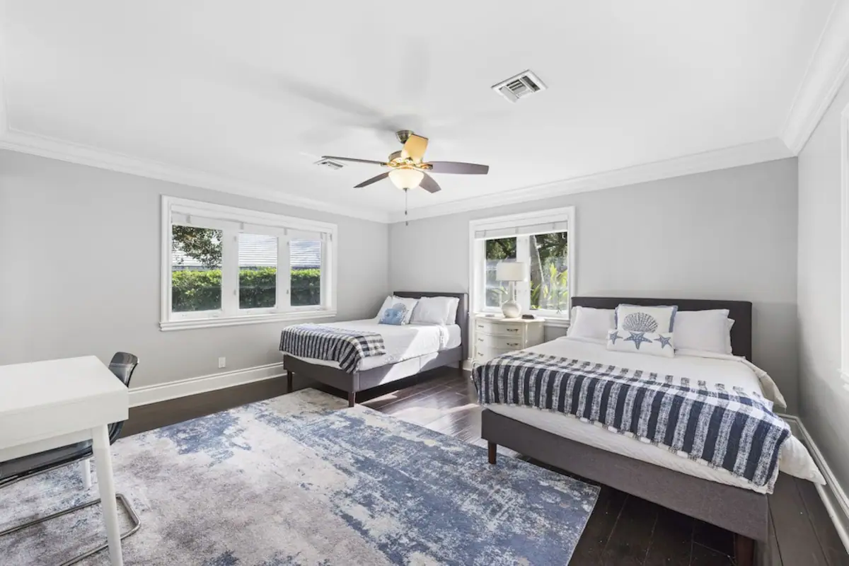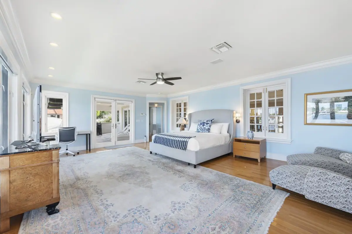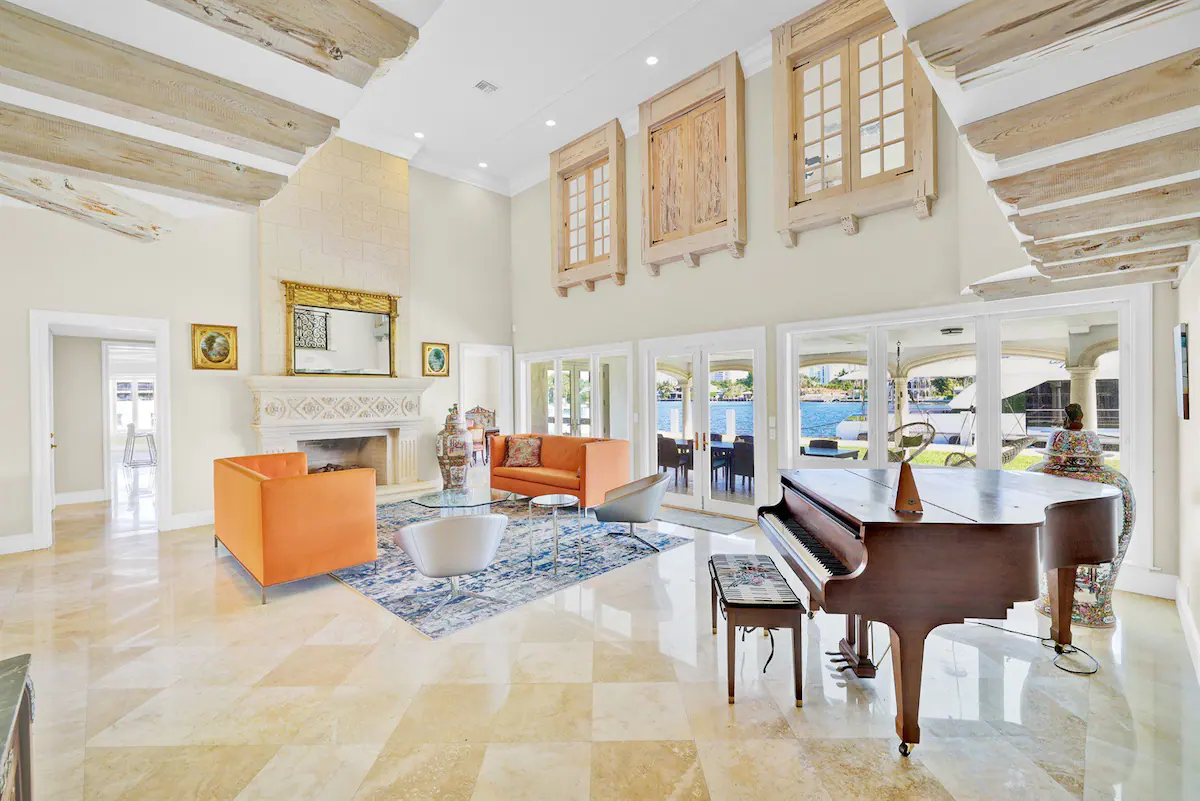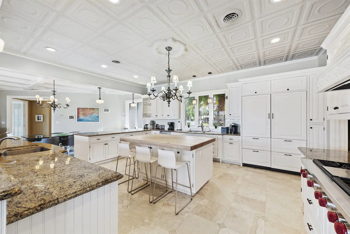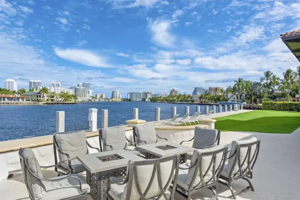 Experience the ultimate getaway at your own luxurious estate along the Intracoastal Waterway! This stunning 7-bedroom residence is adorned with sparkling chandeliers, elegant interior balconies, and expansive gathering spaces that invite both relaxation and celebration. The highlight of the property is the picturesque waterside yard, complete with inviting dining areas, perfect spots for drinks and socializing, as well as a refreshing pool and spa for your at-home relaxation.