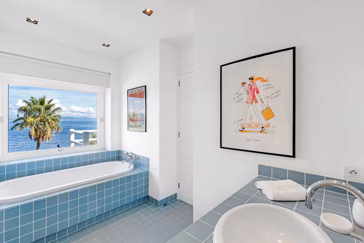 Discover this stunning villa nestled within the prestigious and secure domain of Les Parcs de Saint-Tropez, just minutes away from the vibrant village center and the renowned Pampelonne beaches. Boasting breathtaking sea views, the property features five elegantly appointed bedrooms, a spacious living room complete with a cozy fireplace, a stylish dining area, and a fully equipped kitchen. Enjoy the luxury of a heated swimming pool, a hammam, and modern amenities including air conditioning and a comprehensive security alarm system.