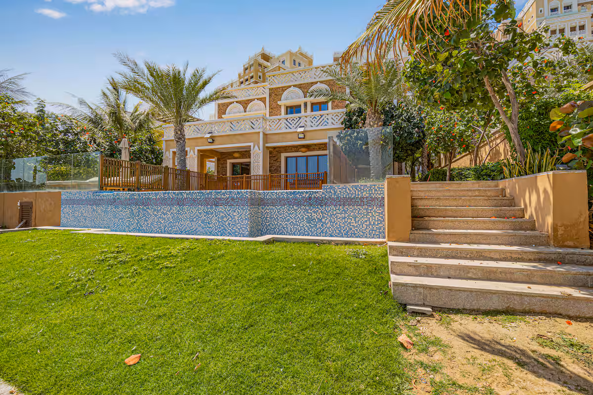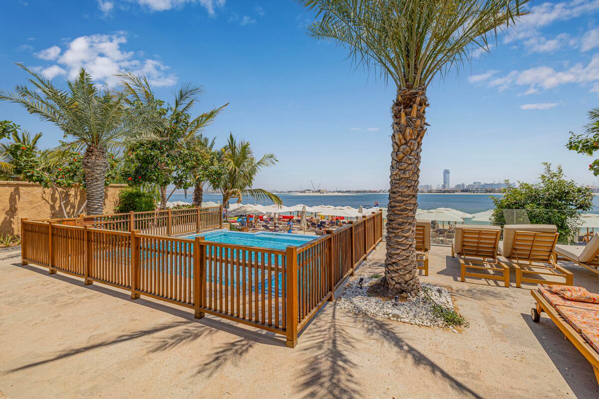Discover unparalleled opulence in this exquisite 8-bedroom villa, meticulously upgraded to perfection. With direct access to a pristine beach, you can indulge in breathtaking views of iconic landmarks such as Atlantis, Burj Al Arab, and Dubai Marina. The stunning infinity pool seamlessly merges with the horizon, offering a serene oasis that invites relaxation and entertainment.