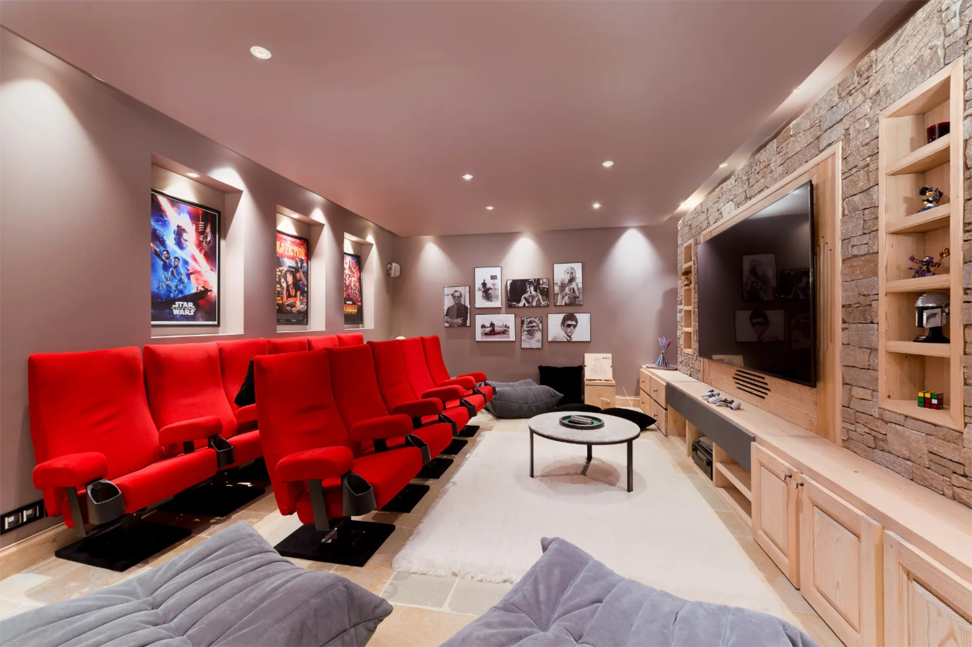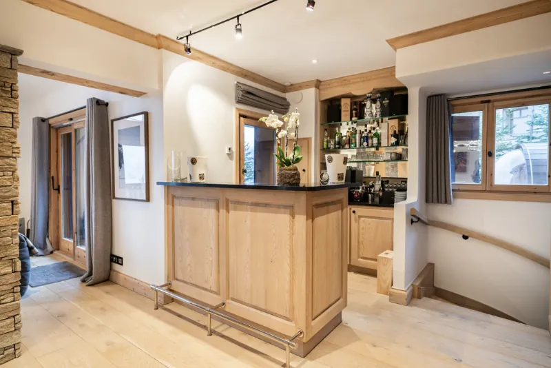 Embrace the gourmet offerings of a professional kitchen and a wine cellar sure to delight connoisseurs. Share popcorn and emotions in a cinema-like atmosphere, then continue the evening in the chalet’s club, complete with billiards, a jukebox, and karaoke. Gather with family and friends in the magnificent dining room or the cozy living area, featuring a bar and a wood-burning fireplace, all while enjoying breathtaking 180-degree views of the Alps. Experience a unique stay at the edge of the slopes, just moments away from shops—truly one of the most beautiful locations in Courchevel.