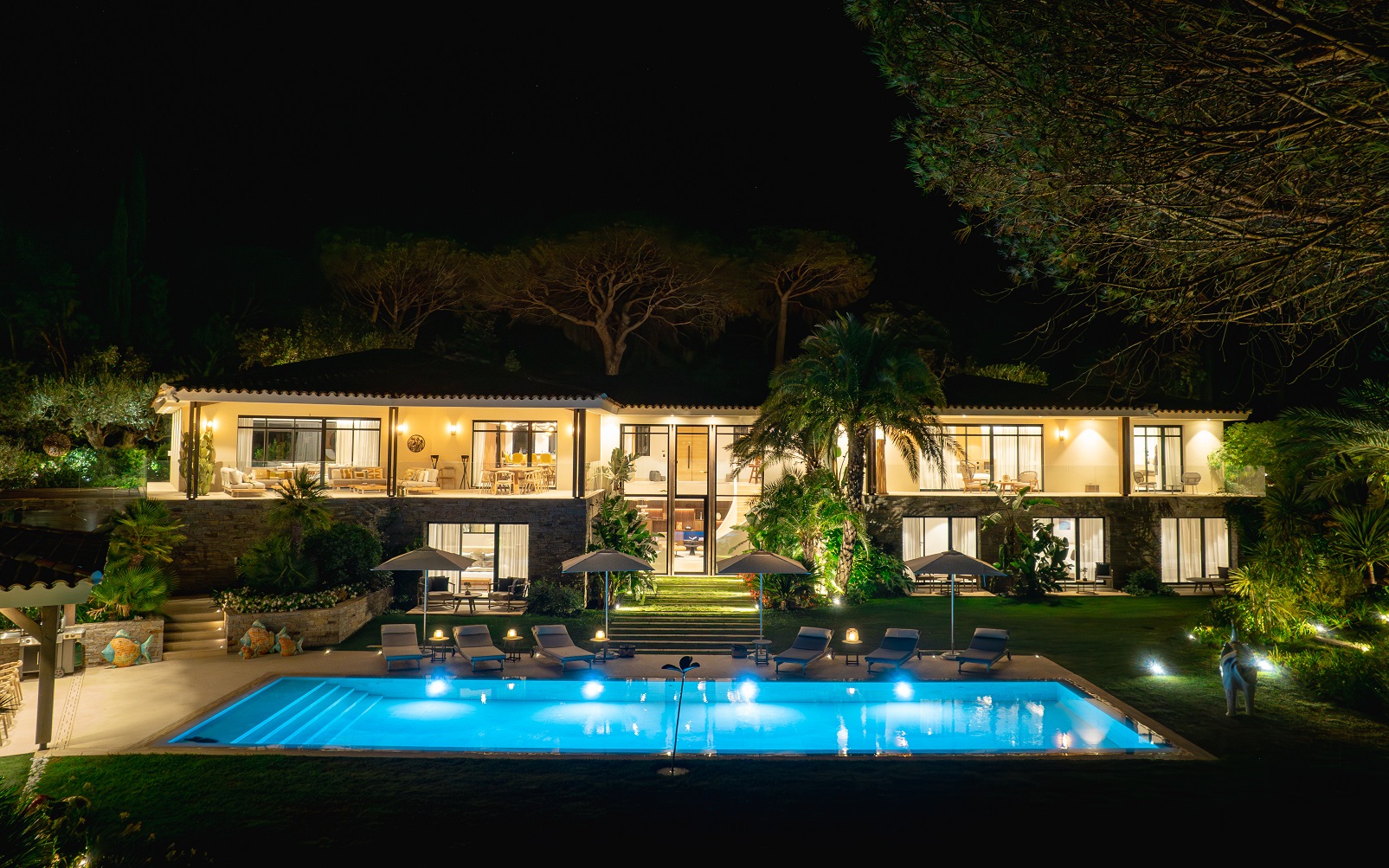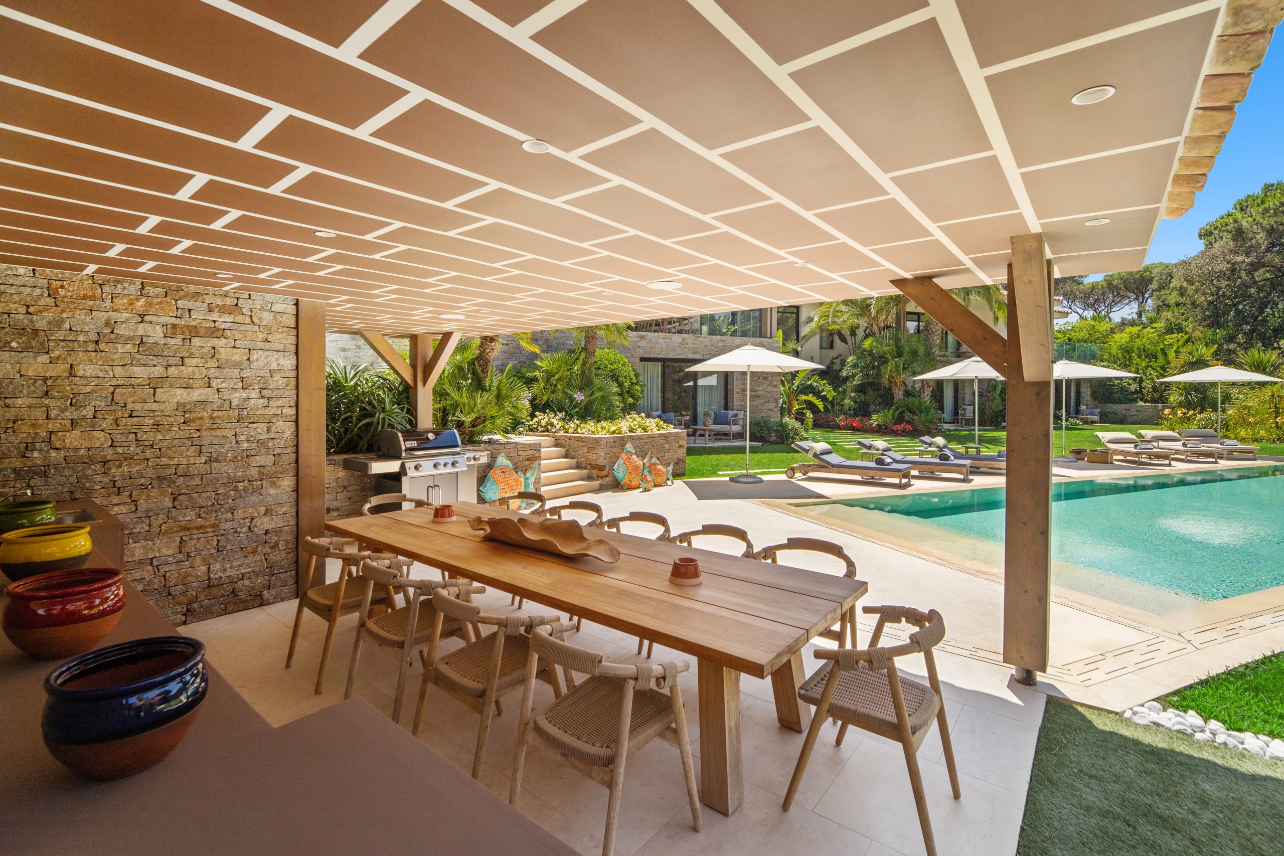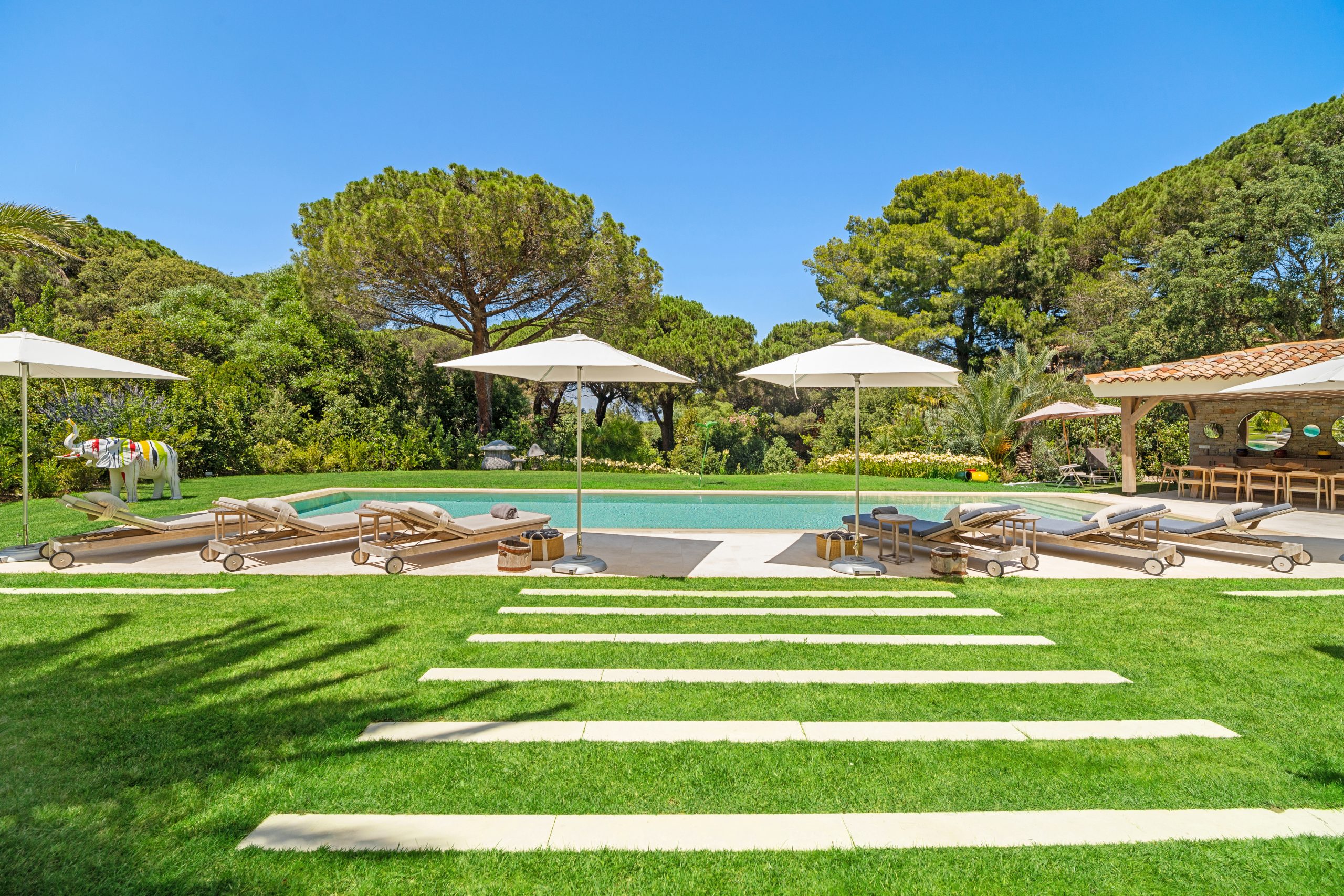 Unwind and indulge in this modern, stylish, and brand-new villa nestled in the exclusive Les Parcs de Saint Tropez. Perfectly situated amidst lush nature, this villa epitomizes “la crème de la crème” of Saint Tropez living. Known as the billionaire’s row, Les Parcs offers the utmost privacy and security, making it the safest peninsula in the heart of this glamorous destination.