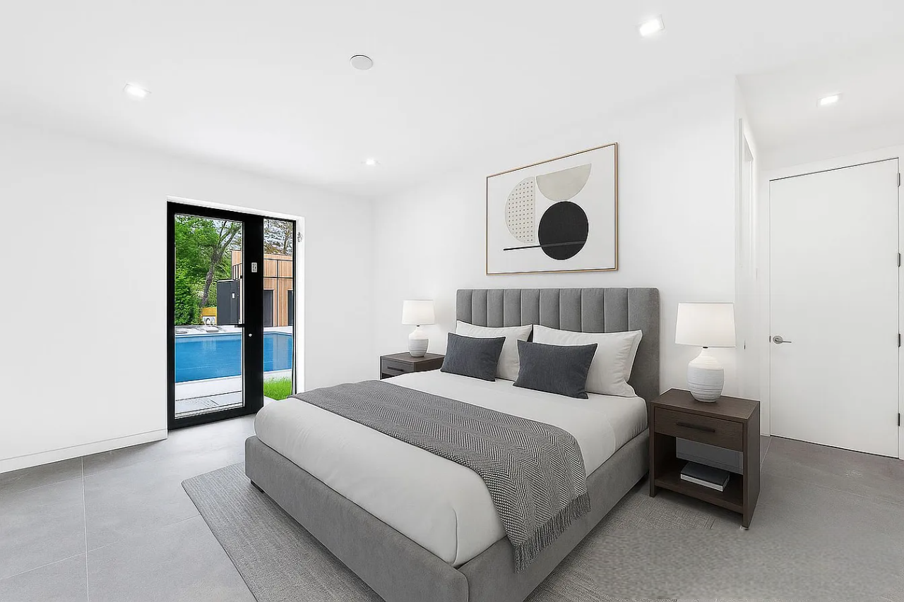 Discover a remarkable blend of striking modern architecture and sustainable innovation in this newly constructed estate, set on 1.1 acres of meticulously landscaped grounds. Spanning over 9,000 square feet across three levels, the residence boasts 8 bedrooms, 8 bathrooms, and 2 powder rooms, all designed with an open, column-free layout that enhances both space and natural light. Built from durable concrete and enveloped in super insulation, the home is powered by a comprehensive solar panel array, capable of meeting all its energy needs.