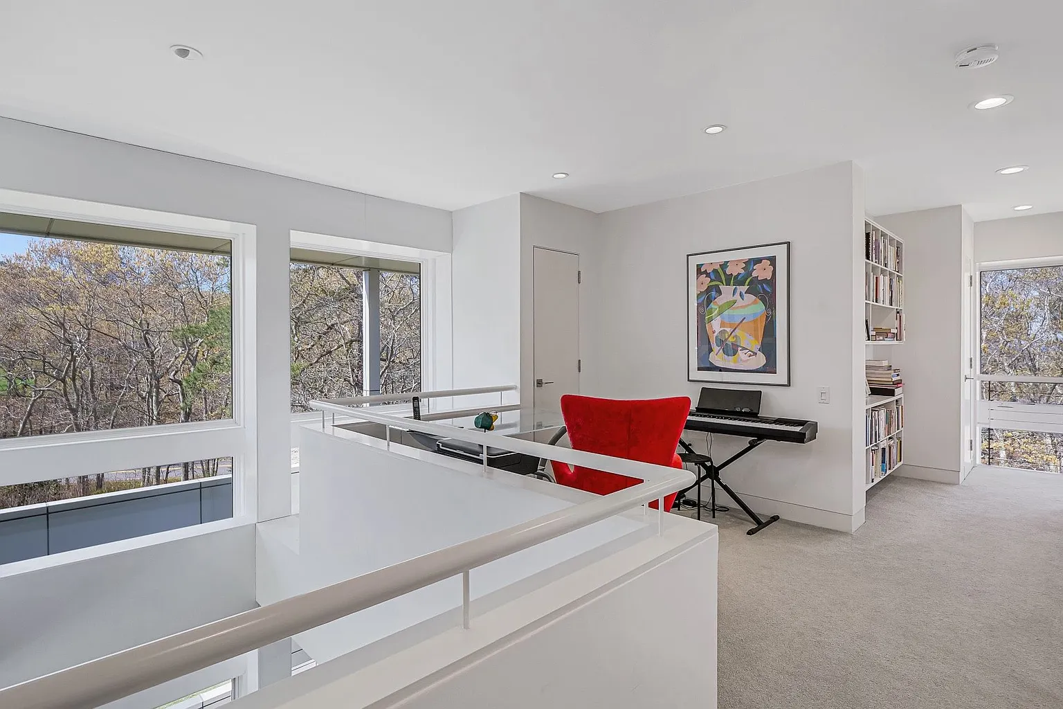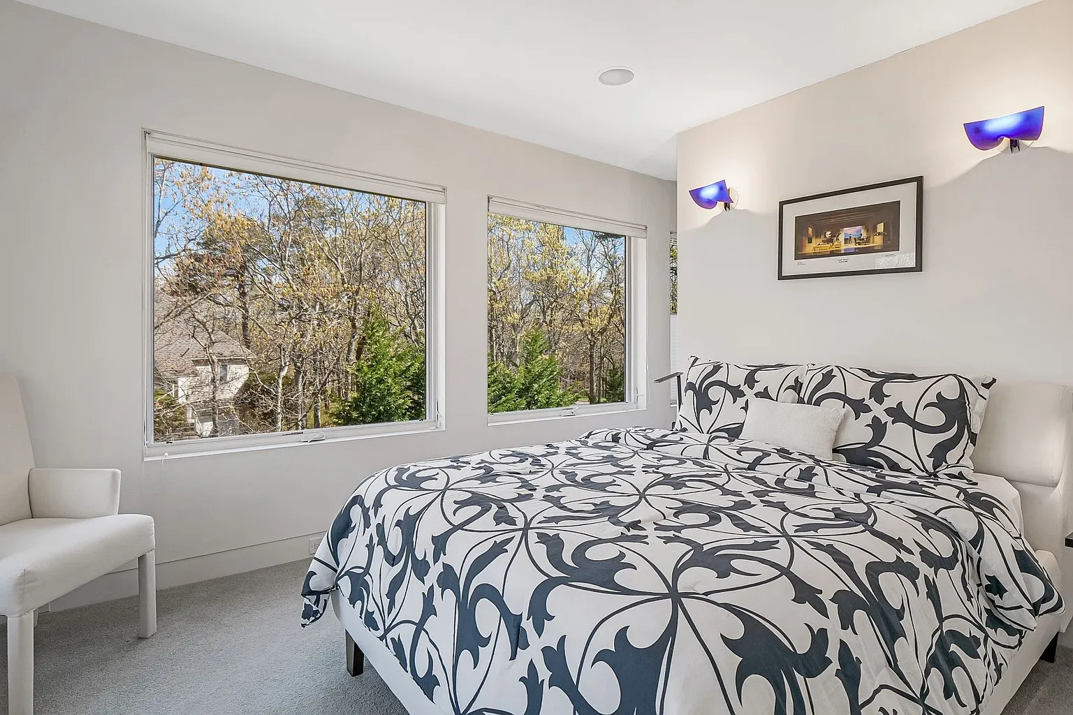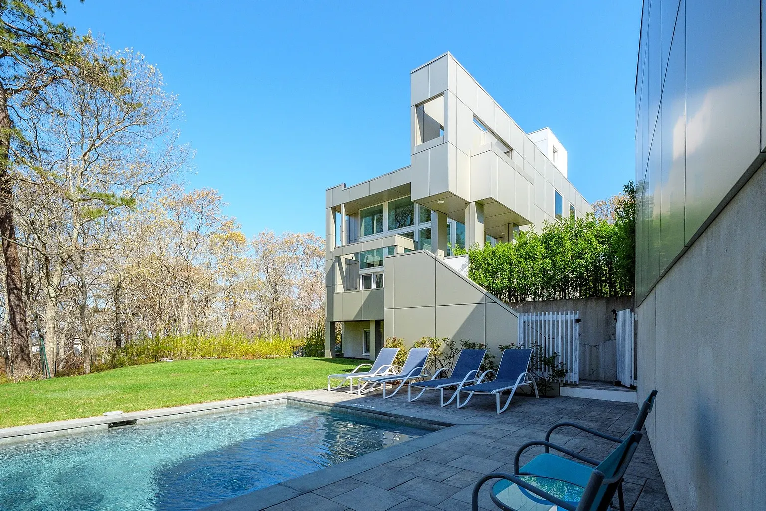 On the upper level, you’ll find two en-suite bedrooms, one of which features its own private deck, alongside a workspace that overlooks the treetops. The lower level is home to two guest bedrooms, a bathroom, a den, and a laundry area. Additionally, the property boasts a solar-heated gunite saltwater pool and comes equipped with kayaks, bikes, golf clubs, and a ping pong table, ensuring ample opportunities for leisure and outdoor activities.