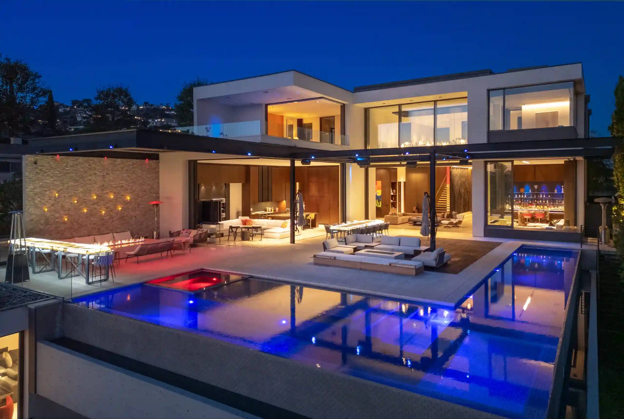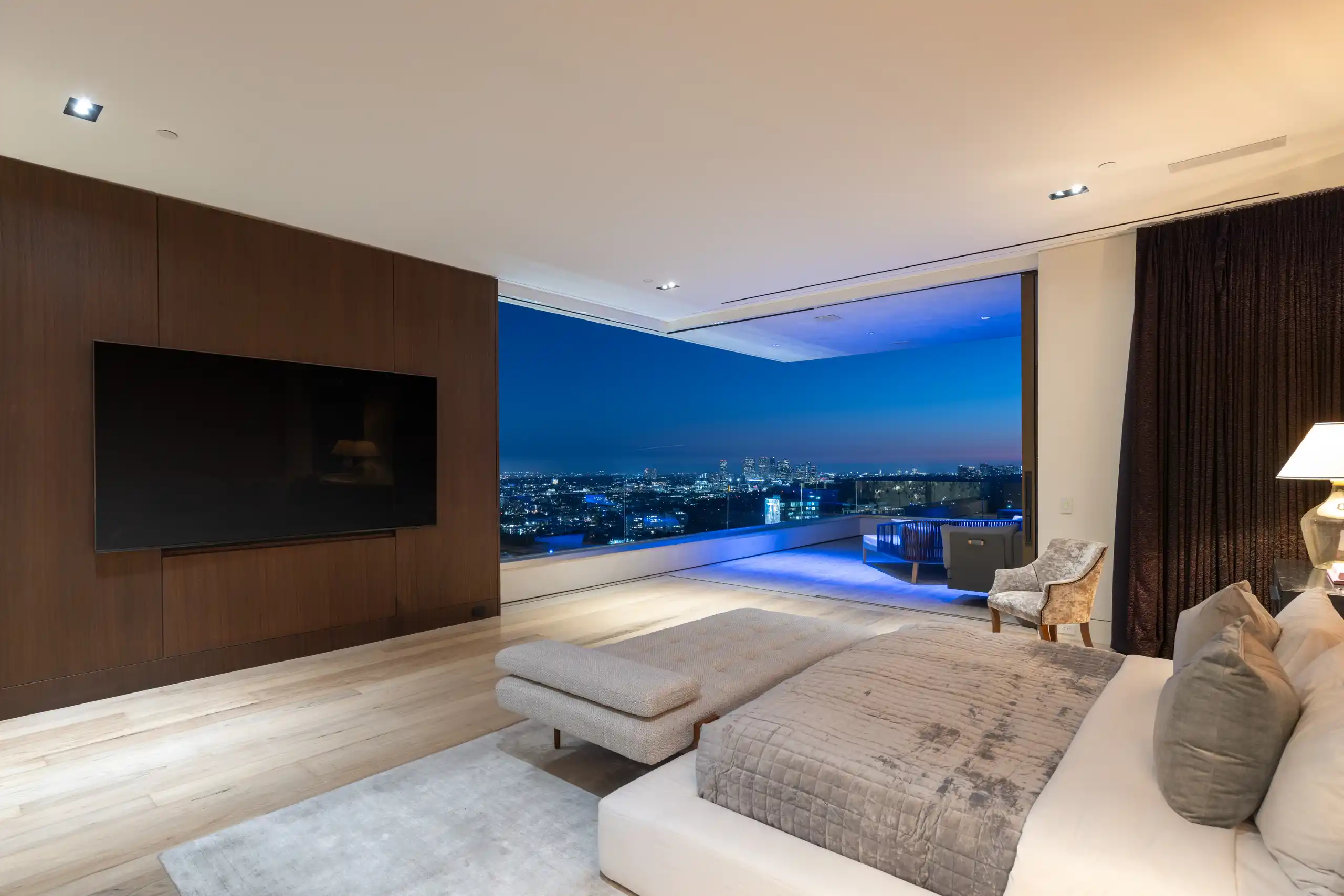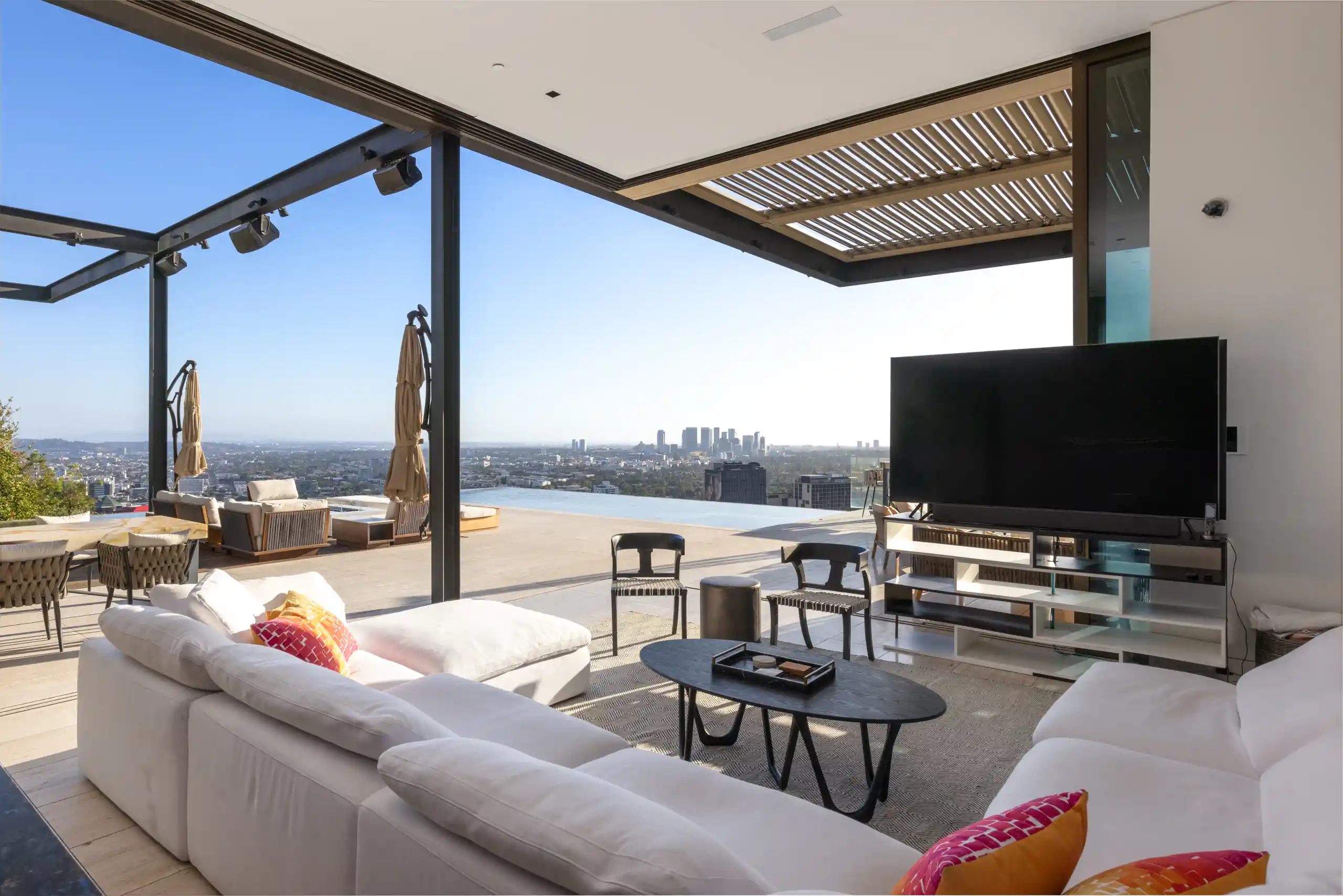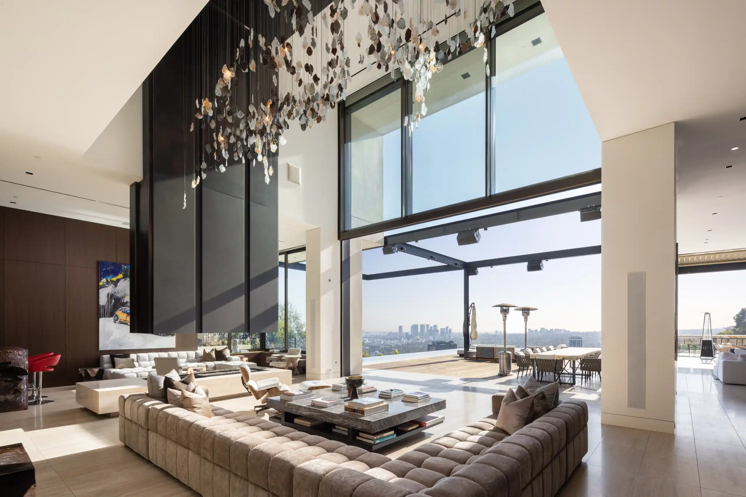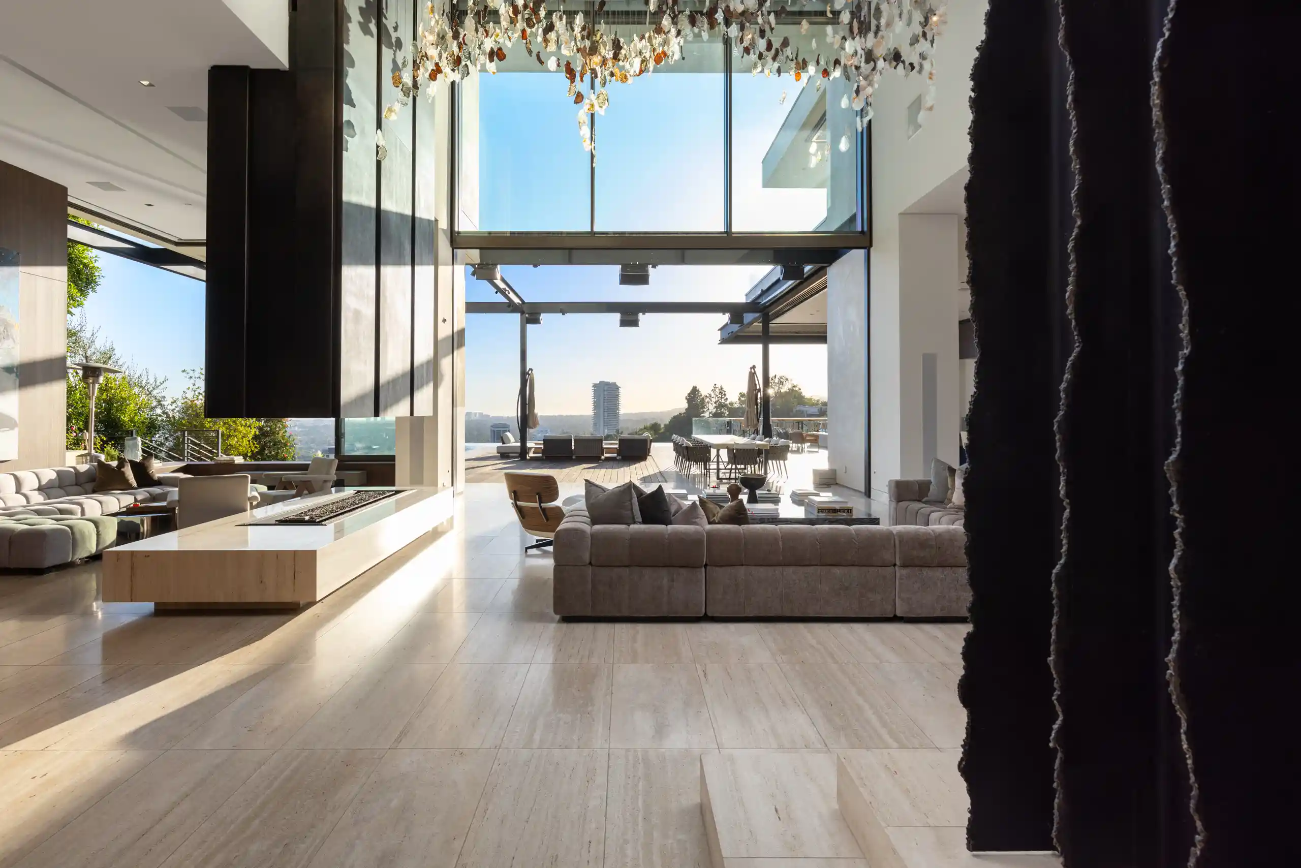 Perched on a coveted promontory, a premier architectural estate offering 11,800 square feet of sophisticated living space. This six-bedroom, seven-bathroom residence features panoramic views from Downtown Los Angeles to the Pacific Ocean, framed by dramatic retractable glass walls.