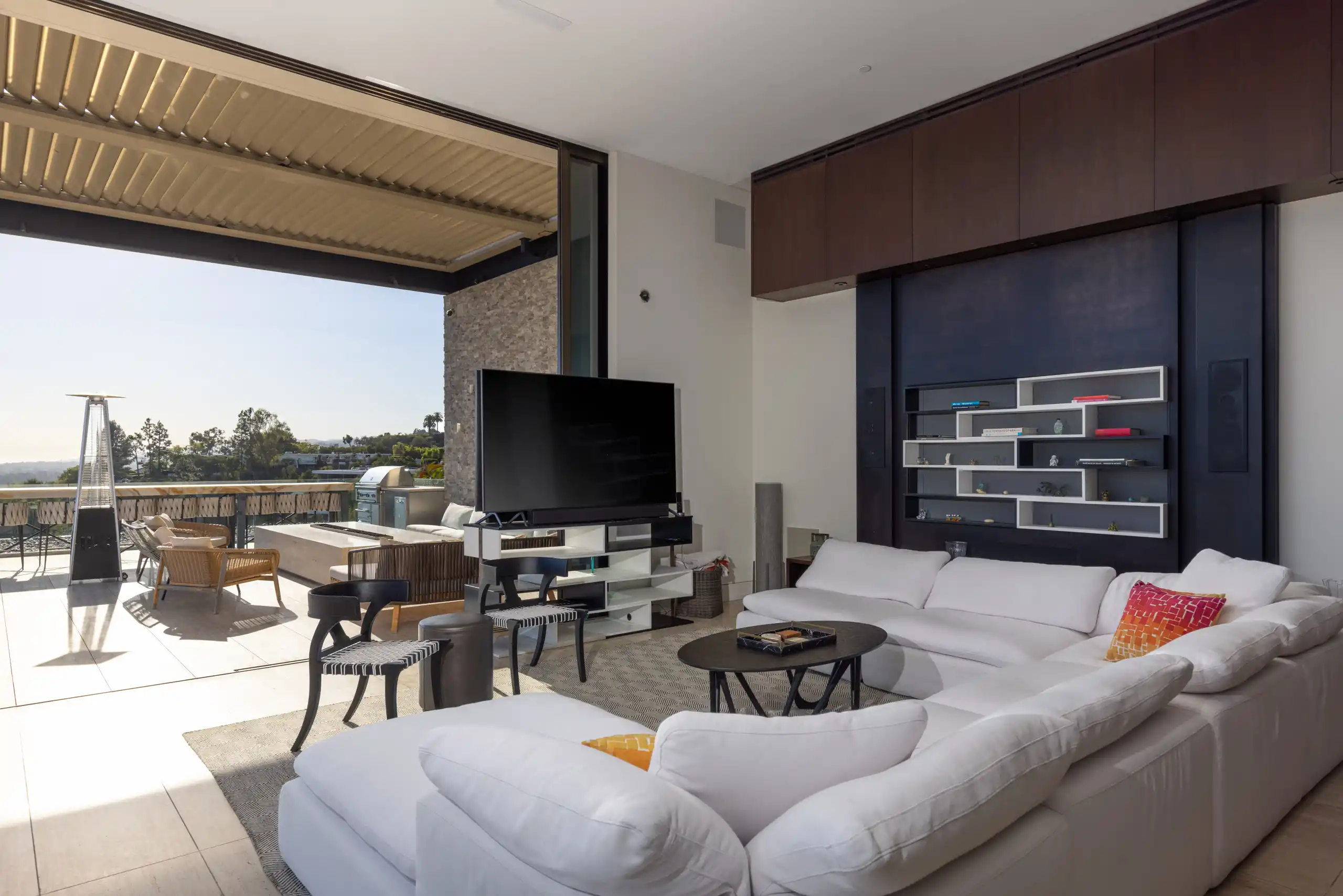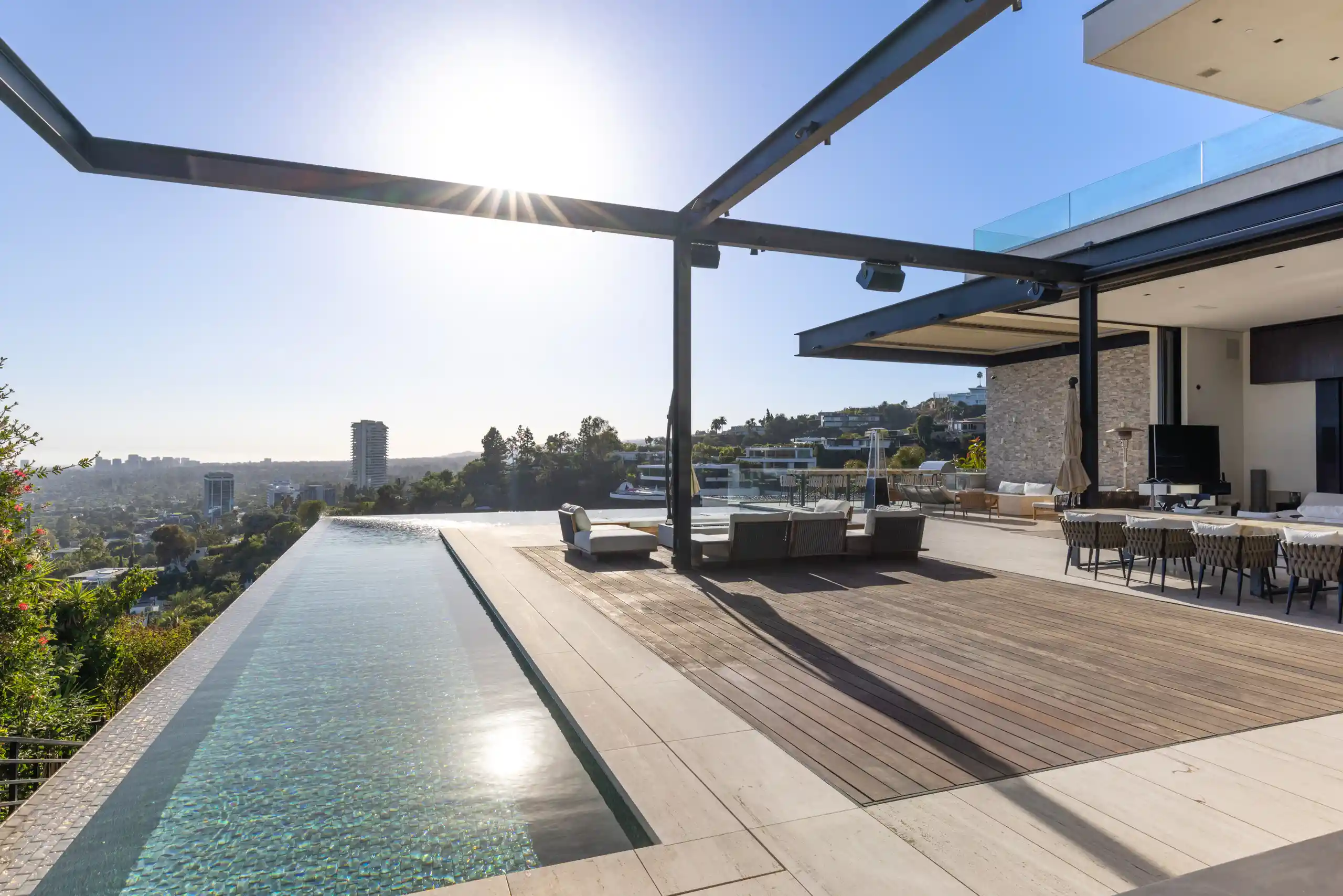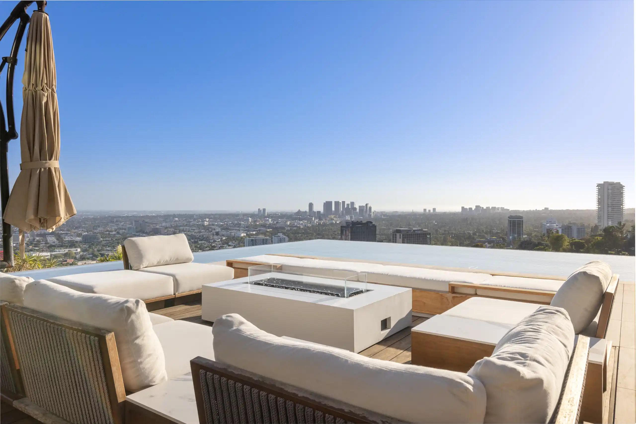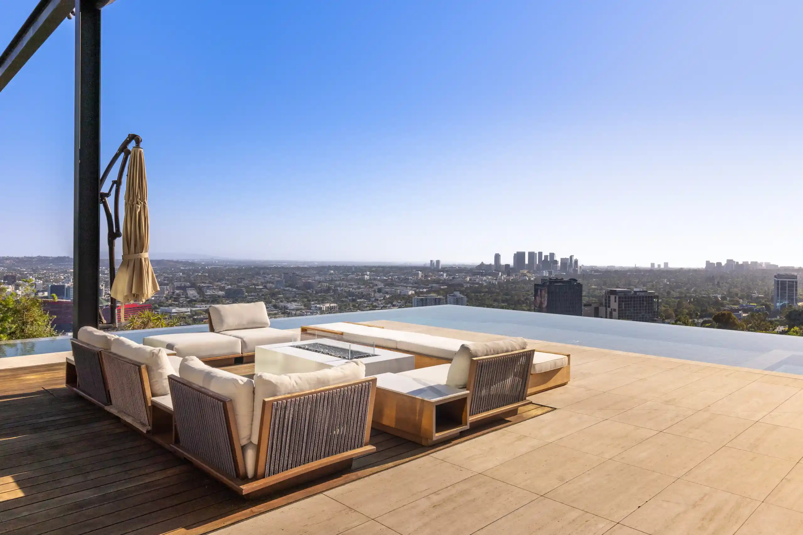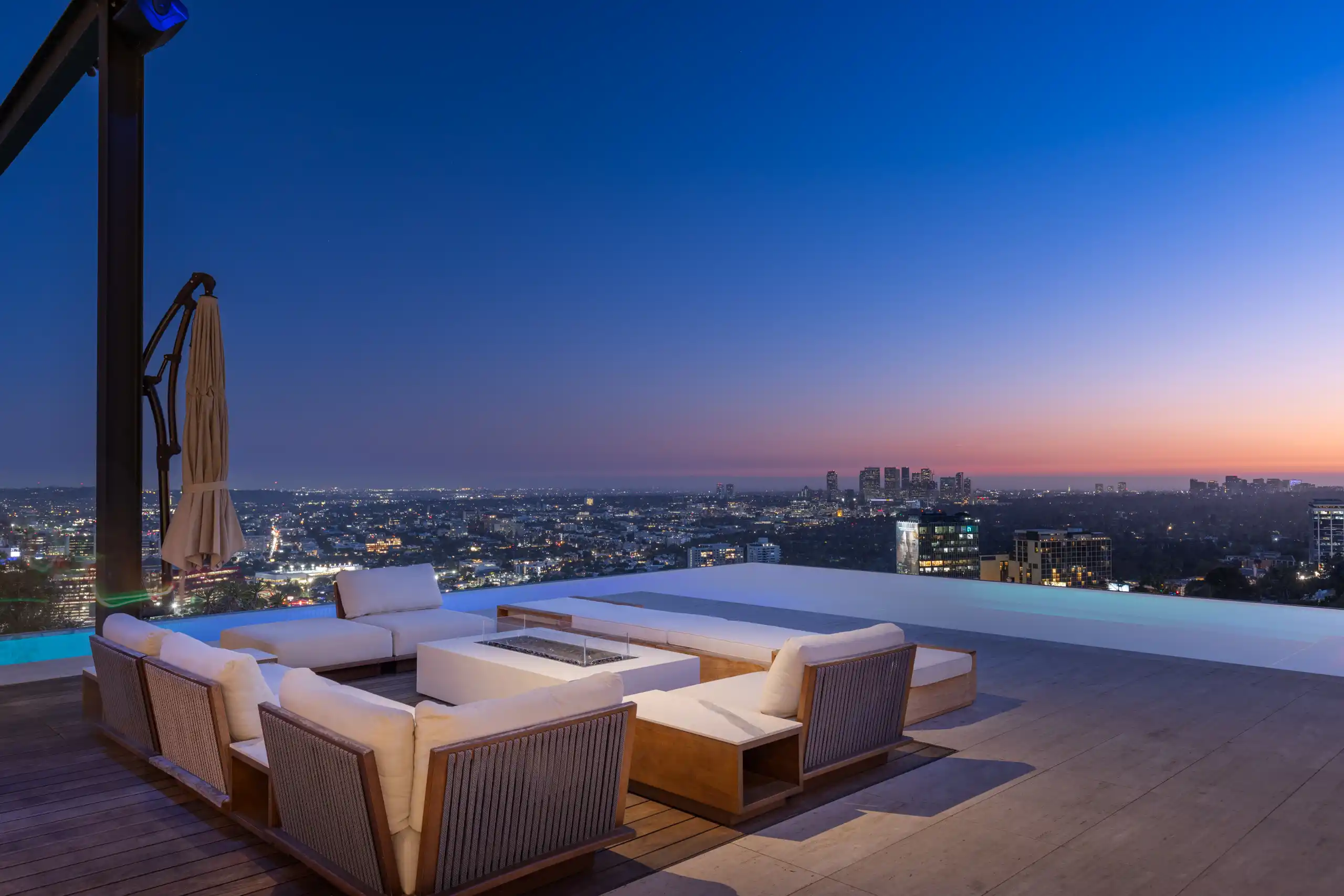 Perched on a coveted promontory, a premier architectural estate offering 11,800 square feet of sophisticated living space. This six-bedroom, seven-bathroom residence features panoramic views from Downtown Los Angeles to the Pacific Ocean, framed by dramatic retractable glass walls.
