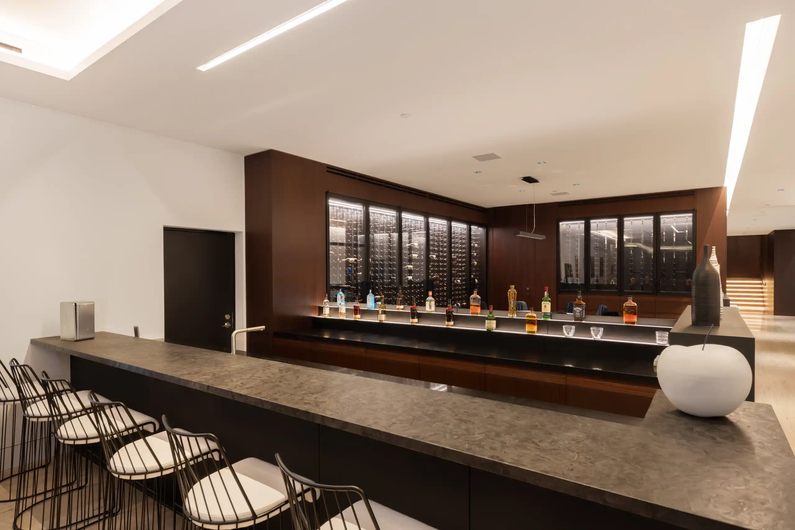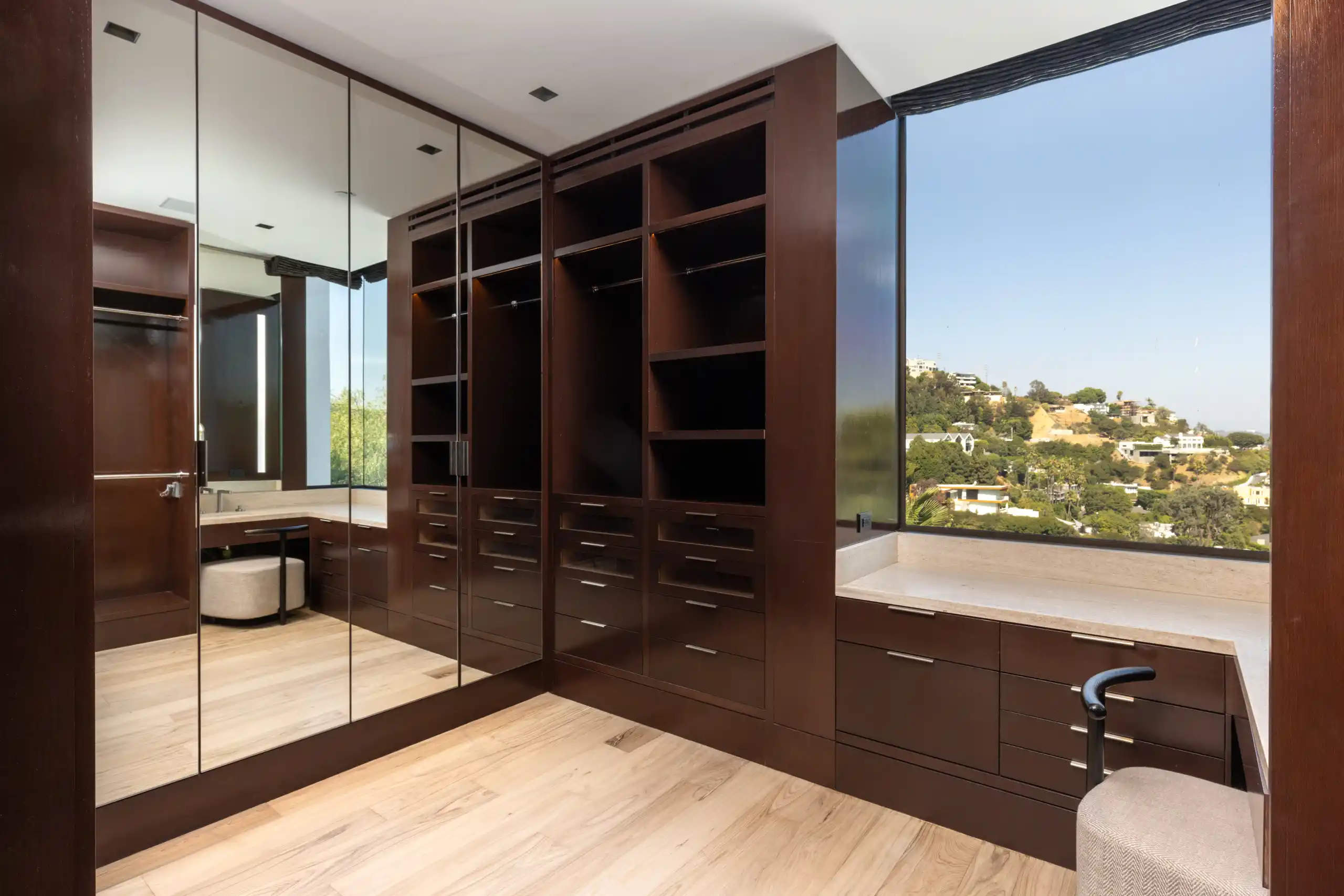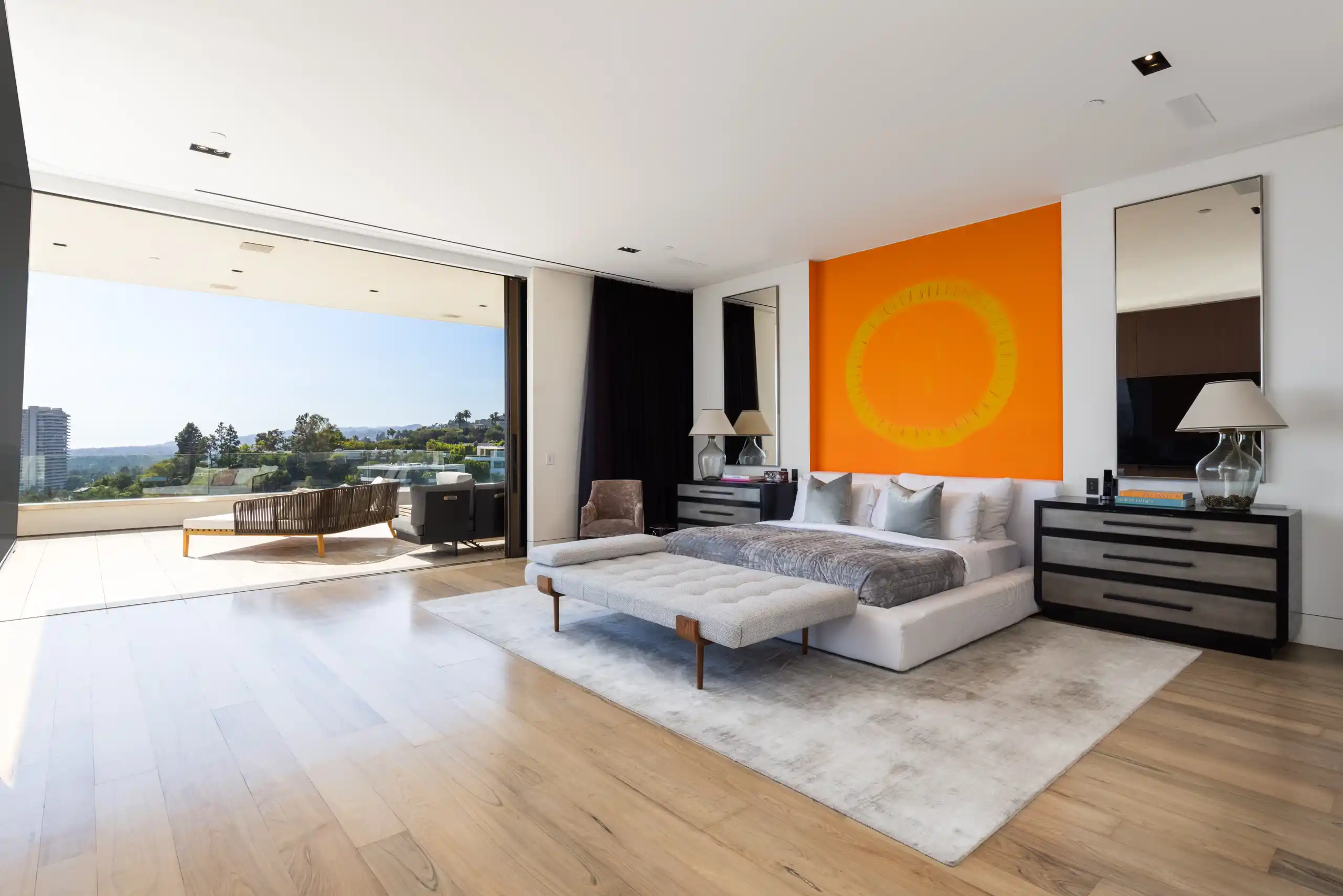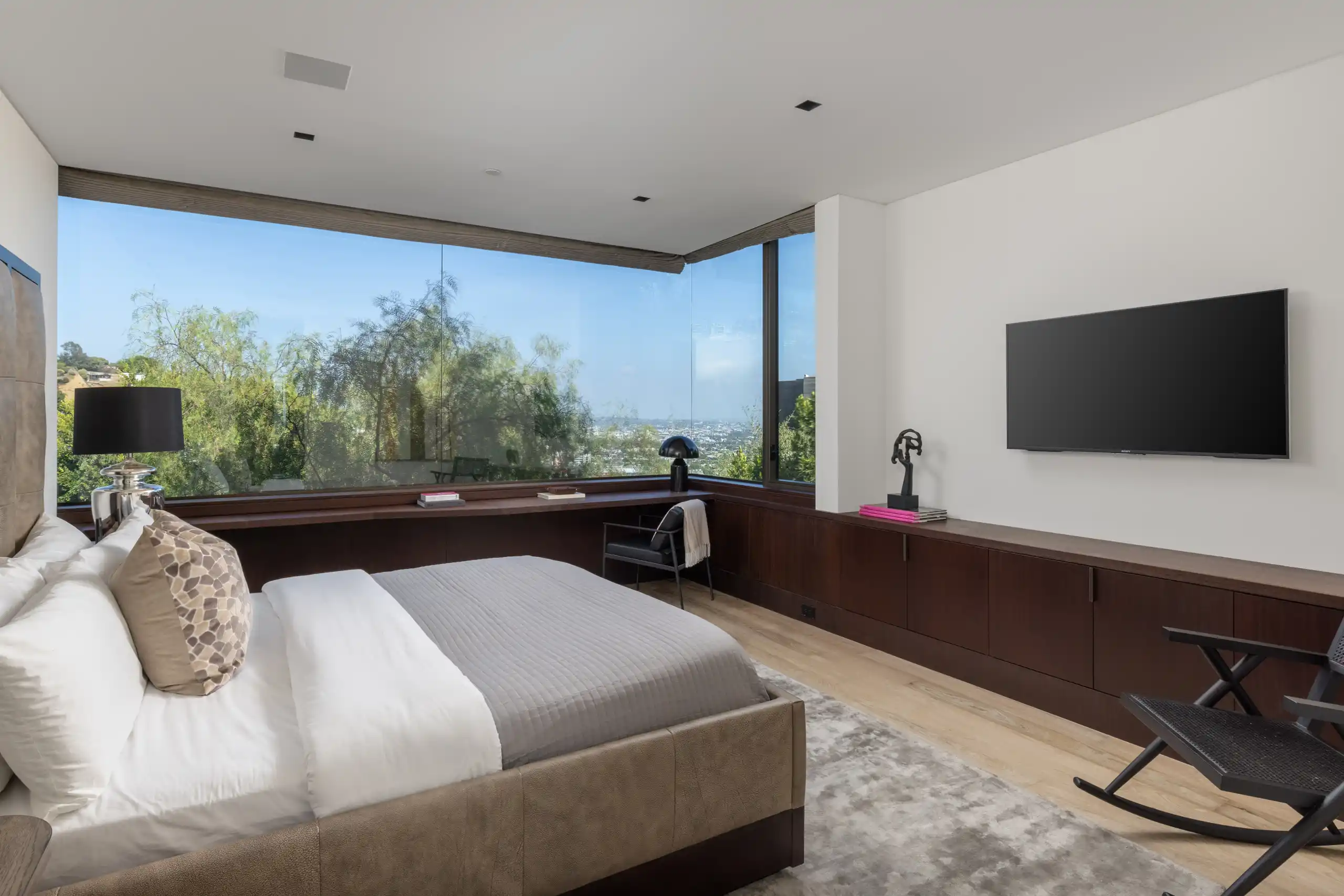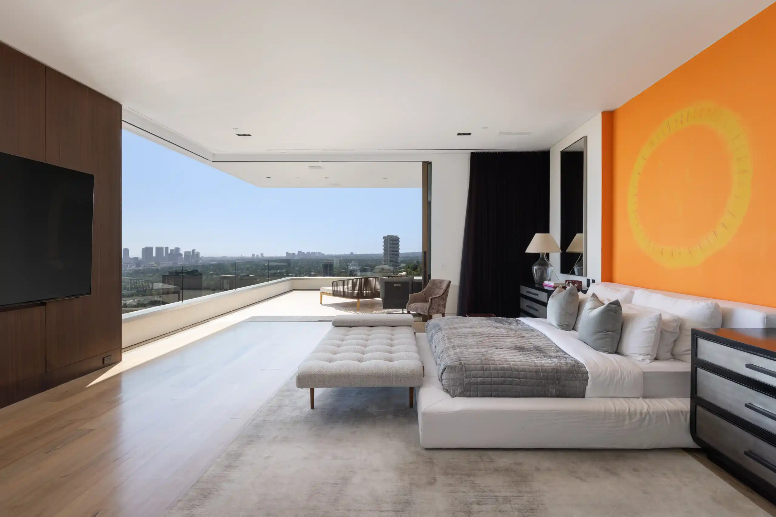 Perched on a coveted promontory, a premier architectural estate offering 11,800 square feet of sophisticated living space. This six-bedroom, seven-bathroom residence features panoramic views from Downtown Los Angeles to the Pacific Ocean, framed by dramatic retractable glass walls.