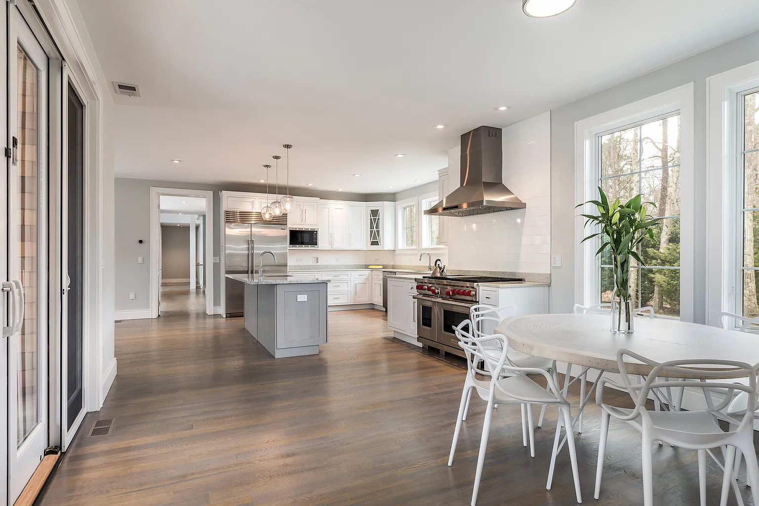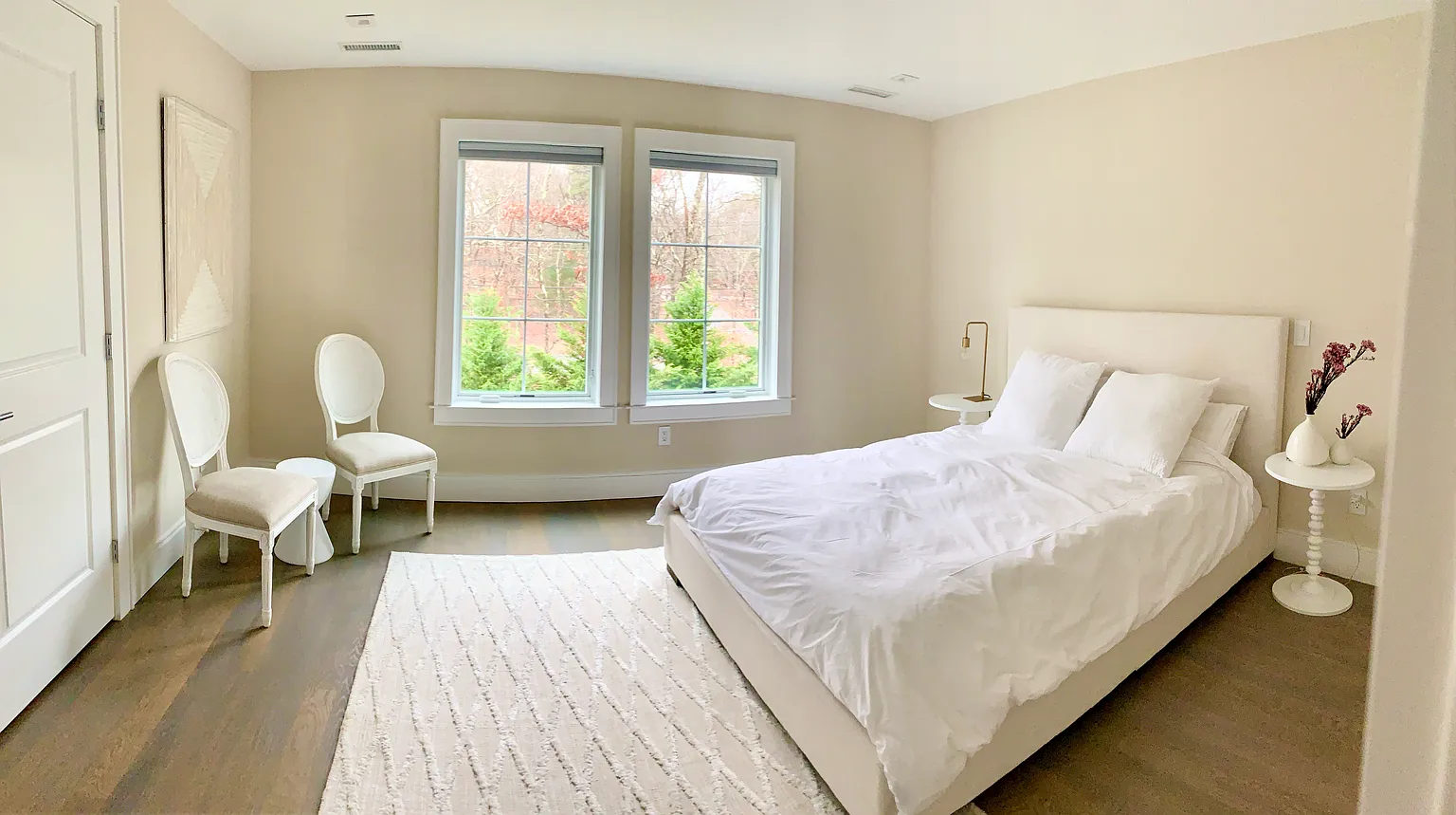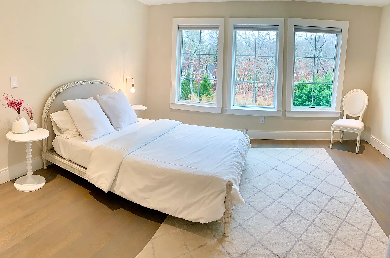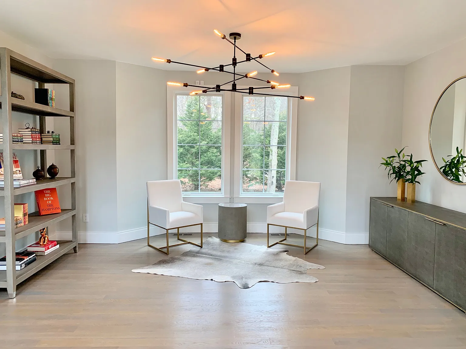 This contemporary new construction, set on 1.5 acres in the desirable East Hampton Village Fringes, is an ideal summer retreat. Spanning 7,600 square feet across three levels, the home features six bedrooms and 6.5 bathrooms, providing ample space for relaxation and entertainment.