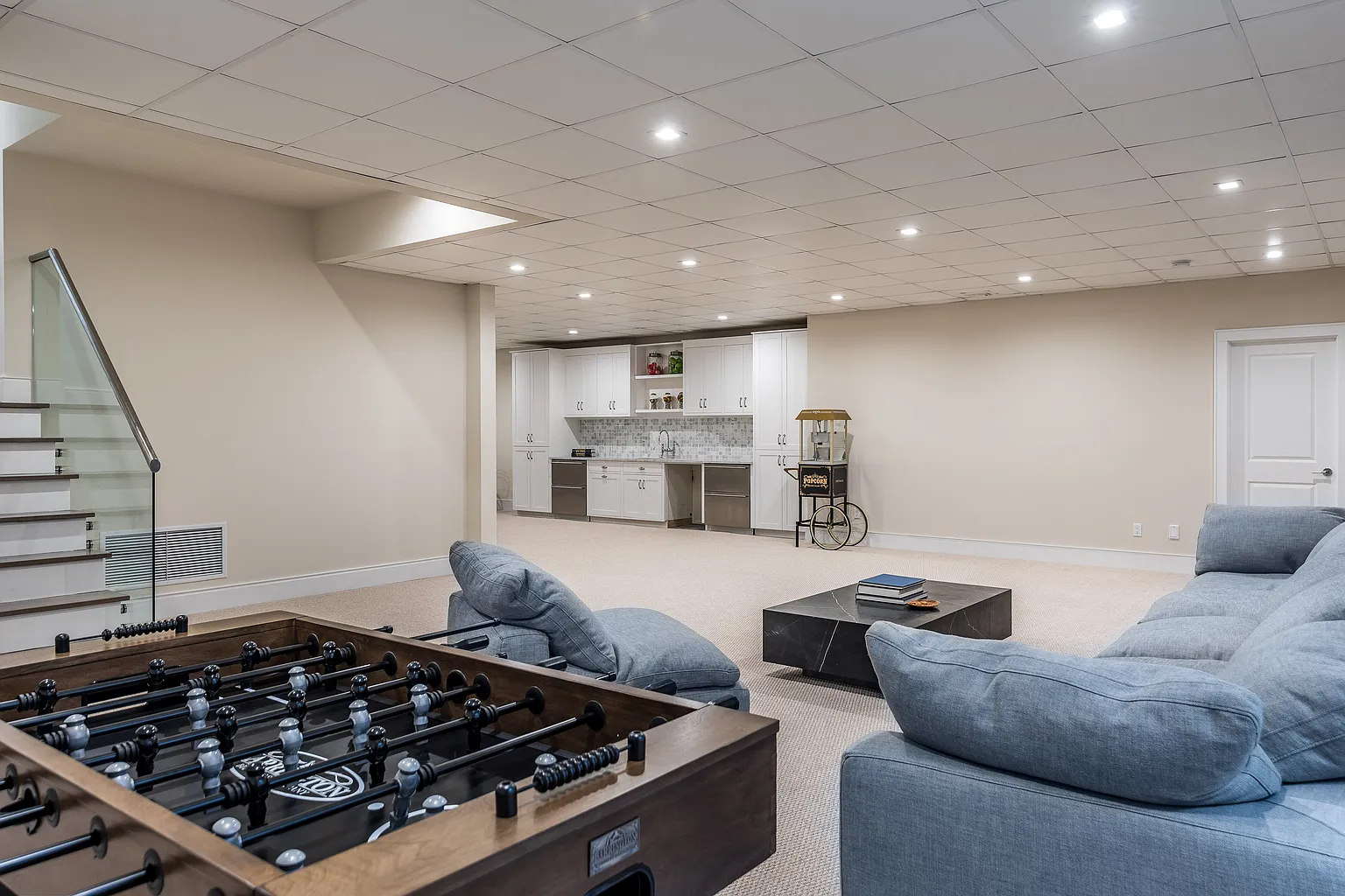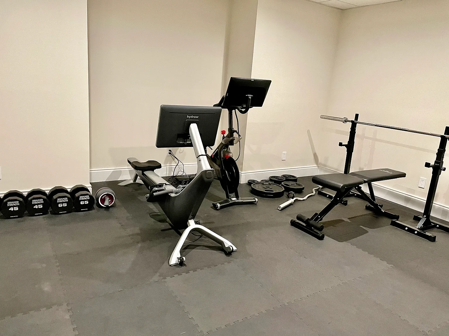 On the first floor, you’ll find a spacious living room with a soaring ceiling, a dining room, a media den, a covered porch, a mudroom, and a master bedroom. The second floor includes three en-suite bedrooms, while the lower level offers two additional bedrooms, a full bathroom, a gym, a home theater, and a generous recreation room. The landscaped backyard ensures privacy and is enclosed with a deer fence, featuring a heated gunite pool, a covered porch, and a barbecue area equipped with both a gas grill and a Green Egg.