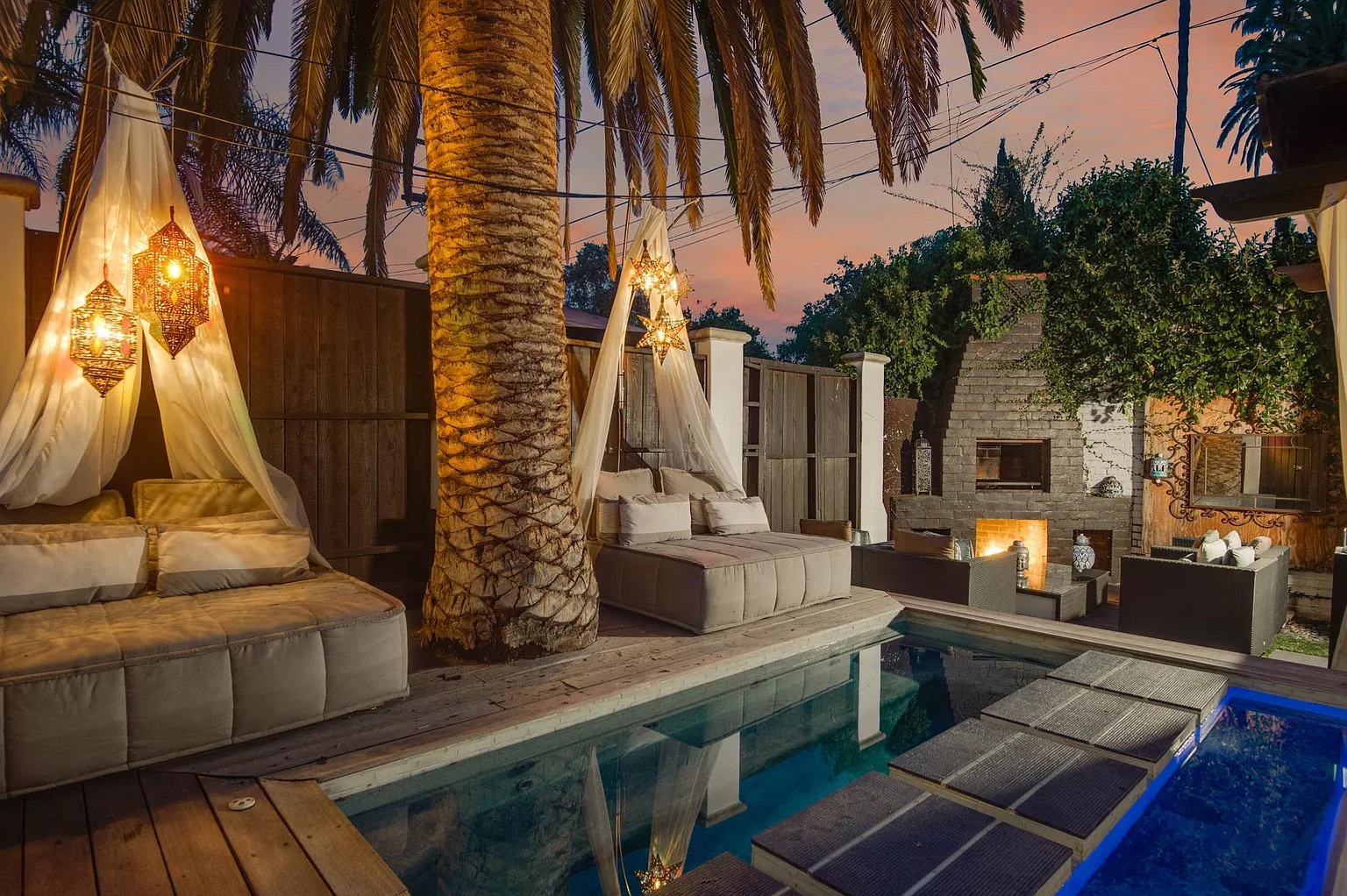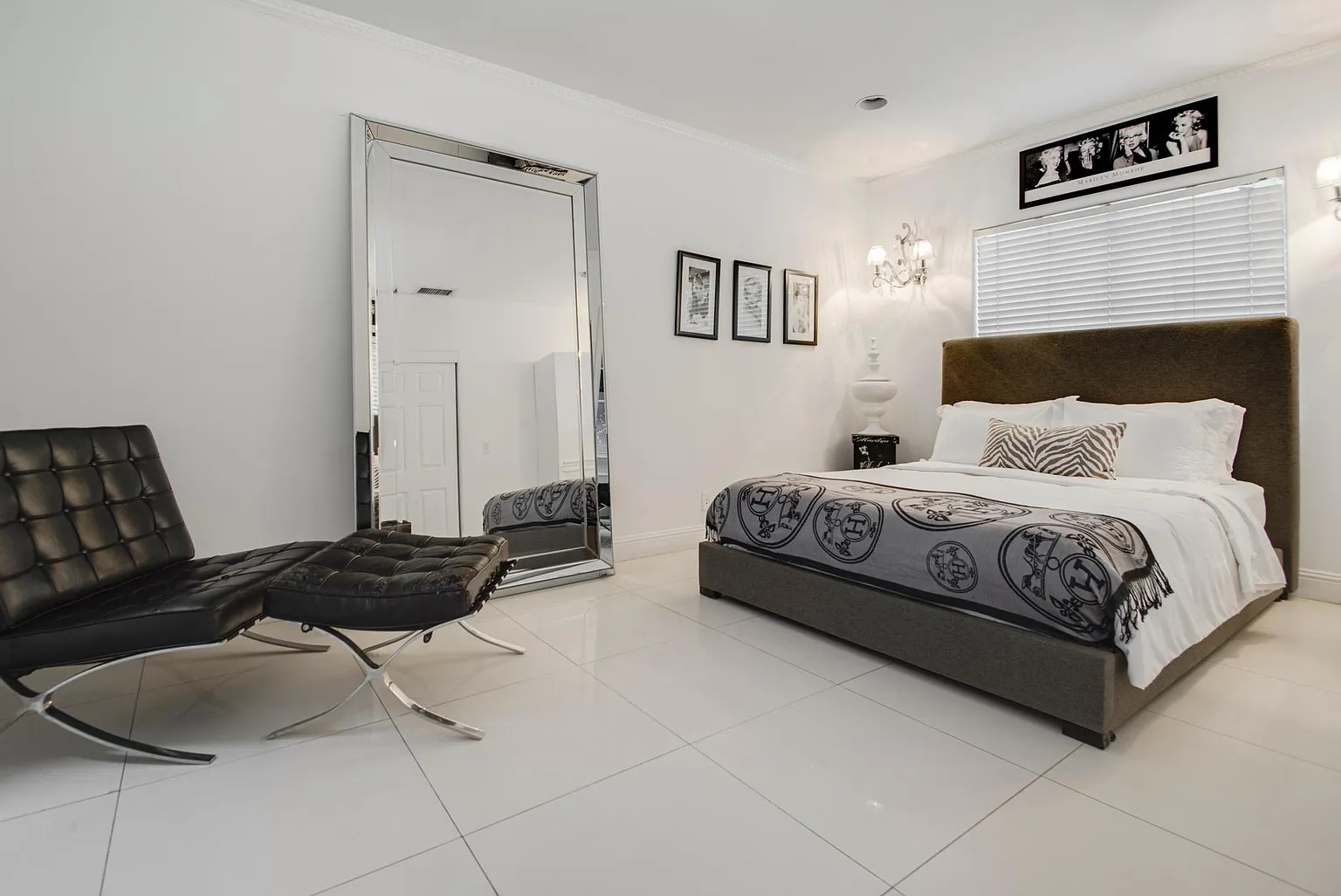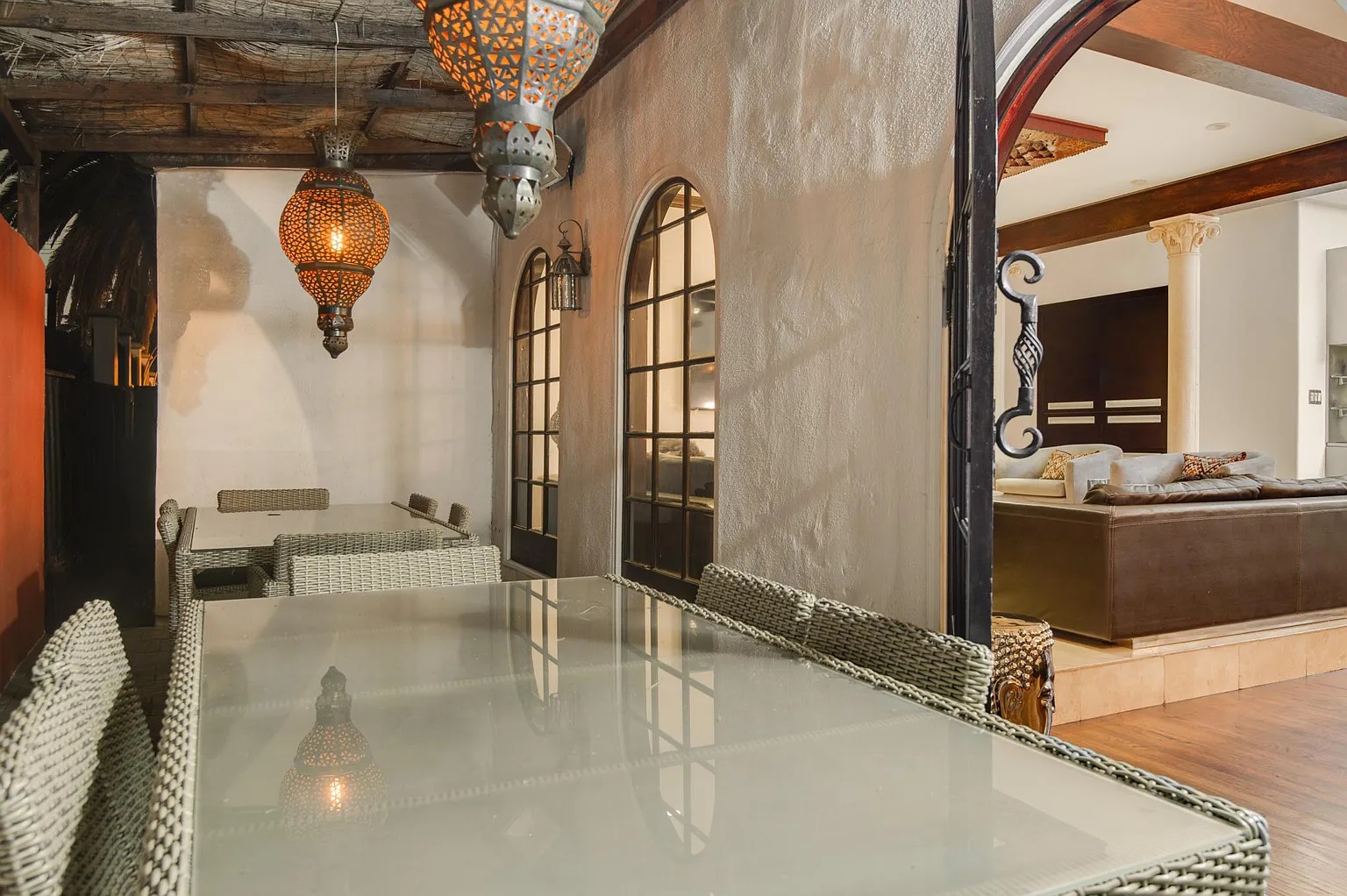Enter this luxurious, four-bedroom, four-bath modern Moroccan villa. Recently refurbished with all the luxuries of today while preserving the coziness and elegance of Moroccan culture. The master bedroom includes a cal king bed, a walk-in shower, and a marble free-standing tub in addition to an en-suite bathroom. There is a Bizazza mosaic shower in the guest bedroom with an en-suite bathroom as well. The guest bathrooms have a walk-in shower and a free-standing tub.