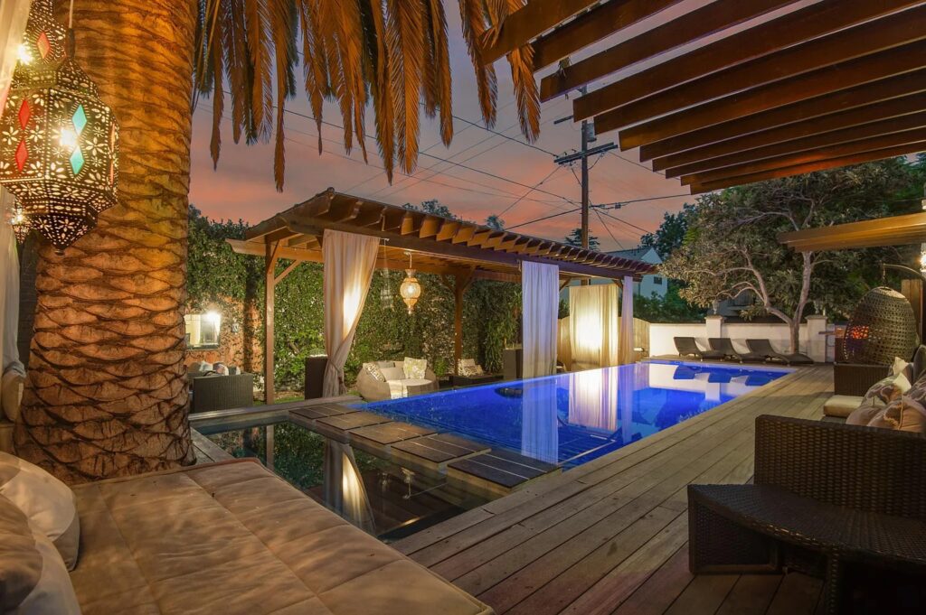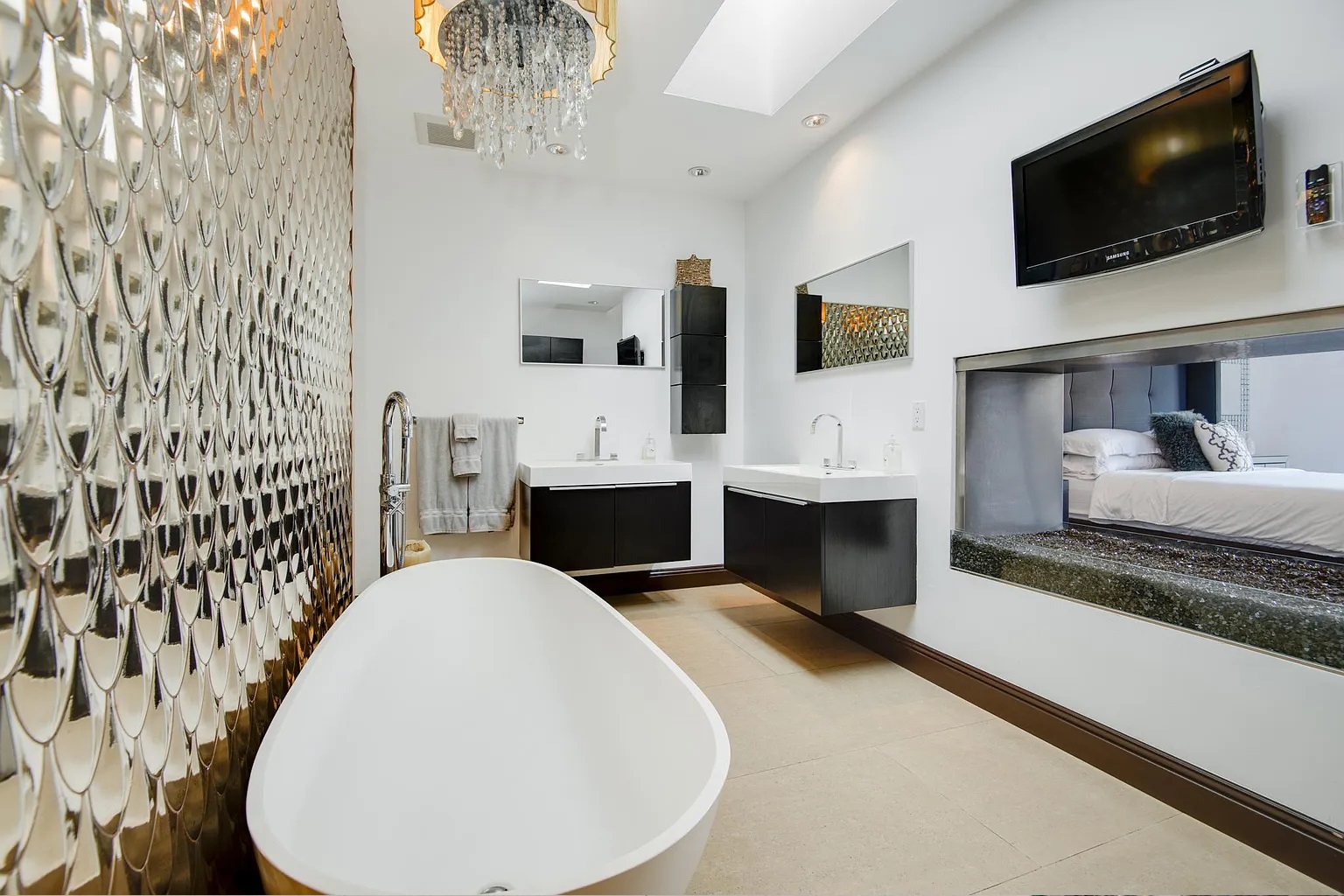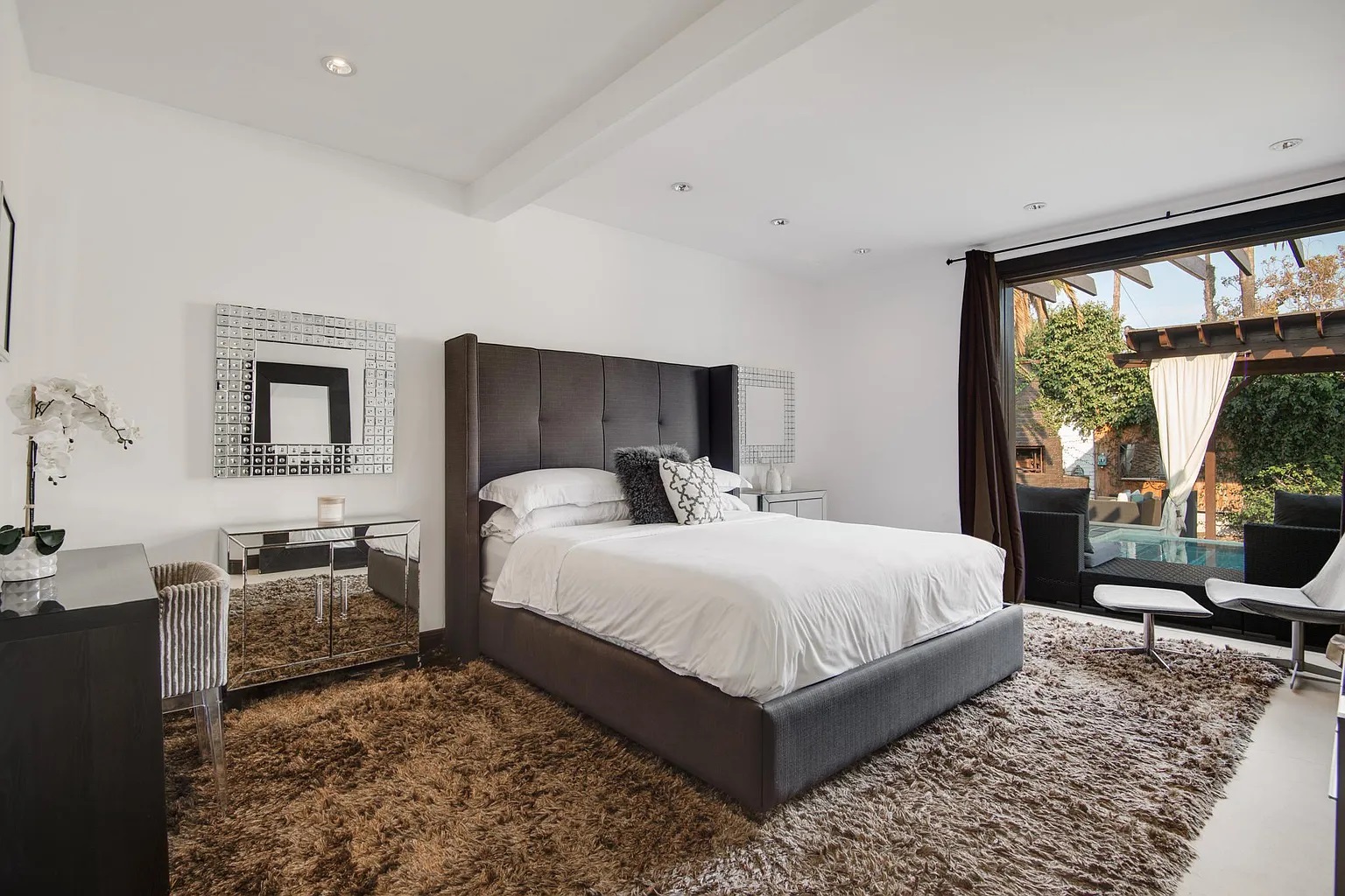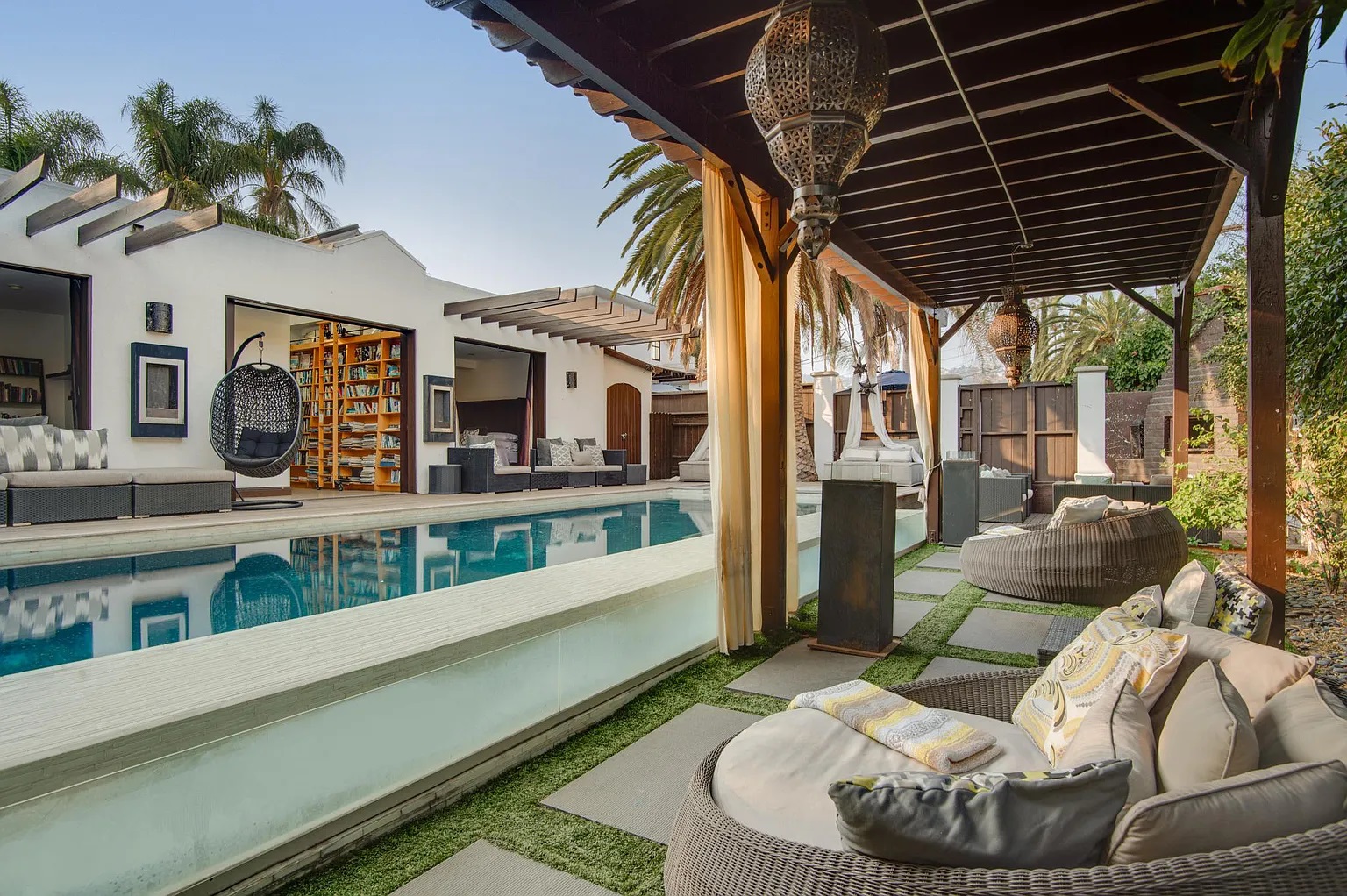 Enter this luxurious, four-bedroom, four-bath modern Moroccan villa. Recently refurbished with all the luxuries of today while preserving the coziness and elegance of Moroccan culture. The master bedroom includes a cal king bed, a walk-in shower, and a marble free-standing tub in addition to an en-suite bathroom. There is a Bizazza mosaic shower in the guest bedroom with an en-suite bathroom as well. The guest bathrooms have a walk-in shower and a free-standing tub.