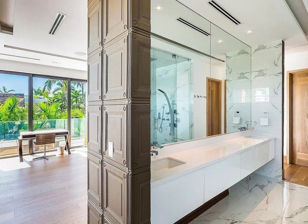 Immerse yourself in unparalleled luxury at this stunning waterfront tropical mansion, where spacious interiors harmoniously blend with exquisite design. As you step inside, you are greeted by dazzling double-height ceilings that create an airy and inviting atmosphere, complemented by bespoke marble and oak floors that exude sophistication. Abundant natural light floods the living spaces, enhancing the home’s elegant ambiance and showcasing the meticulous craftsmanship throughout.
