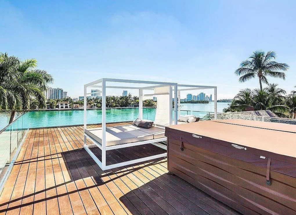 The expansive roof terrace offers breathtaking panoramic vistas, providing the perfect backdrop for both entertaining and relaxation. Step outside to discover a sprawling yard that invites you to bask in outdoor bliss, featuring an immense pool that glistens under the sun. The property also boasts a private dock, a charming gazebo, and a luxurious 20-person jacuzzi, making it an ideal oasis for gatherings with family and friends or tranquil moments of solitude.