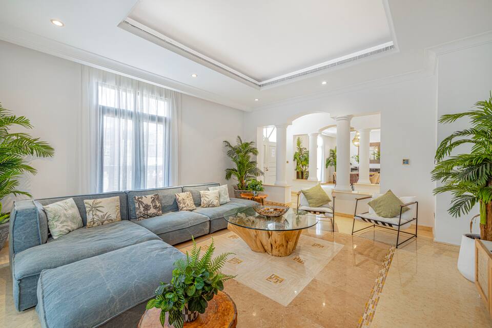 Experience unparalleled comfort in this exquisite 6-bedroom villa, featuring king and queen beds, along with additional accommodations for staff in a maid’s room and a driver’s room, each with a queen bed. While the maid and driver rooms are not luxury suites, the villa itself is designed for ultimate relaxation and convenience.