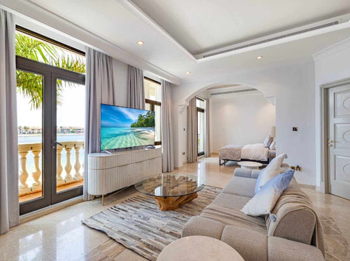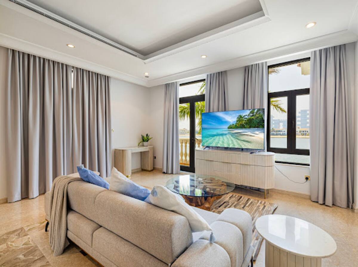 Step outside to your private oasis, complete with a heated swimming pool for winter use and a chilled pool for those warm summer days. The villa also boasts a luxurious jacuzzi, an inviting outdoor sitting area, and sunbeds, perfect for soaking up the sun or enjoying serene evenings under the stars. Embrace the lifestyle of luxury in the heart of Palm Jumeirah.