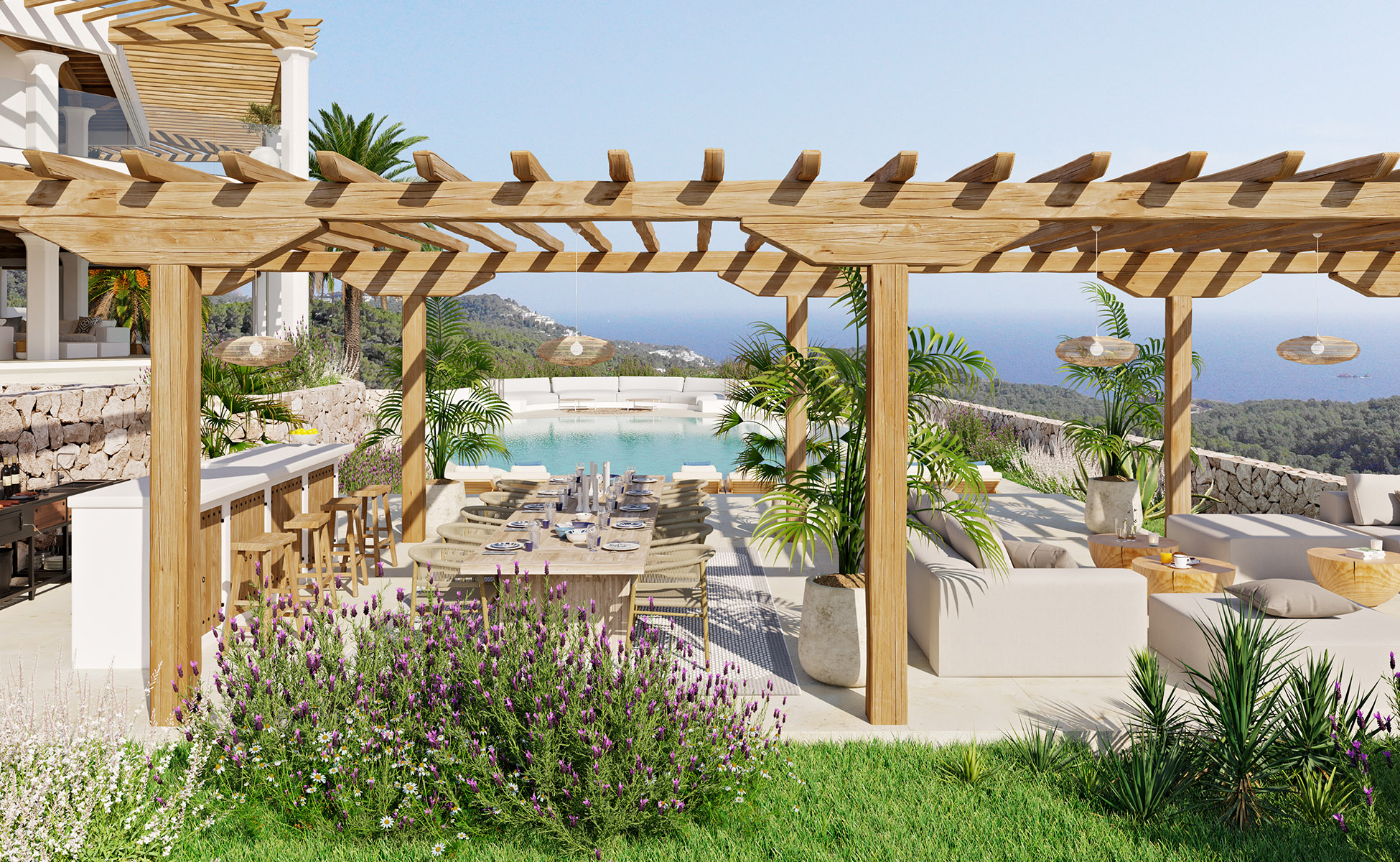 Surrounded by the natural beauty of S’Estanyol, the villa offers extensive vistas that stretch across the azure waters, inviting you to unwind in a serene and luxurious environment. Whether you’re enjoying a sunset cocktail on the terrace or taking in the panoramic scenery, The Estani Villa is the perfect sanctuary for those seeking an unforgettable Ibiza experience.