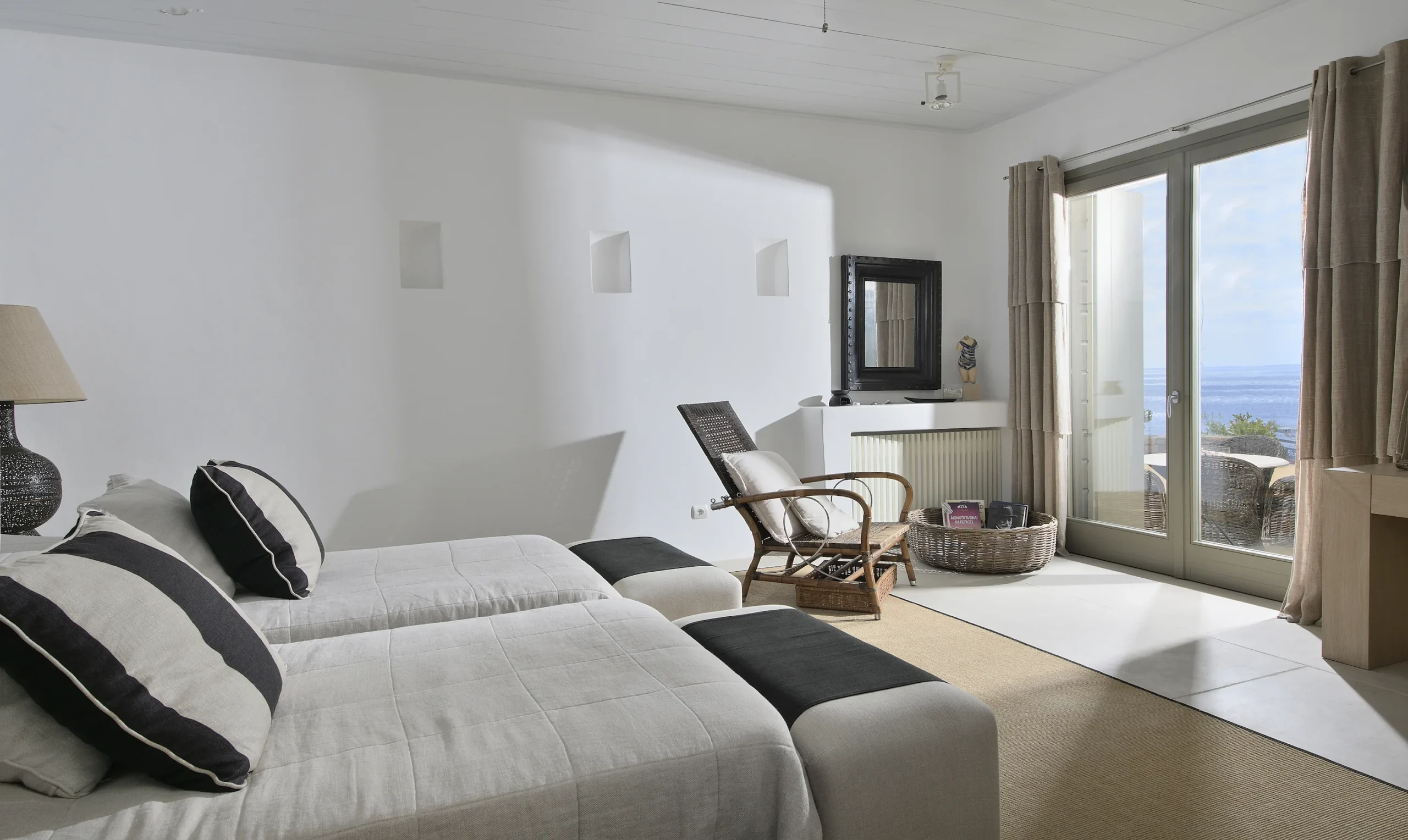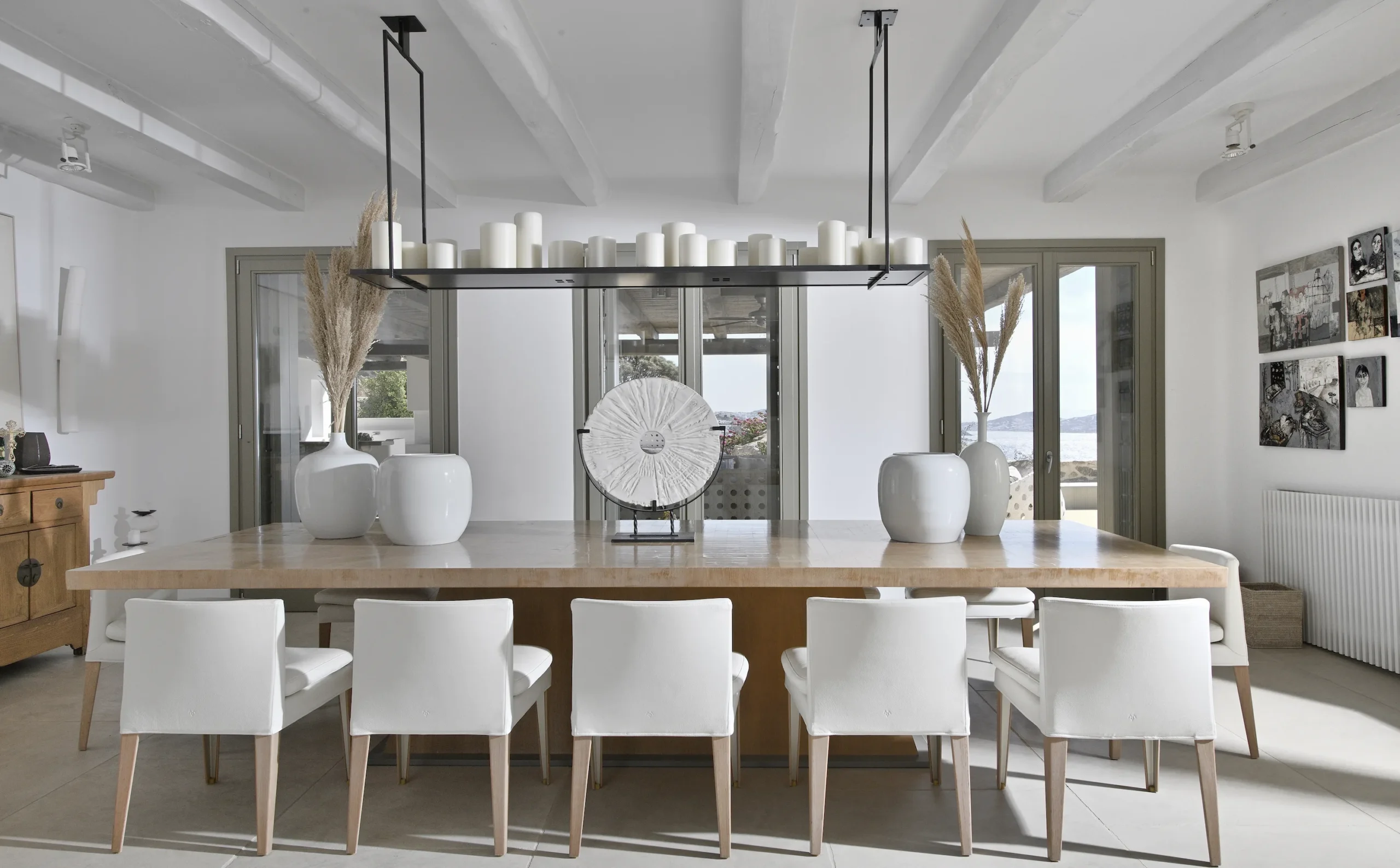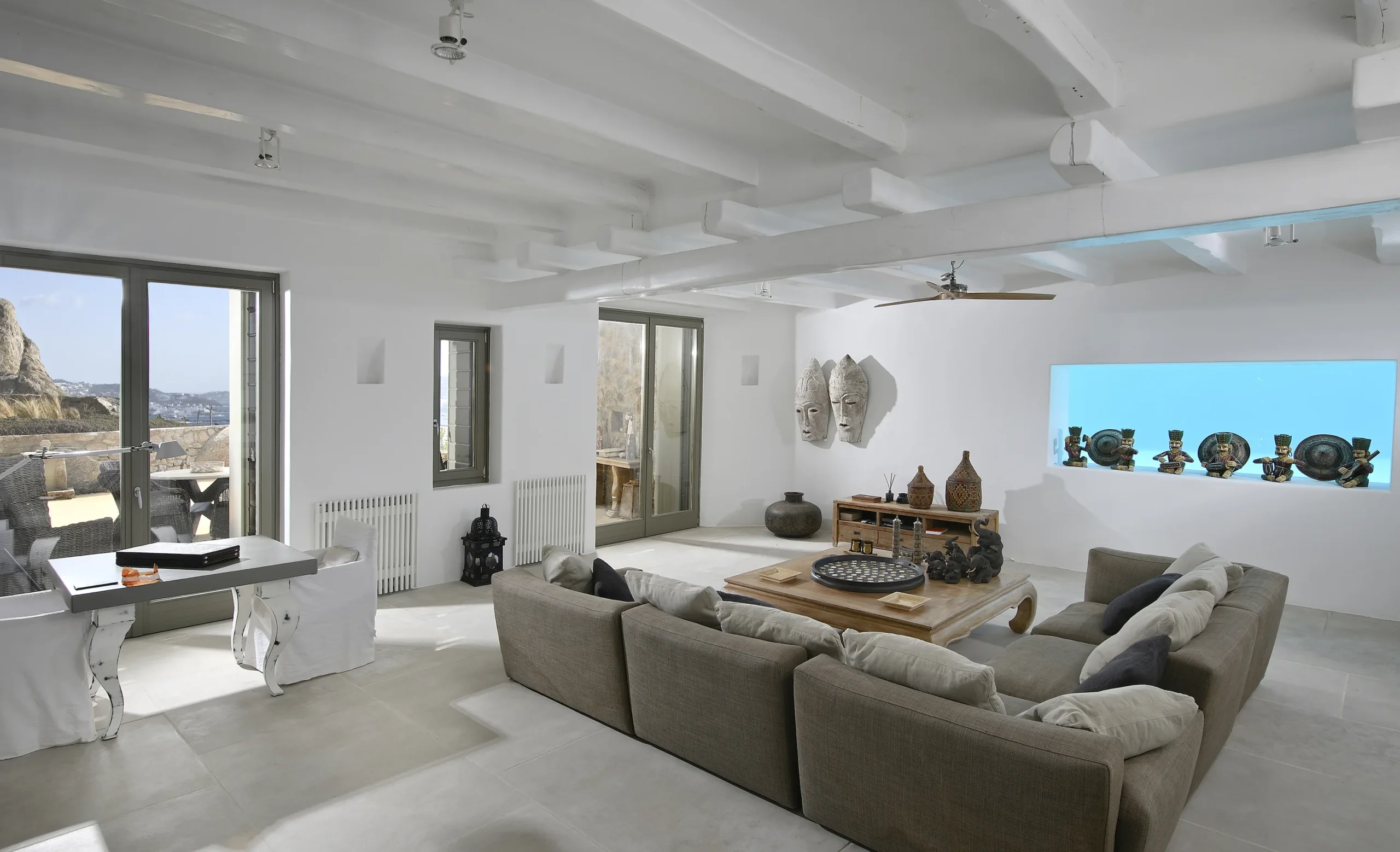 Blending modern minimalism with traditional Mykonian architecture, The Filippos Villa exudes a chic and ethnic ambiance. Adorned with art pieces and artifacts collected by the owners from their travels across Africa and the Far East, this remarkable villa has garnered attention in numerous architectural magazines.