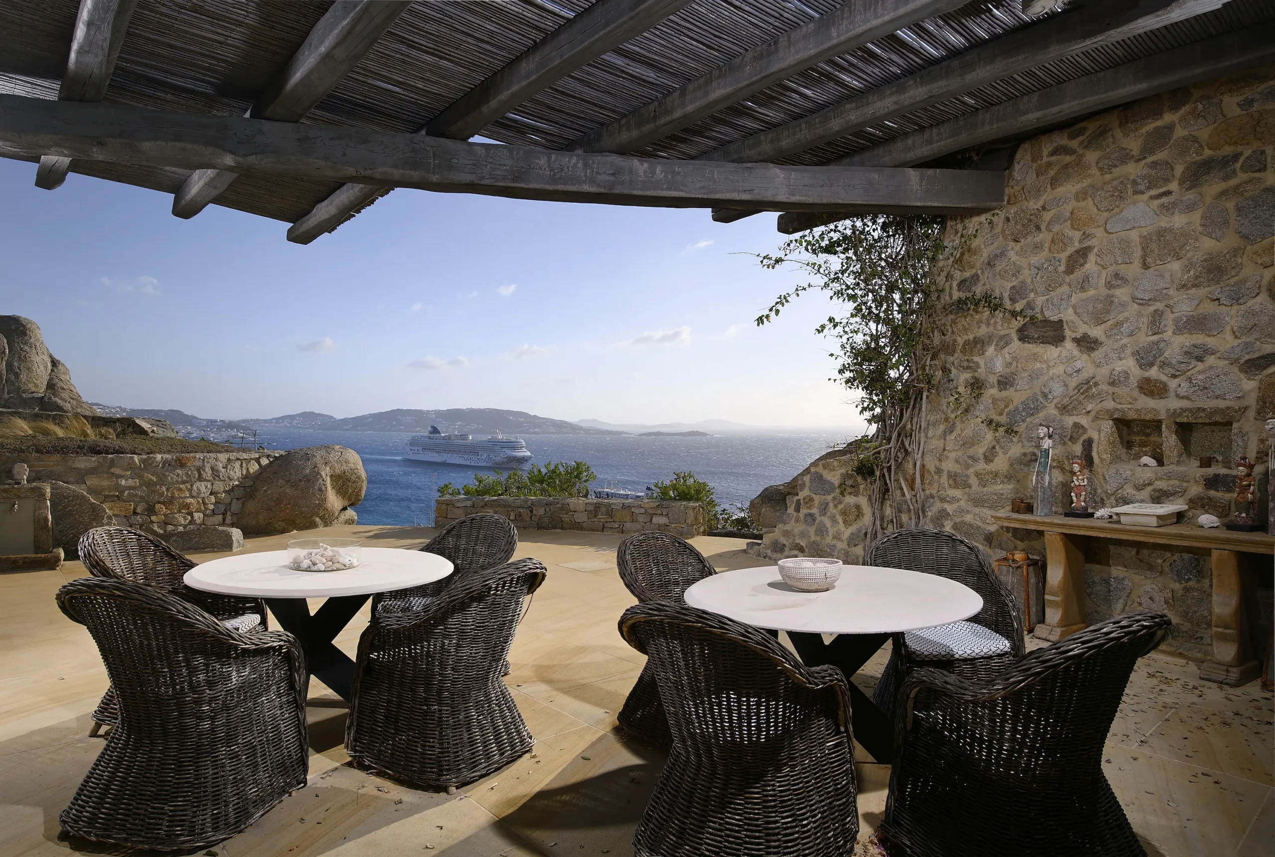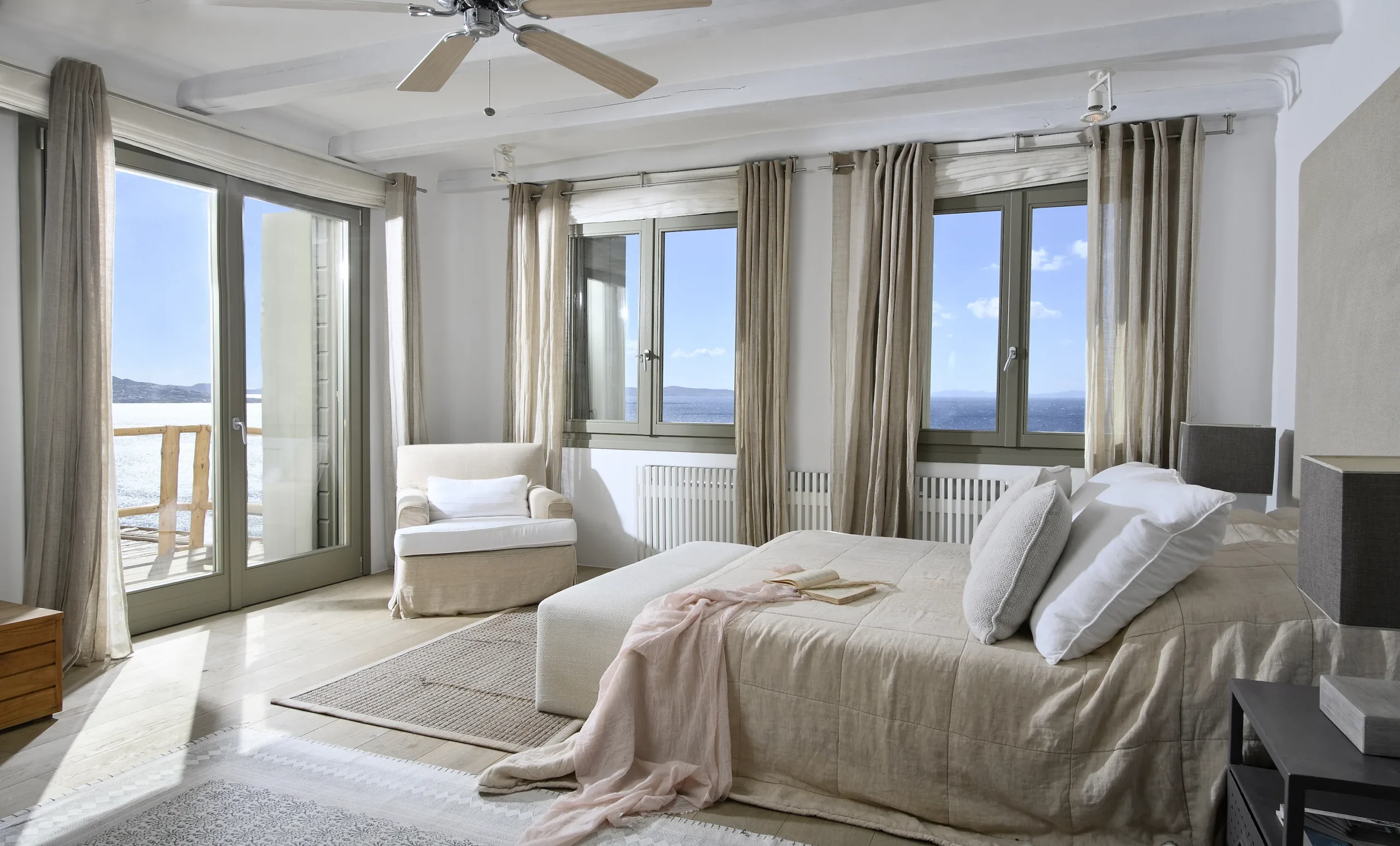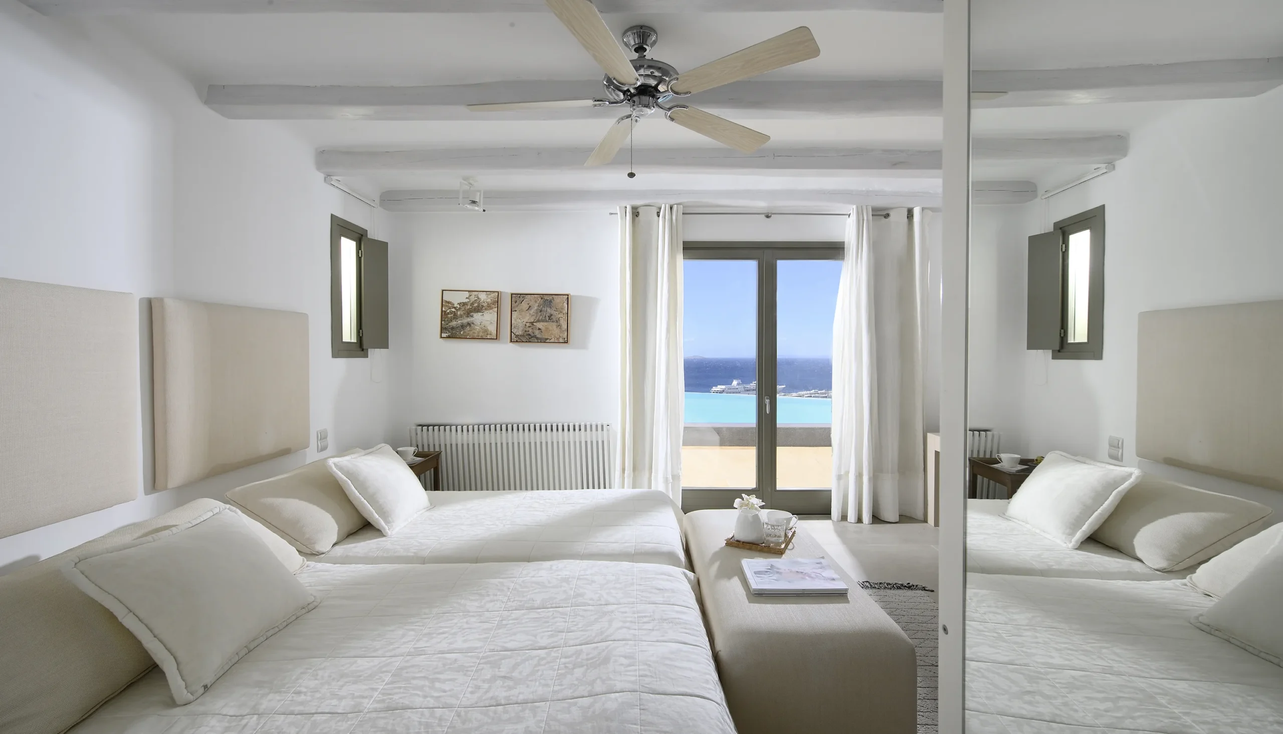 Blending modern minimalism with traditional Mykonian architecture, The Filippos Villa exudes a chic and ethnic ambiance. Adorned with art pieces and artifacts collected by the owners from their travels across Africa and the Far East, this remarkable villa has garnered attention in numerous architectural magazines.