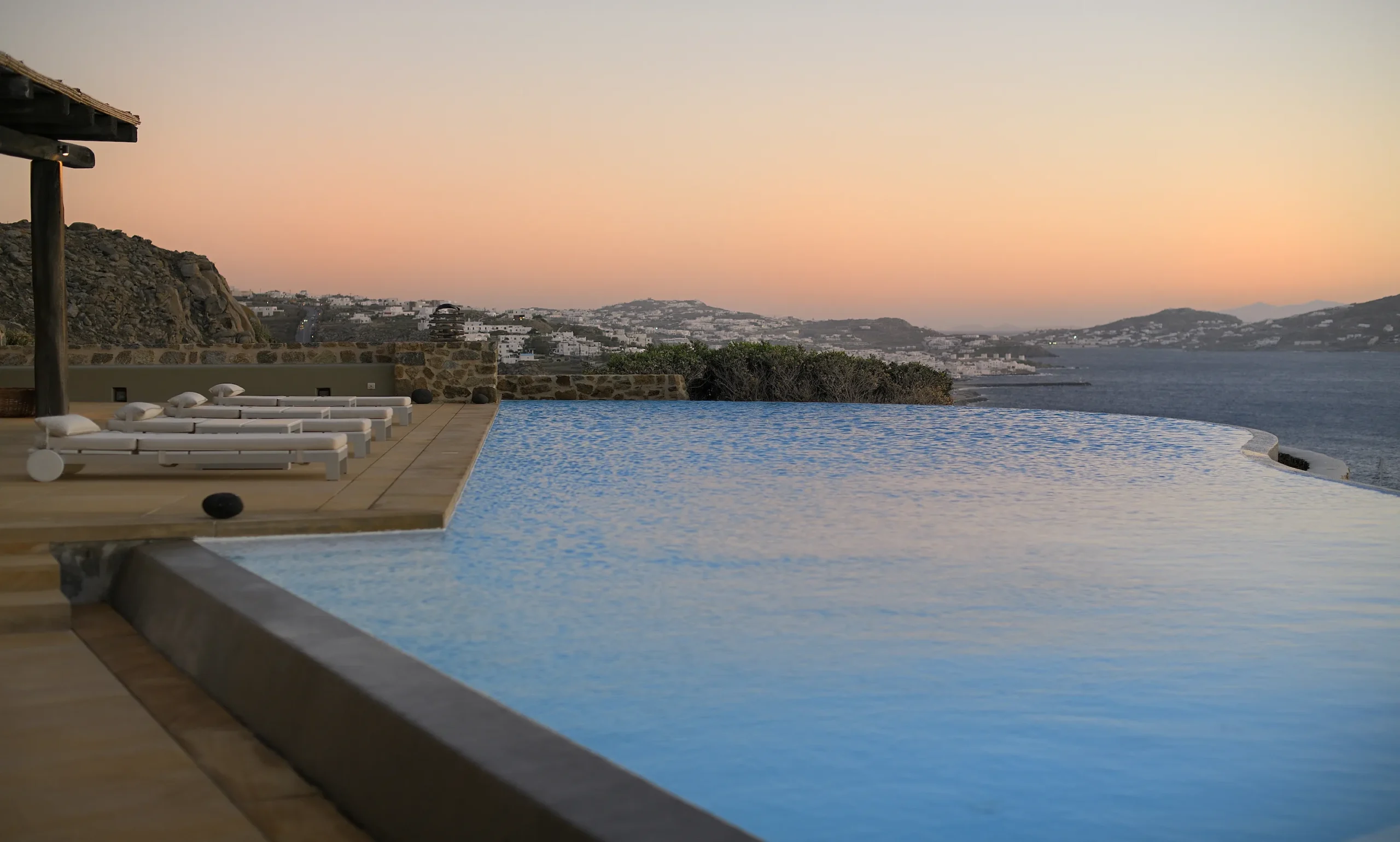 The Filippos Villa is one of the most exquisite properties on the island of Mykonos, offering a luxurious 1,000 m² residence set on an expansive 11,000 m² plot. This stunning villa provides breathtaking panoramic views of the sunset, overlooking both Delos and Mykonos Town, which is conveniently located just a five-minute drive away.