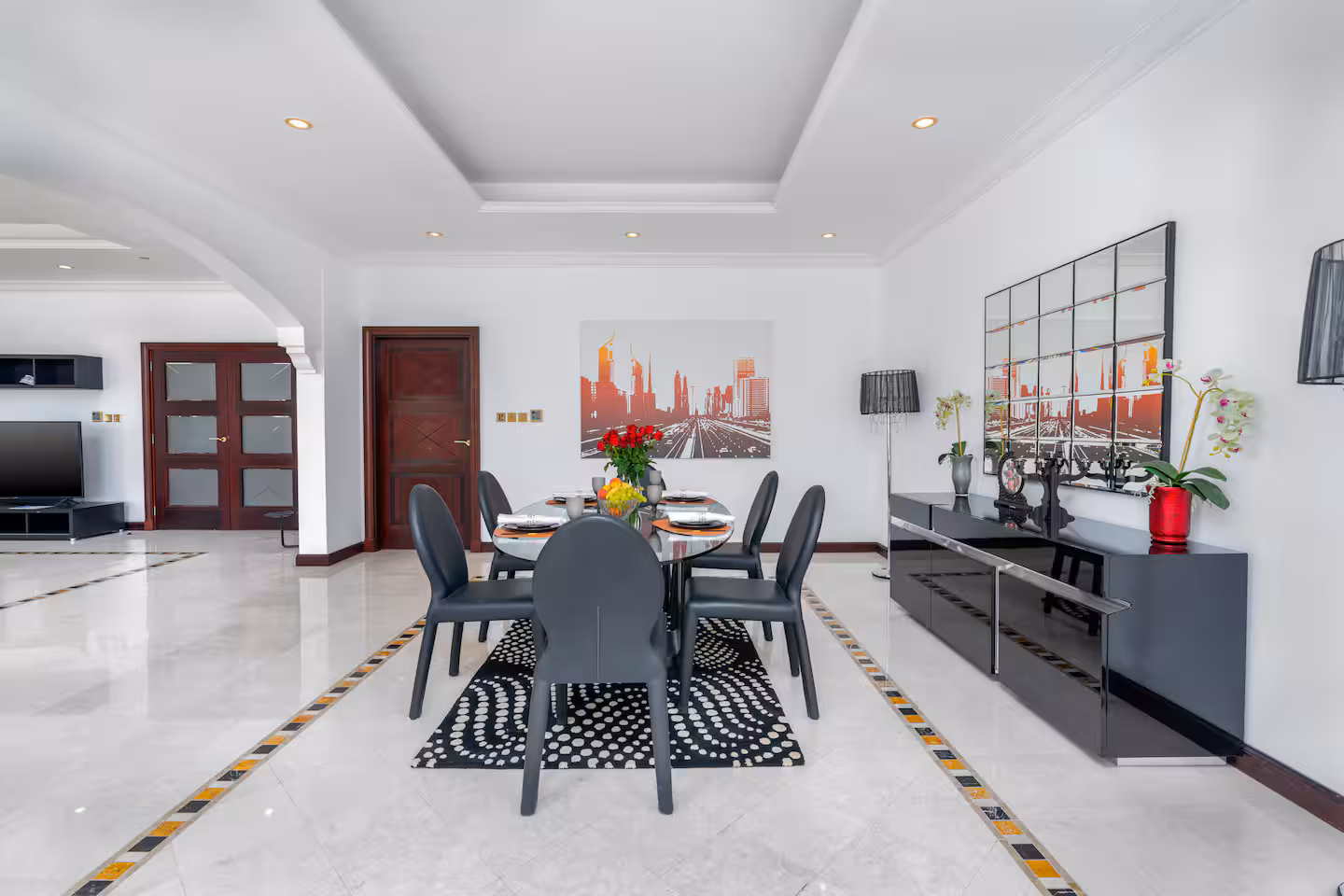 Nestled on the iconic Palm Jumeirah, this cozy four-bedroom villa offers a relaxing retreat complete with a private pool and direct beach access. Ideal for families or small groups, the villa features a spacious layout, including a maid’s quarter and stunning views of the Dubai skyline. Enjoy the serene atmosphere of this exclusive location while being just minutes away from top shopping, dining, and entertainment options in the heart of Dubai.