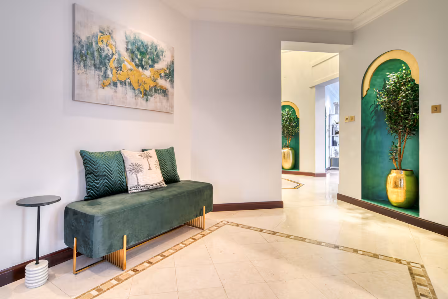 Nestled in a private cove, this majestic villa provides an idyllic setting for a serene getaway. The sun-kissed beach is just a short stroll away, offering tranquility and relaxation. Inside, the villa captivates with its tall golden sand walls and terracotta-tiled roof, creating a palace-like ambiance. High ceilings and generous open spaces enhance the grandeur, while fine artwork adorns the walls, making this villa a true masterpiece of comfort and elegance.