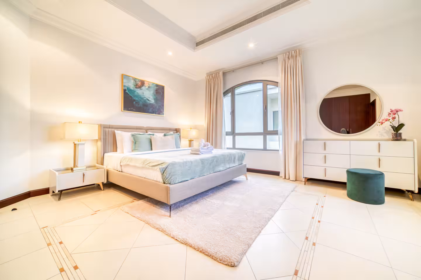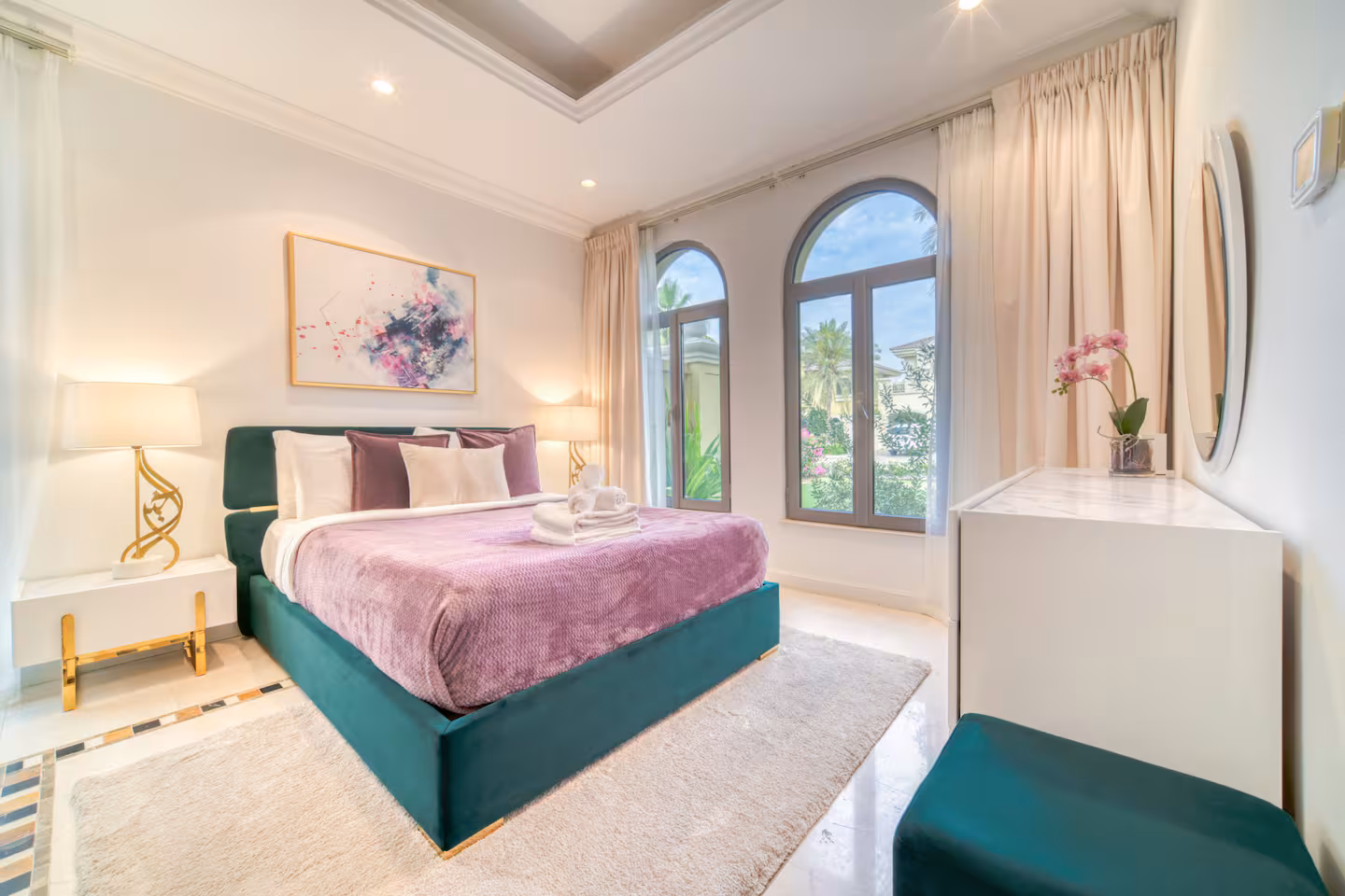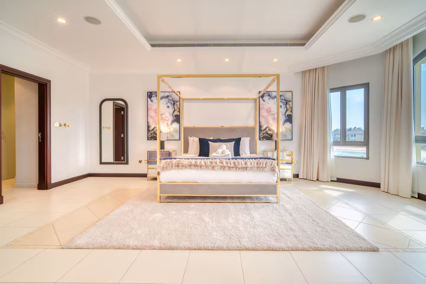 Experience the most lavish and restful vacation imaginable at this five-bedroom villa with a maid’s room and private pool, located on the renowned Palm Jumeirah. Enjoy breathtaking views of the Dubai skyline and direct access to a private beach just steps from your door. Palm Jumeirah perfectly balances luxury and convenience, featuring top-notch restaurants, cafes, and supermarkets, along with nearby attractions such as Atlantis, The Pointe, and the iconic Burj Al Arab.