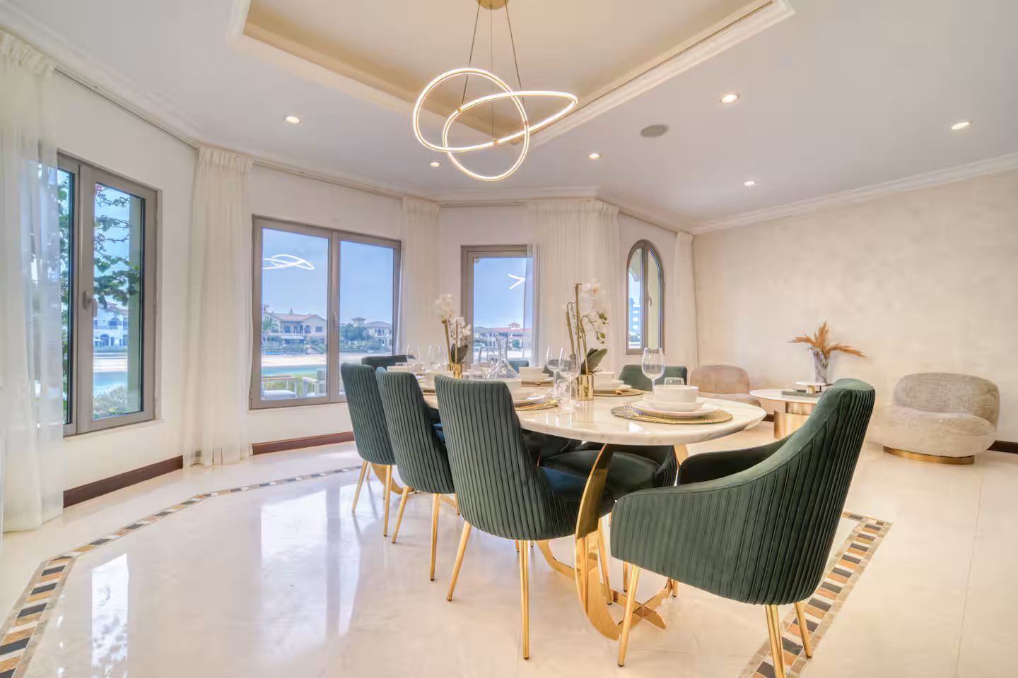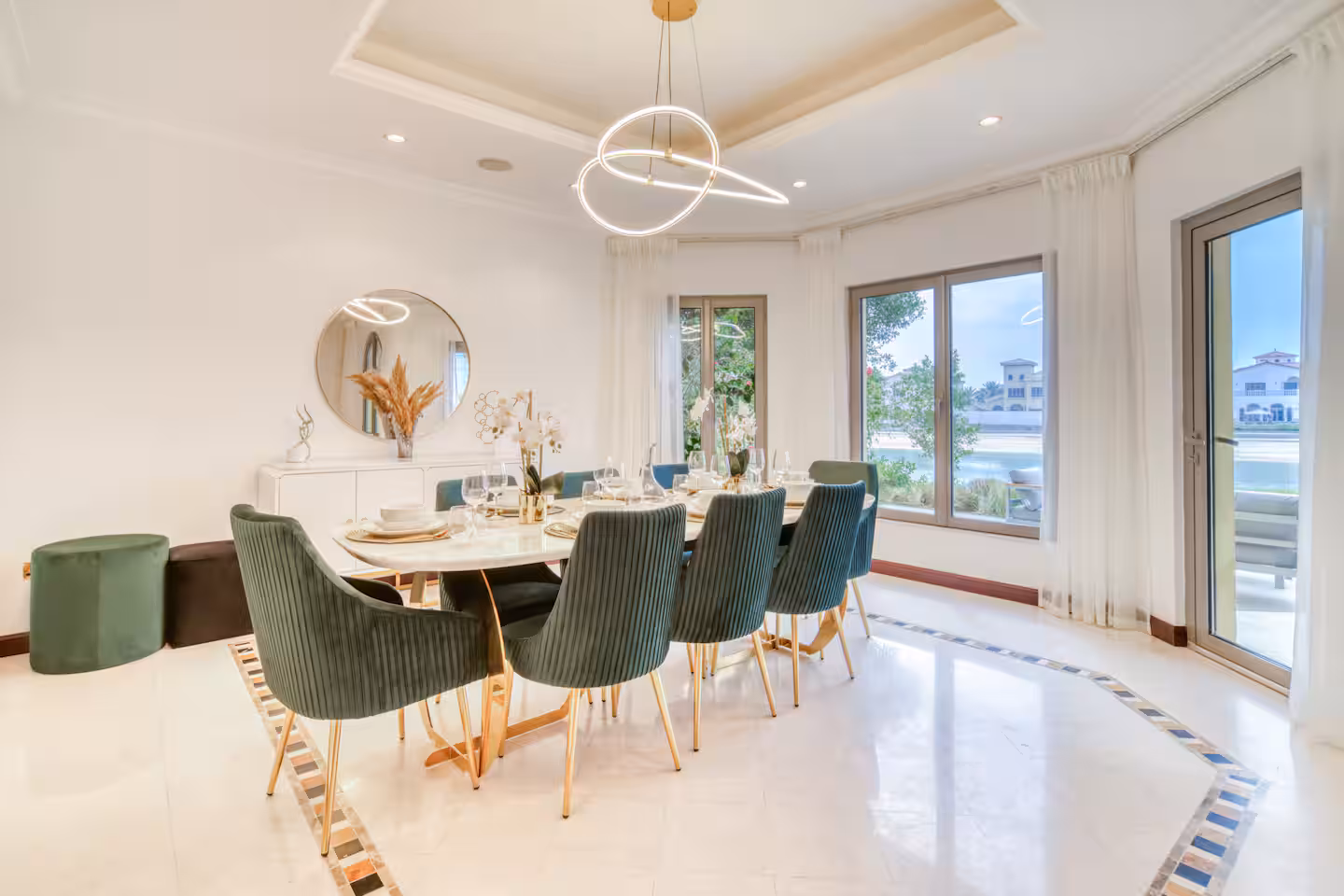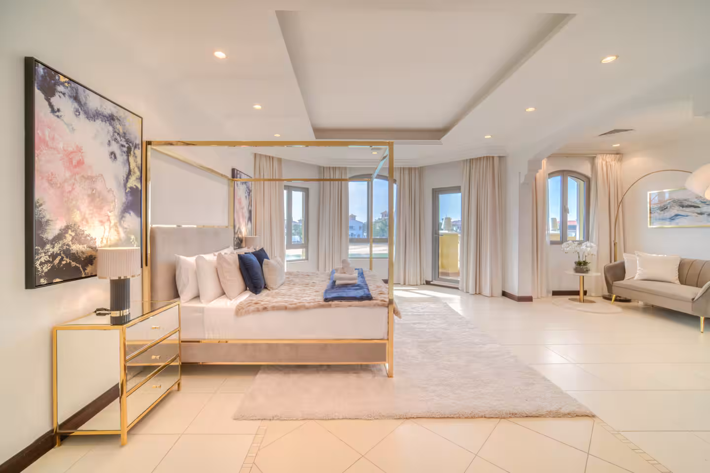 Experience the most lavish and restful vacation imaginable at this five-bedroom villa with a maid’s room and private pool, located on the renowned Palm Jumeirah. Enjoy breathtaking views of the Dubai skyline and direct access to a private beach just steps from your door. Palm Jumeirah perfectly balances luxury and convenience, featuring top-notch restaurants, cafes, and supermarkets, along with nearby attractions such as Atlantis, The Pointe, and the iconic Burj Al Arab.
