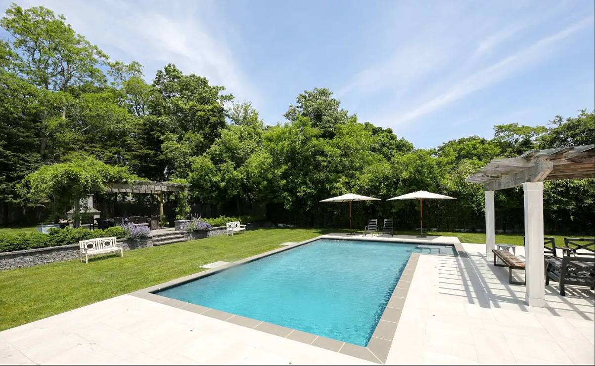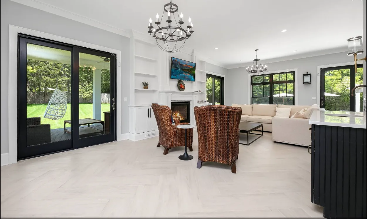 Additional highlights of this stunning residence include beautifully landscaped grounds and inviting outdoor entertaining areas, central air conditioning, indoor and outdoor fireplaces, and a garage with a Tesla charging station. Its prime location offers quick access to both Southampton Village and Coopers Beach, making it an ideal choice for an exceptional stay in the Hamptons.