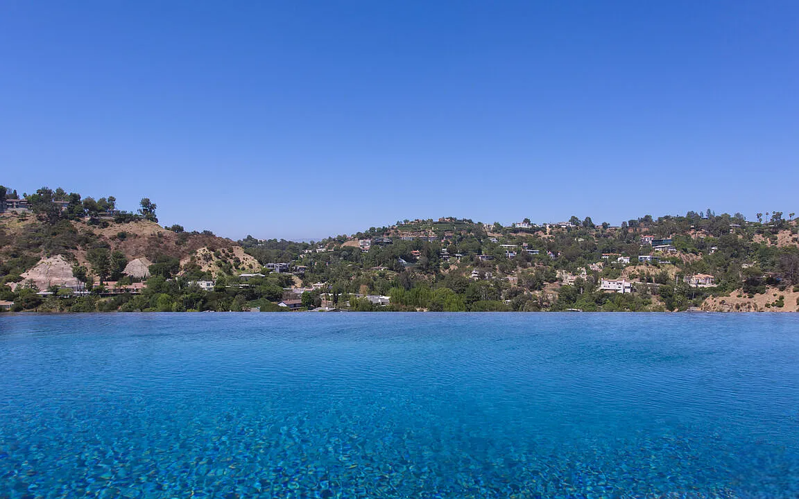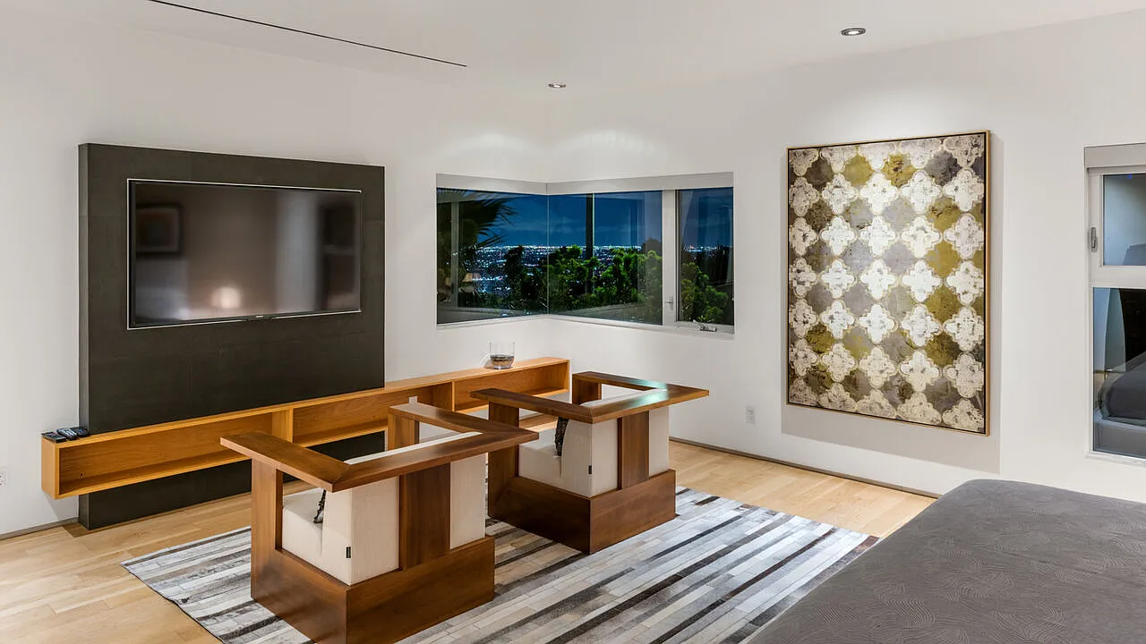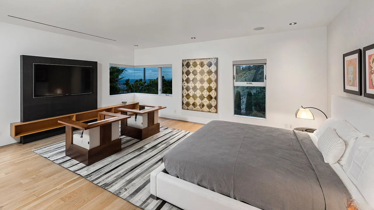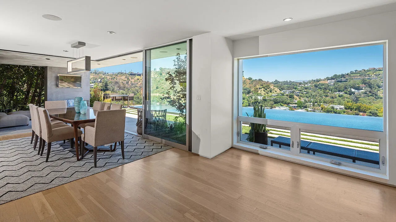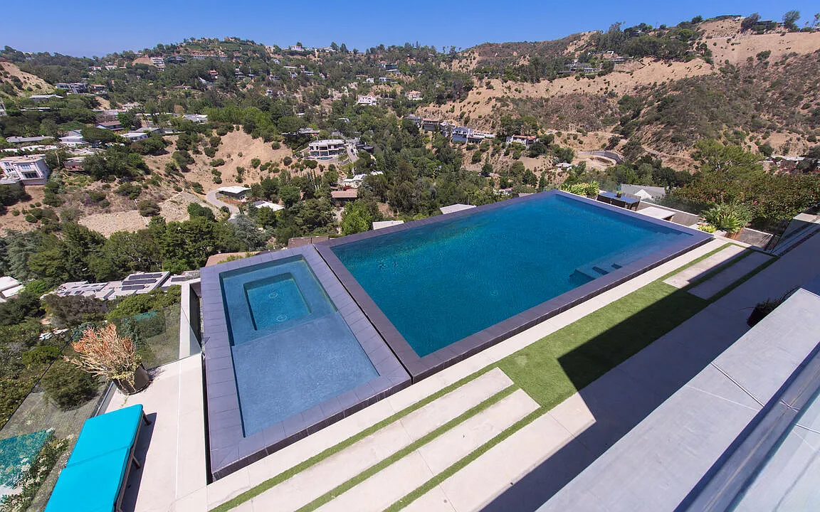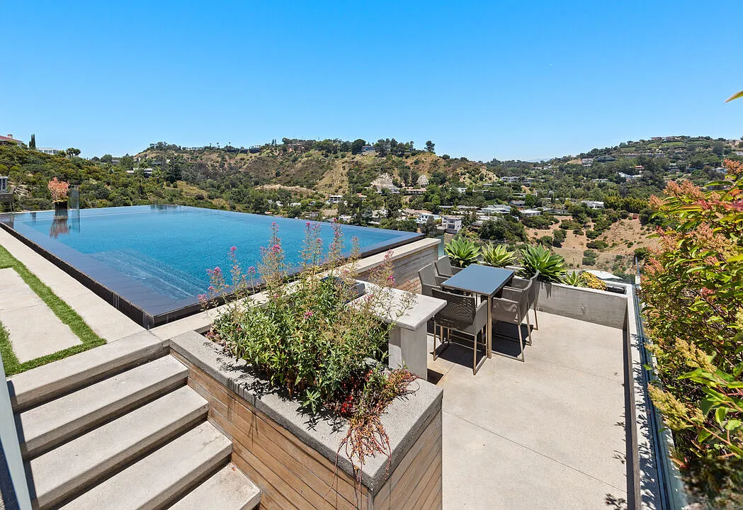 One of the highlights is the breathtaking zero-edge infinity pool, one of the largest in Los Angeles, complete with a relaxing spa area. This home is ideal for those who want to be close to the vibrant energy of the Sunset Strip while enjoying the tranquility and sophistication of hillside living.