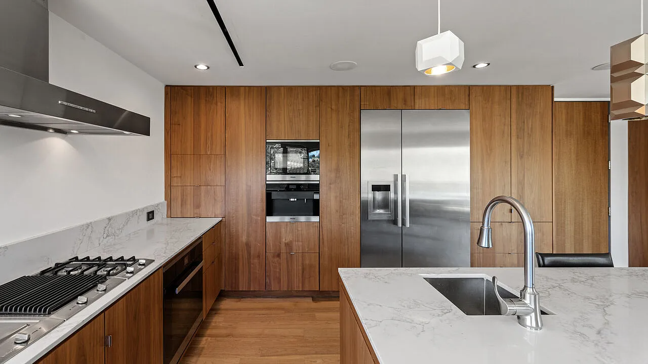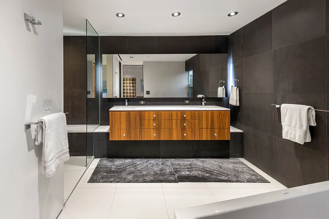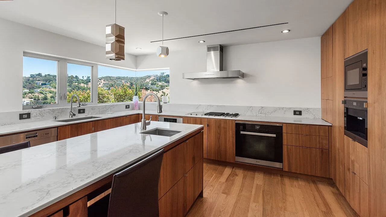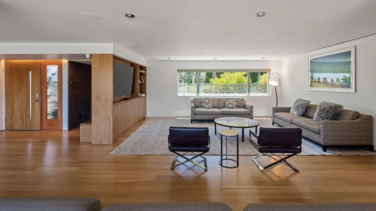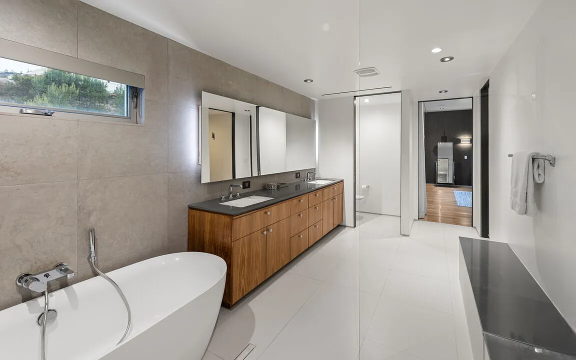 One of the highlights is the breathtaking zero-edge infinity pool, one of the largest in Los Angeles, complete with a relaxing spa area. This home is ideal for those who want to be close to the vibrant energy of the Sunset Strip while enjoying the tranquility and sophistication of hillside living.