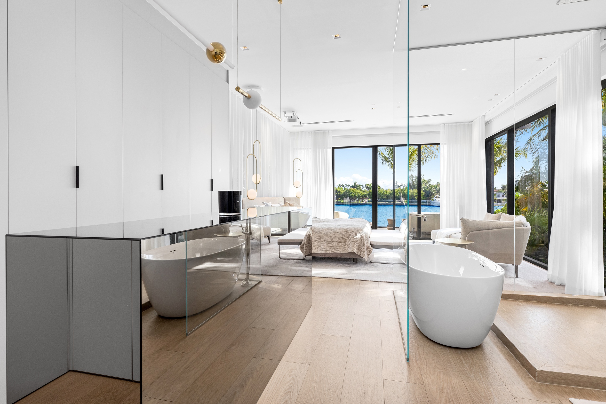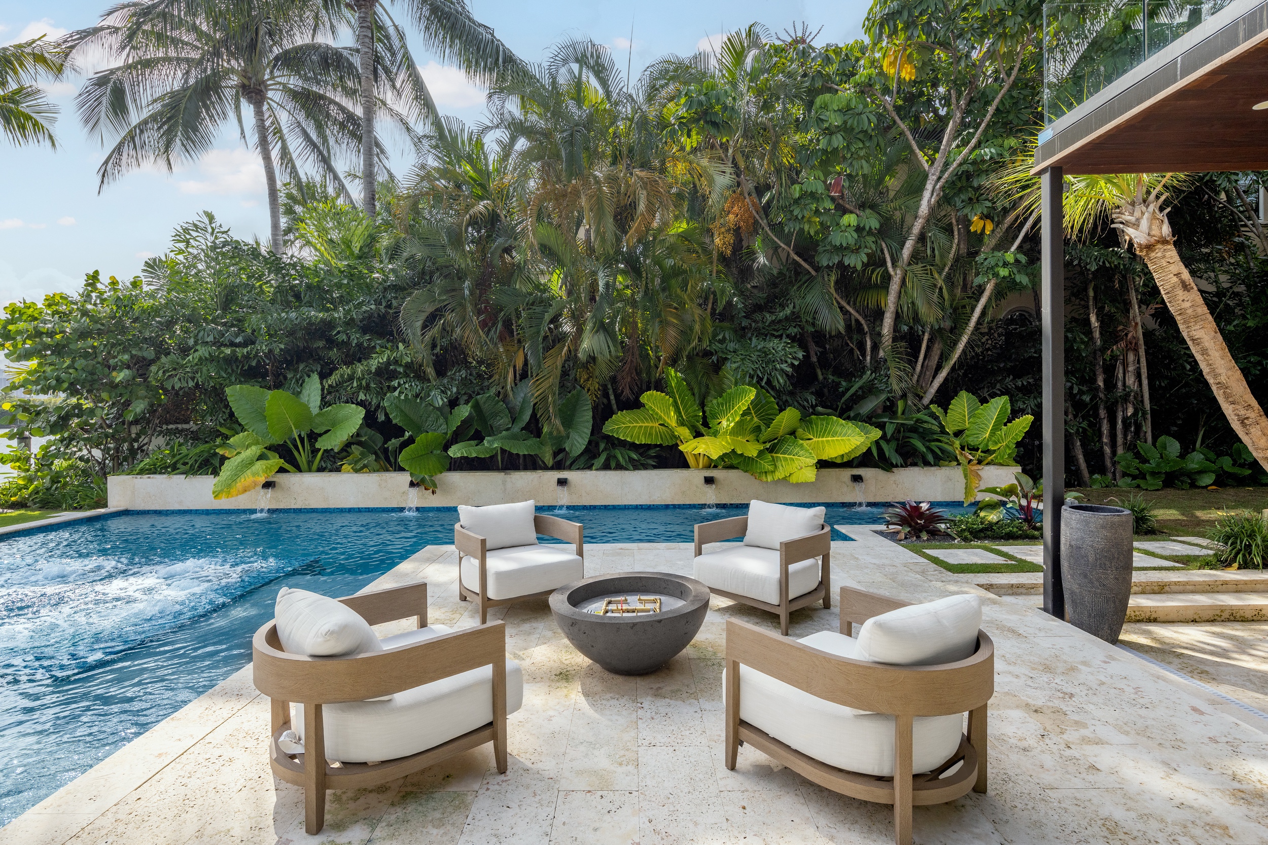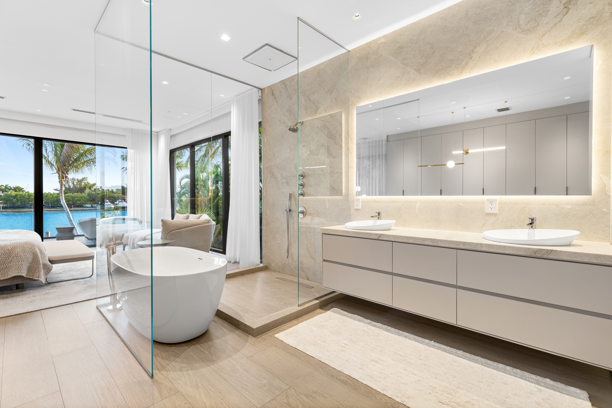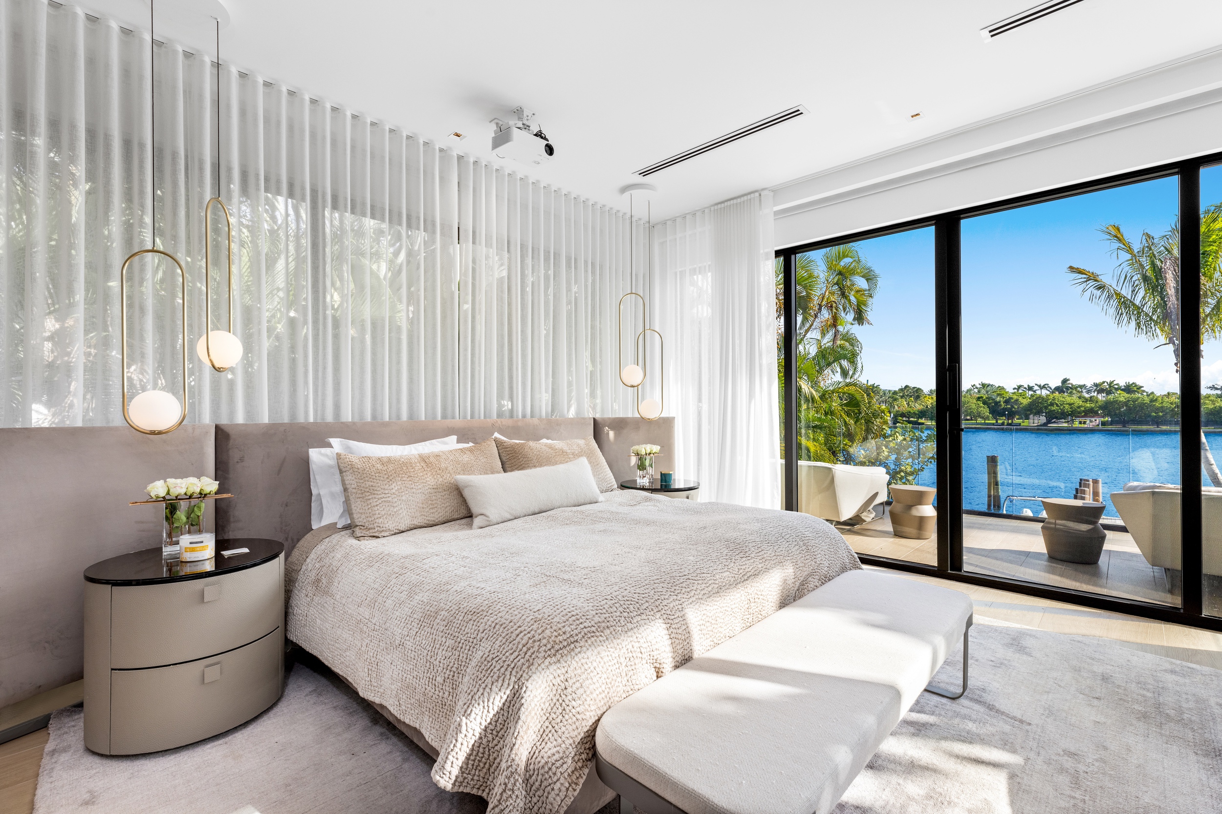The home showcases premium fixtures and finishes that define contemporary luxury throughout. Step outside to an impressive backyard oasis, thoughtfully crafted to captivate with stunning water features, lush landscaping, and an expansive 60 feet of waterfront frontage—offering the perfect setting for relaxation and entertaining against a breathtaking coastal backdrop.