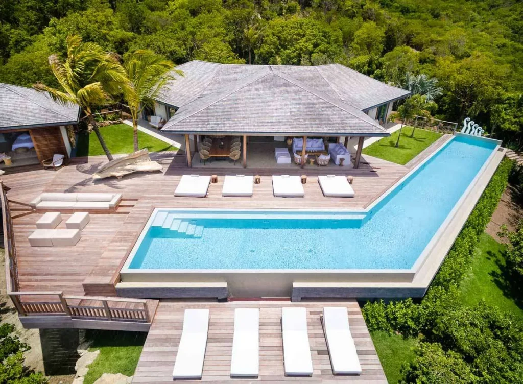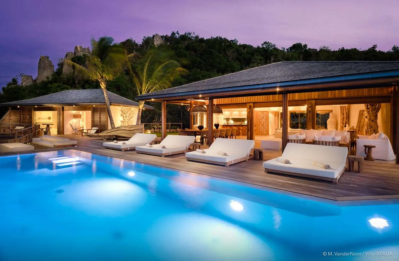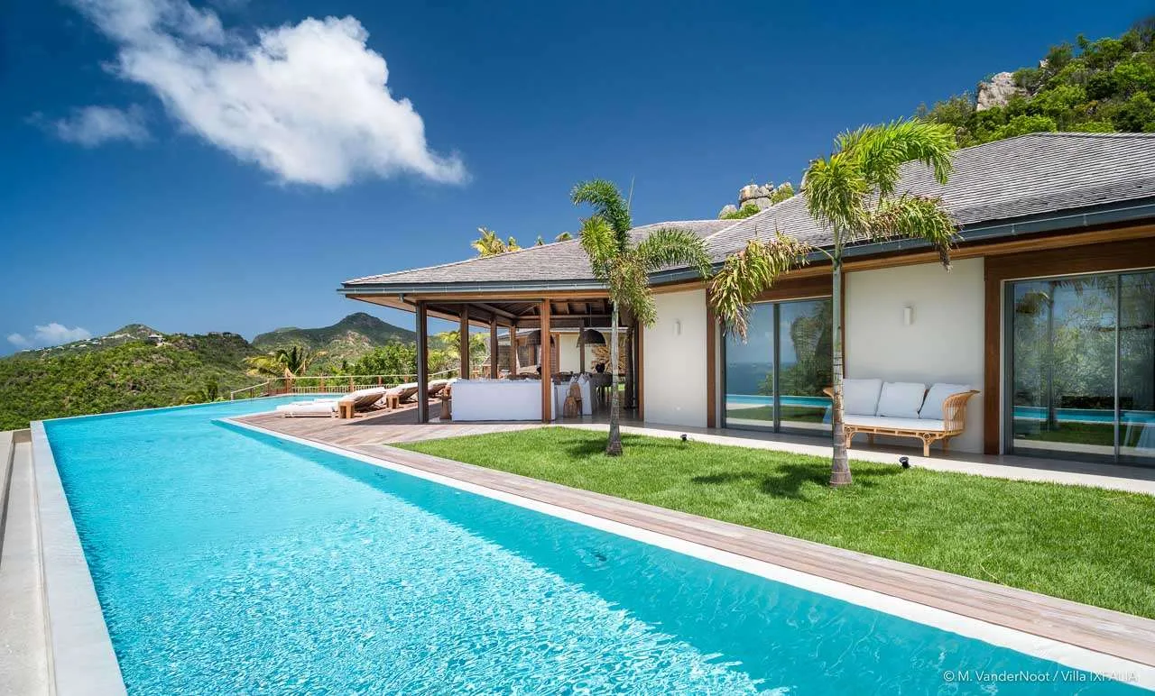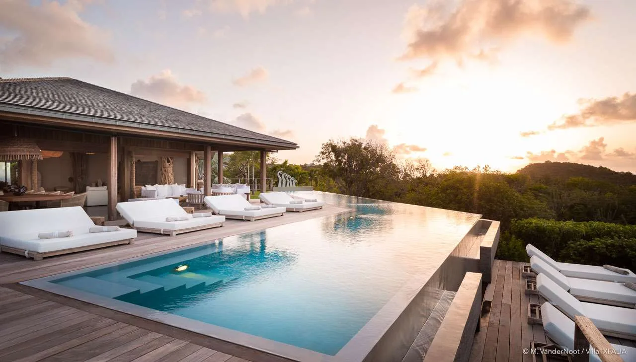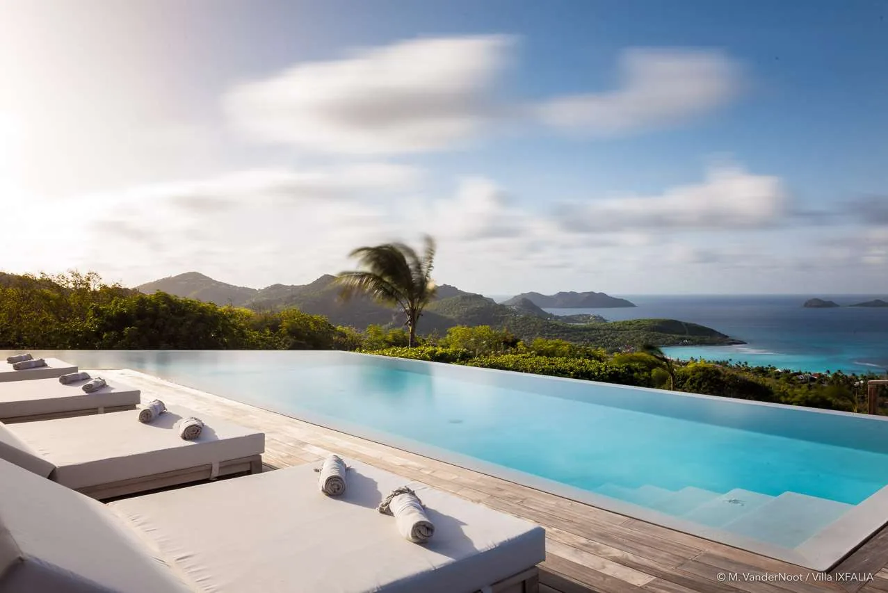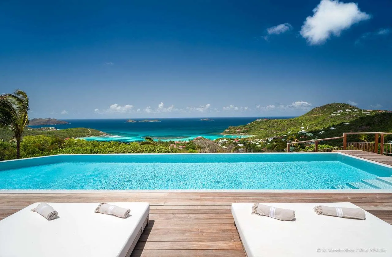 Perched on the heights of St. Jean within the exclusive Morne des Diamants domain, The Ixfalia Villa stands out as one of St. Barts’ most remarkable properties. Offering panoramic views of the bay and boasting an incredible 30-meter heated swimming pool, this stunning four-bedroom home promises an unforgettable Caribbean retreat.