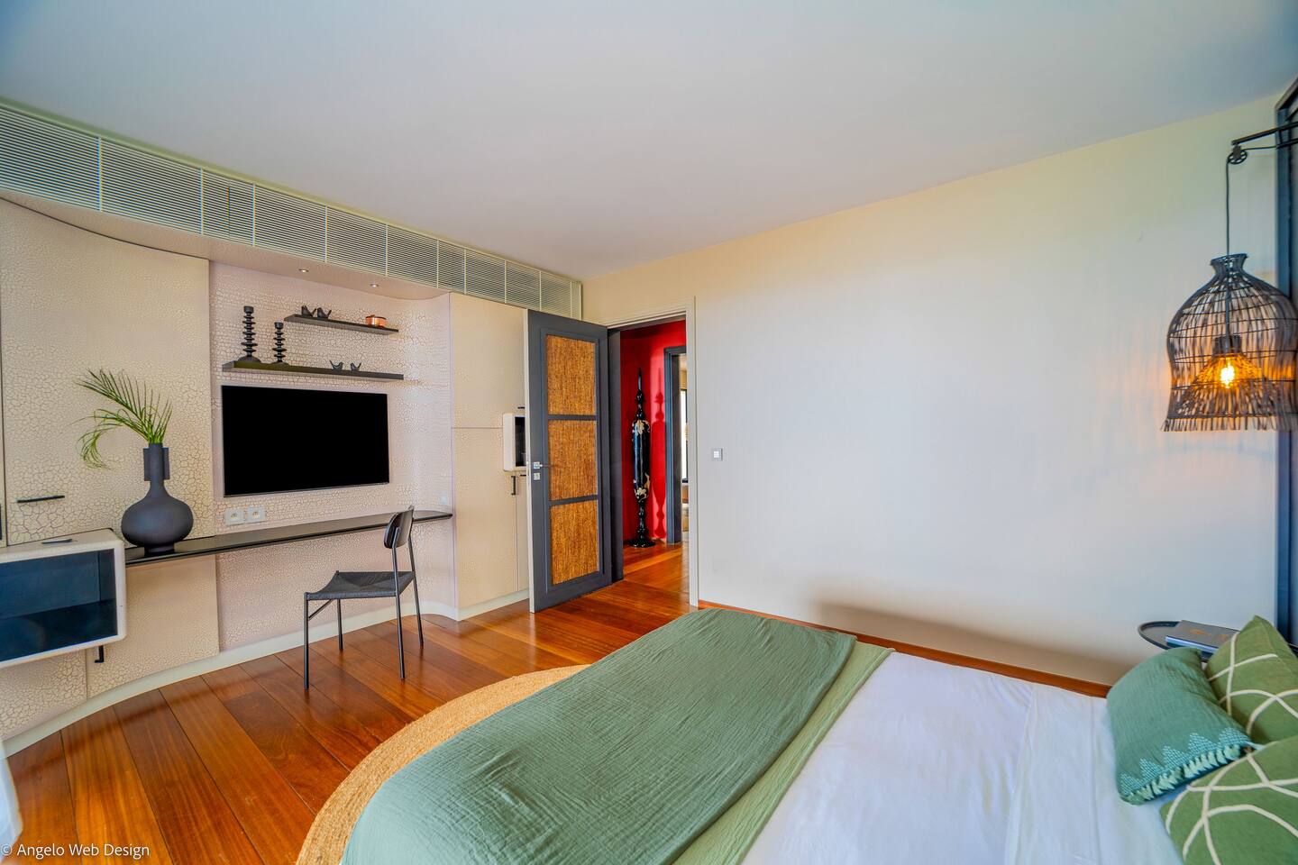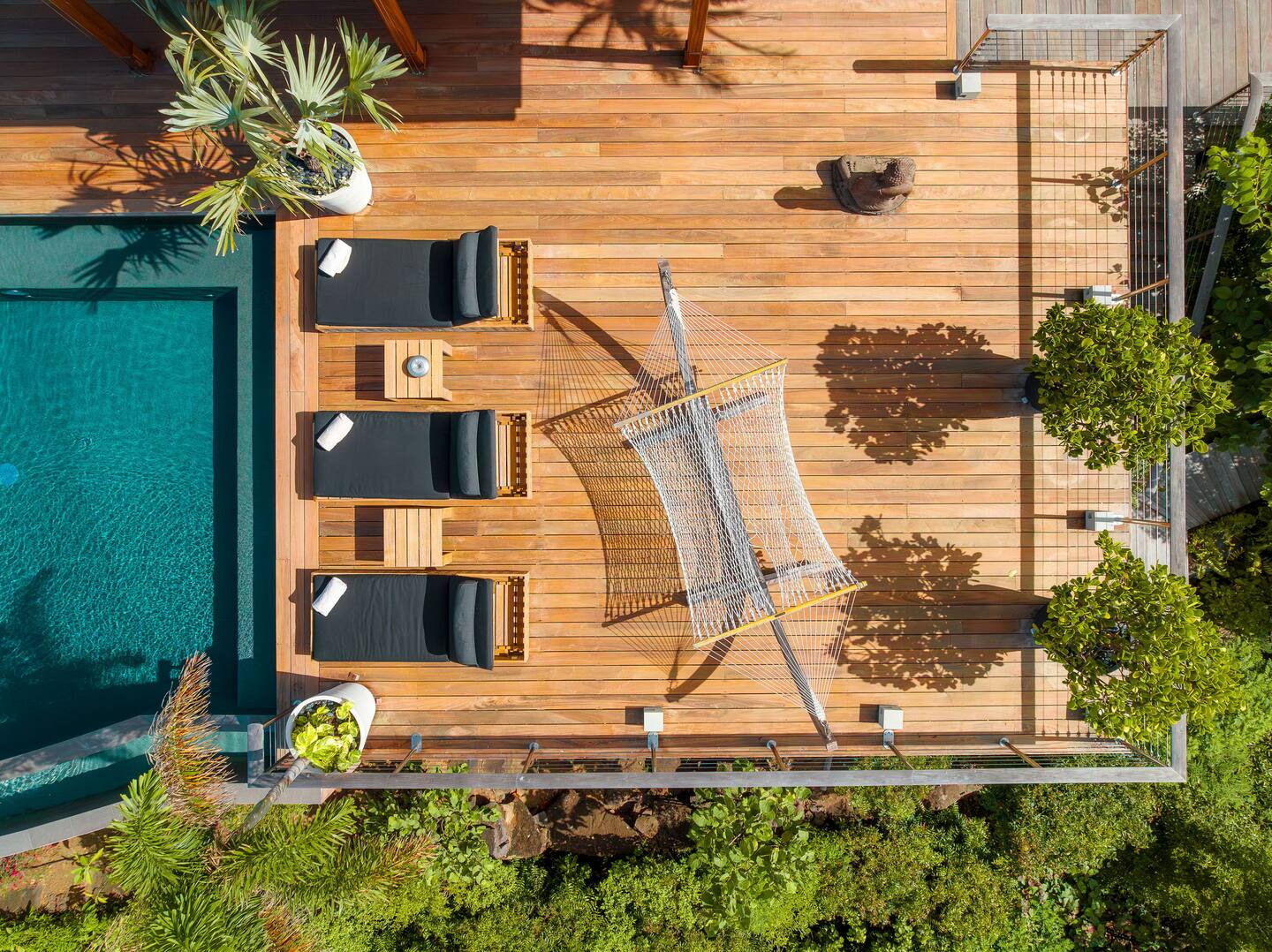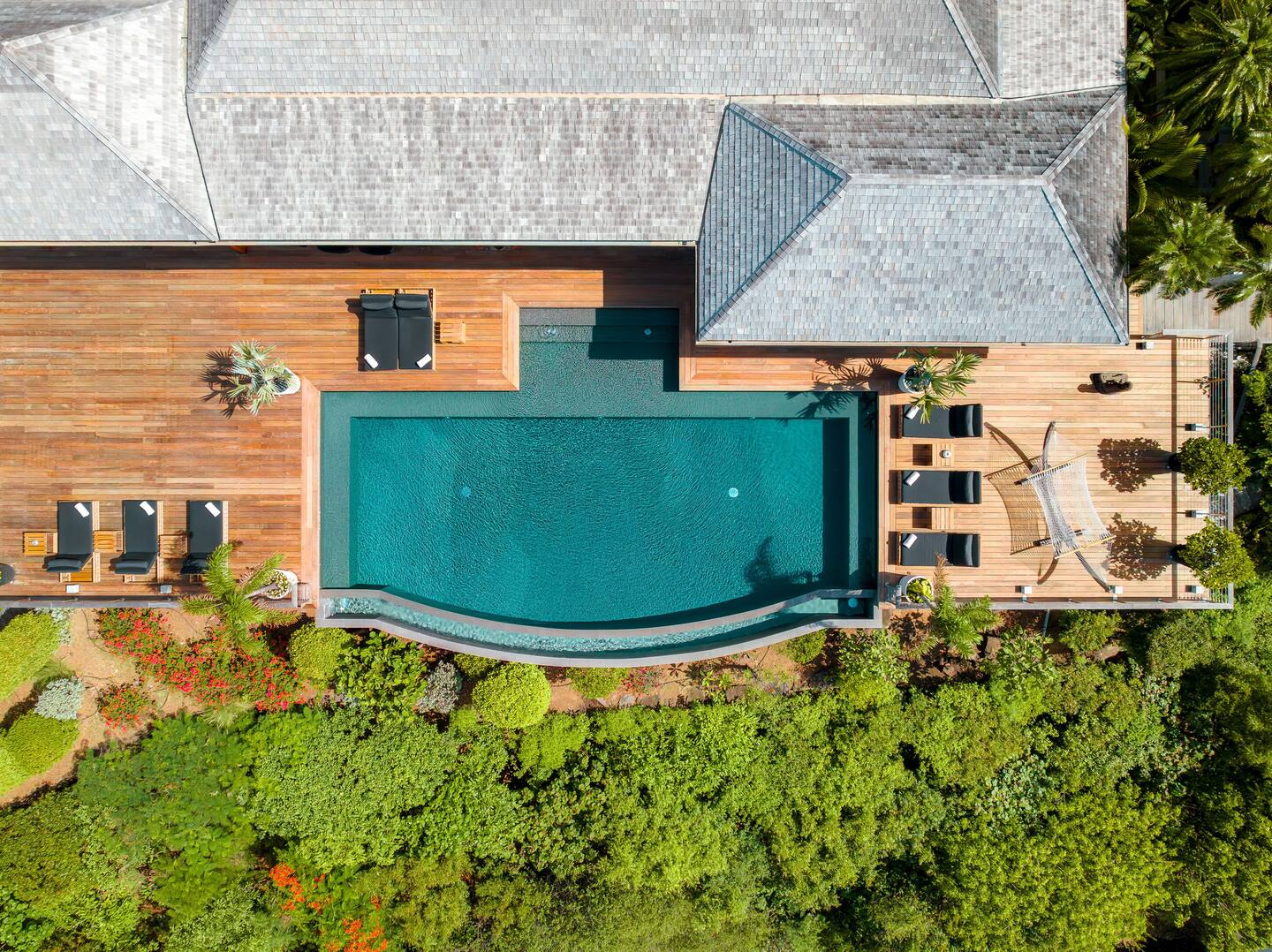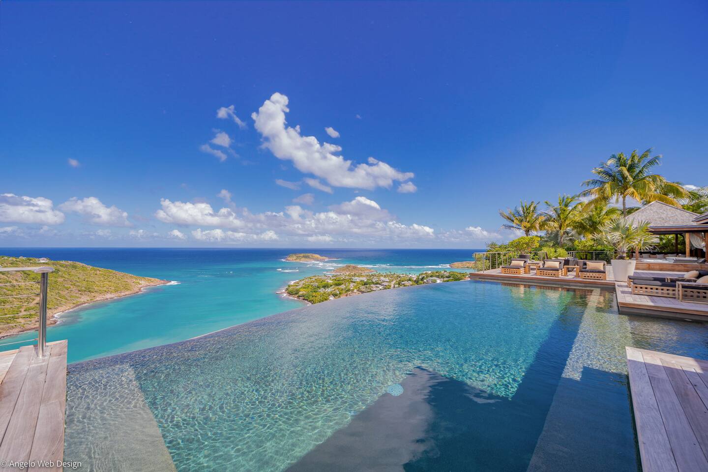 Spread across multiple levels and five separate buildings, The Jade Villa offers eight luxurious air-conditioned bedrooms, each uniquely themed and designed as exquisite works of art with a soft Asian-inspired ambiance. The main pavilion includes a family wing with the master bedroom and two children’s rooms, all overlooking the terrace and close to the living space. Four additional master suites, elegantly furnished and decorated, are situated in private pavilions for added privacy. A final suite in a lower bungalow is ideal for staff or teenagers, completing this exceptional villa that perfectly balances luxury, privacy, and breathtaking ocean views.