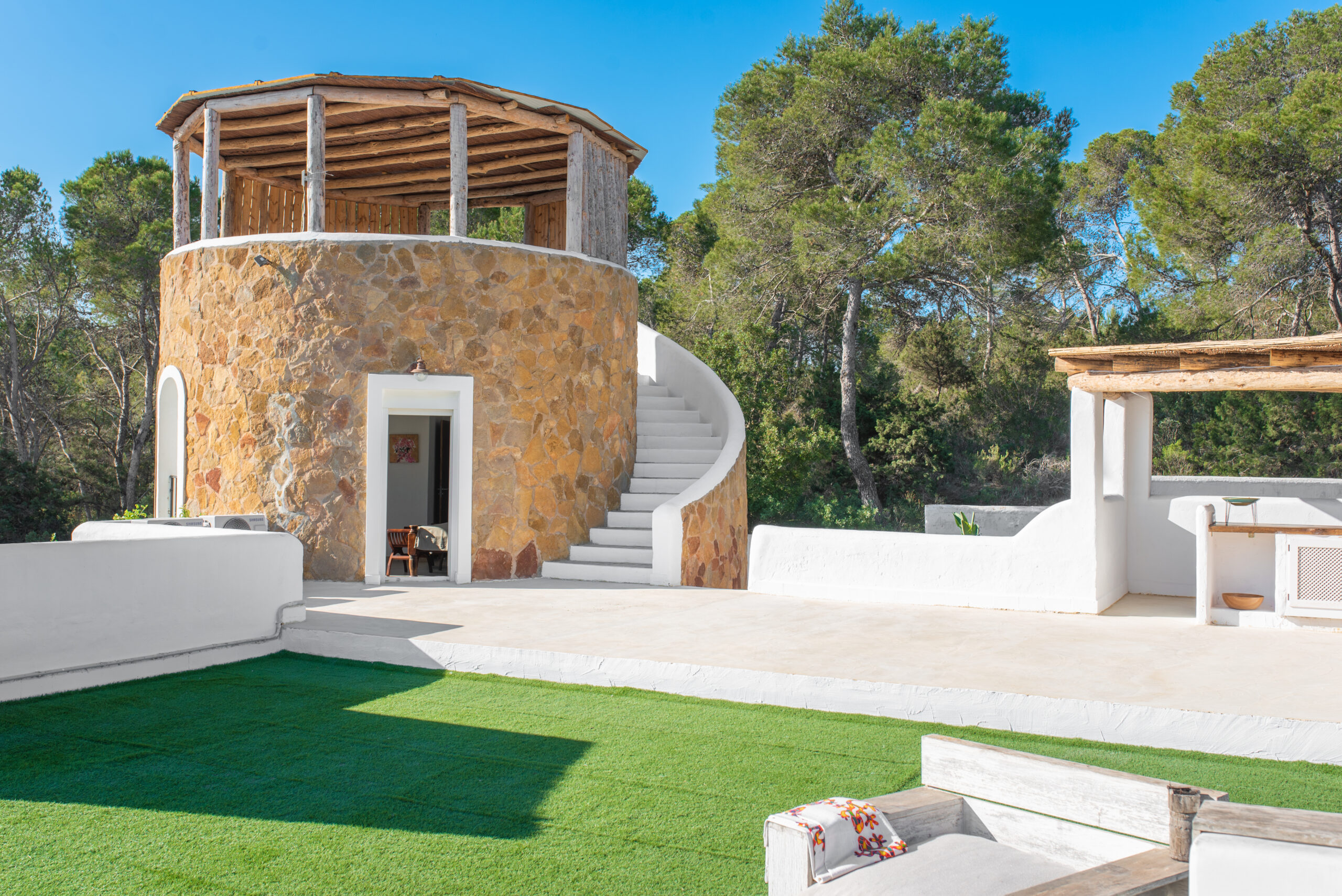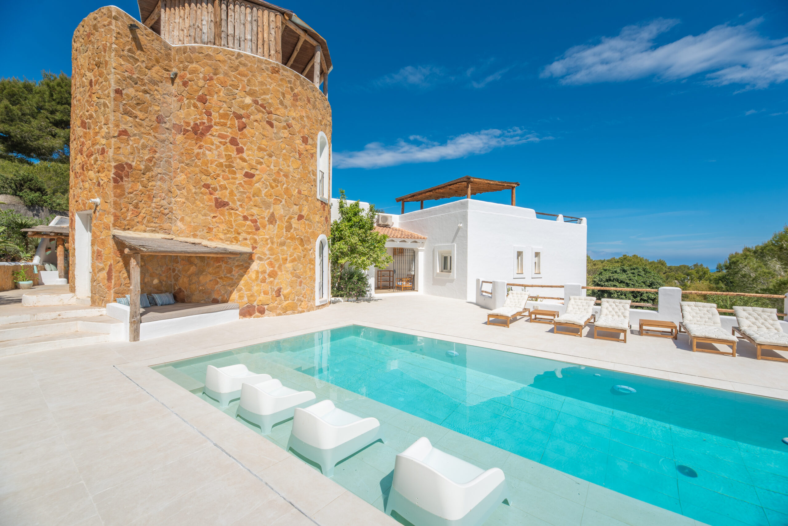 Designed for comfort and style, the expansive villa features a Blu-ray player, a fully equipped kitchen with a dishwasher, oven, and microwave, as well as two inviting living rooms with ample seating and a dining area. With seven bedrooms and eight bathrooms, including a bidet and bathtub, this property ensures a relaxing stay. Towels, bed linens, and an outdoor dining area are also provided, making it the ultimate retreat.
