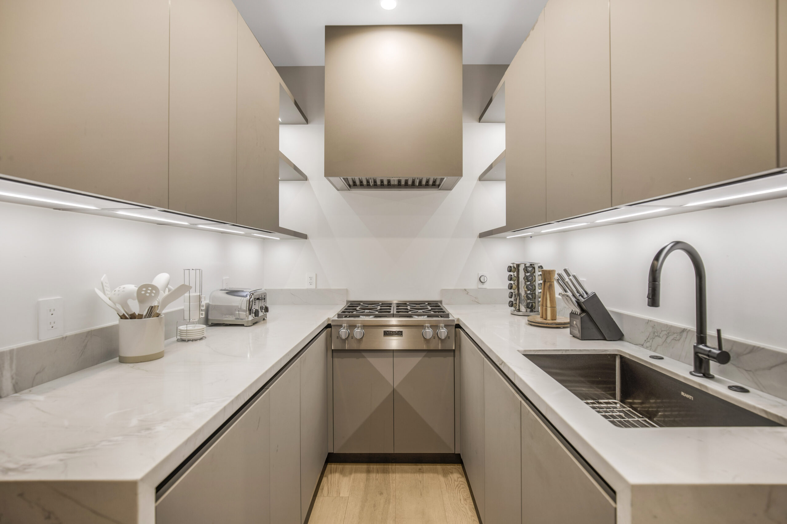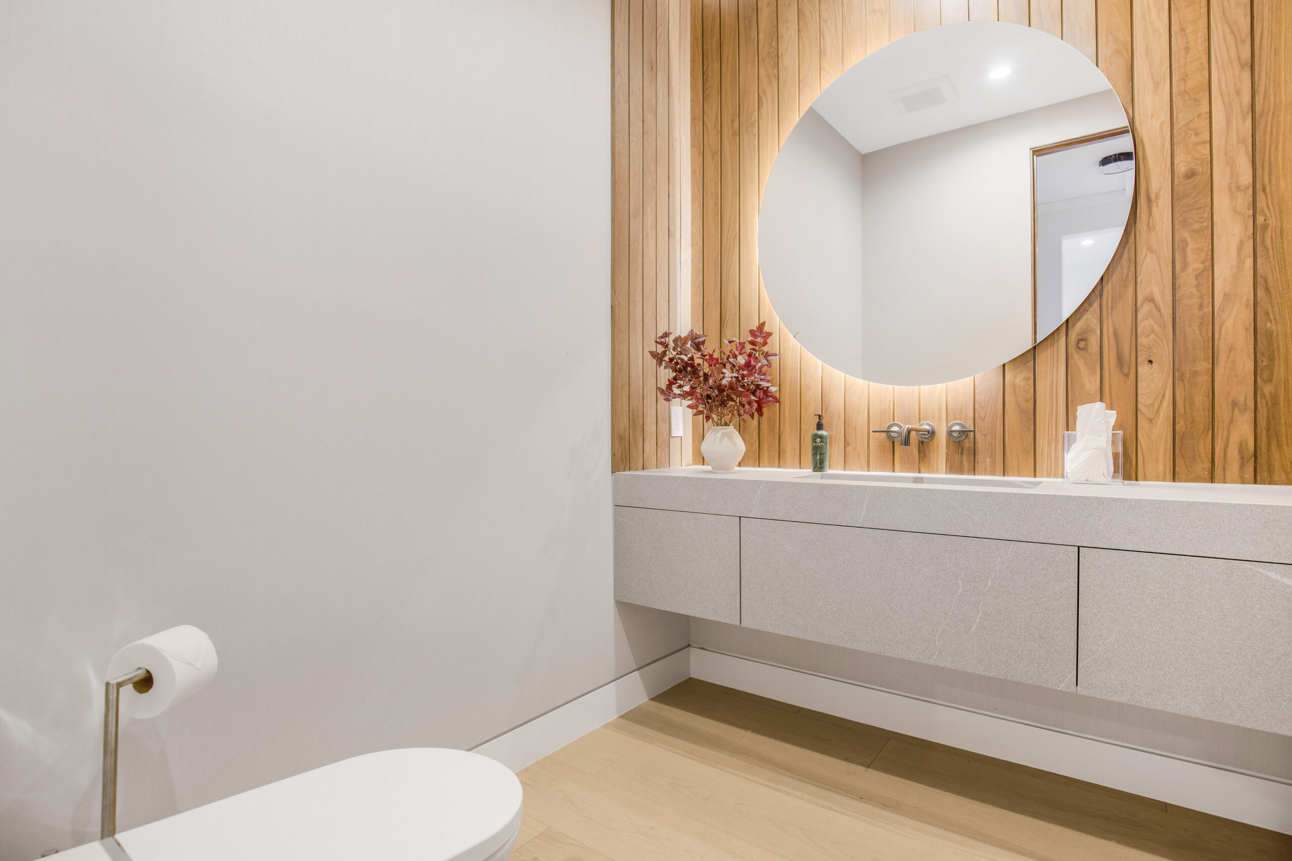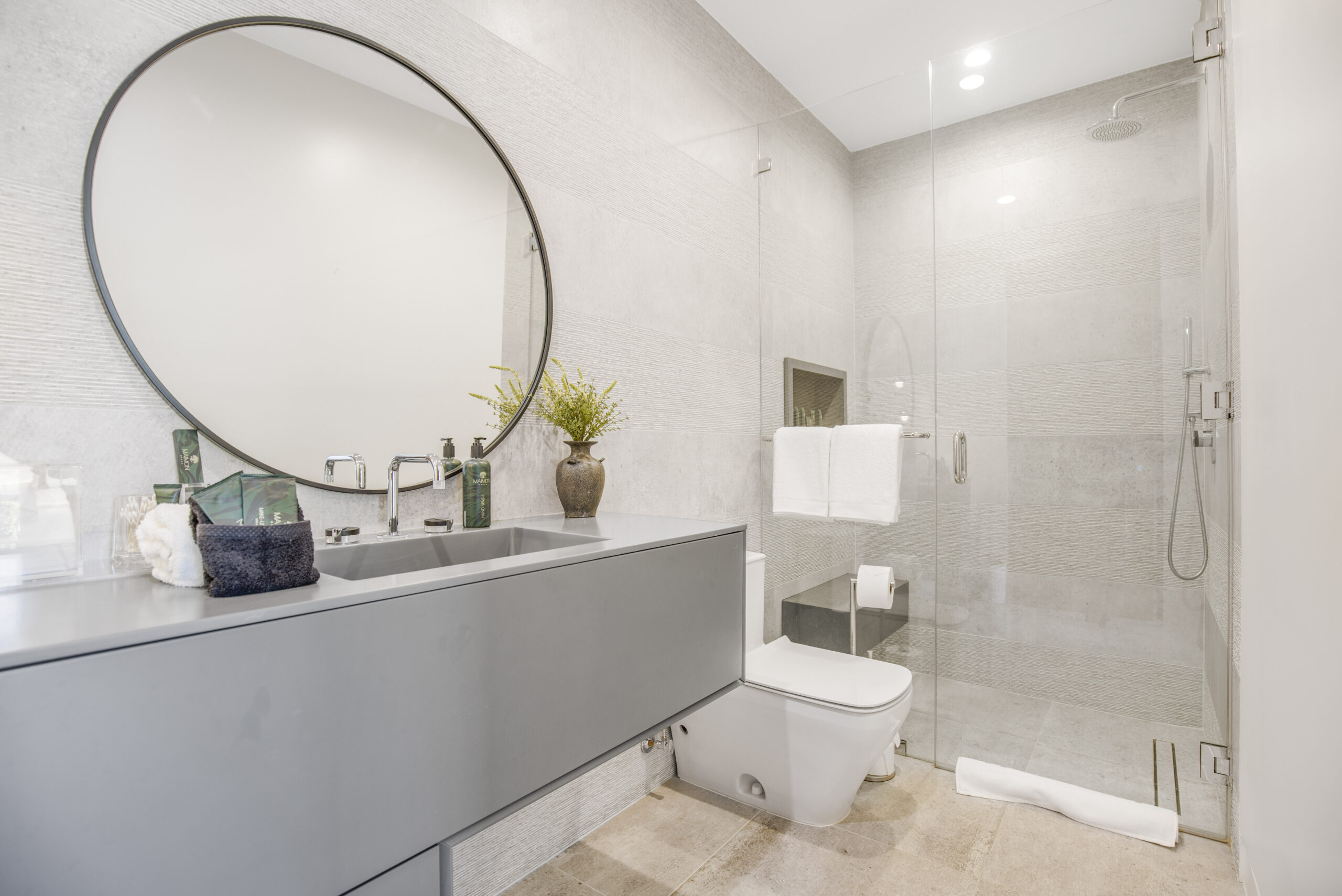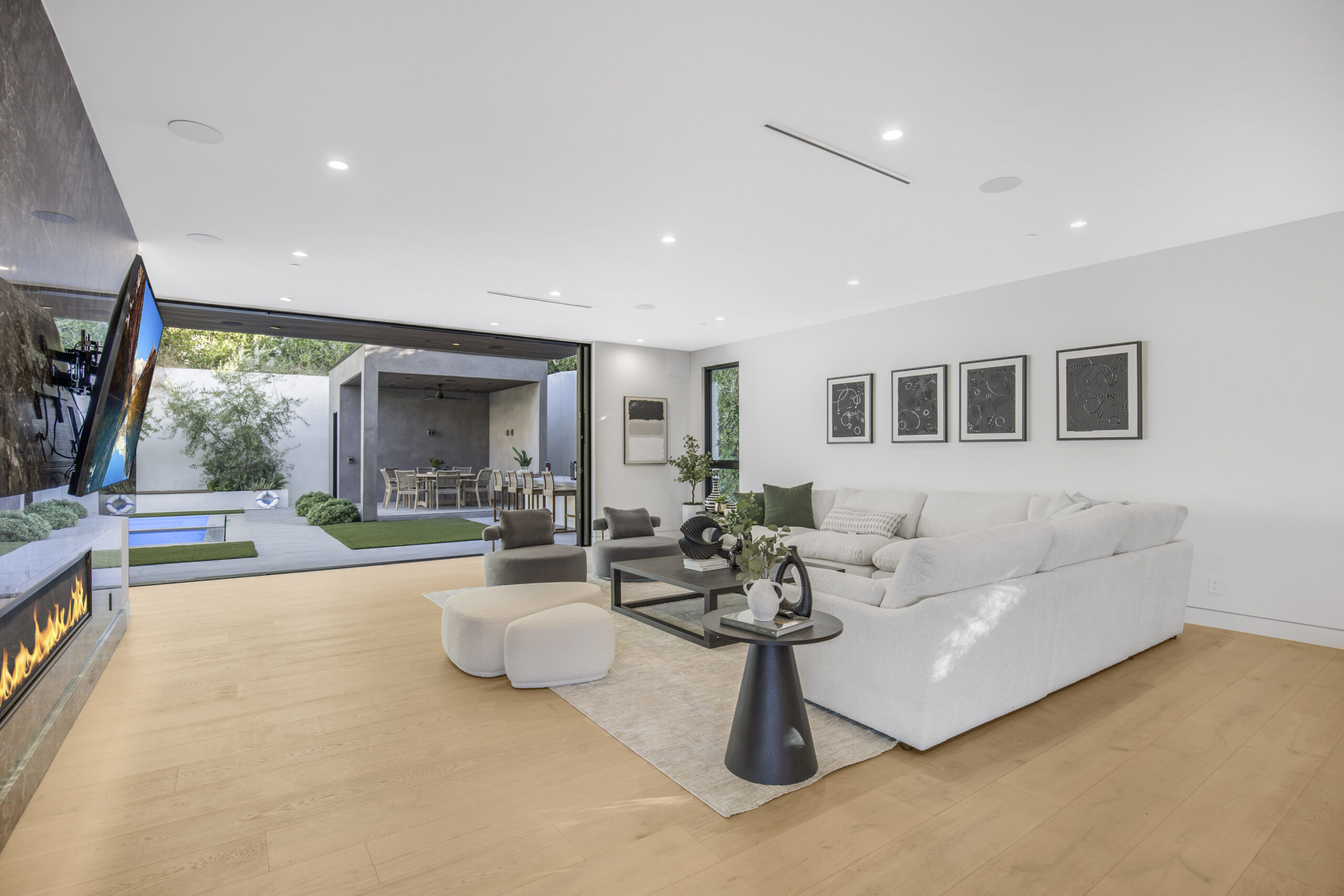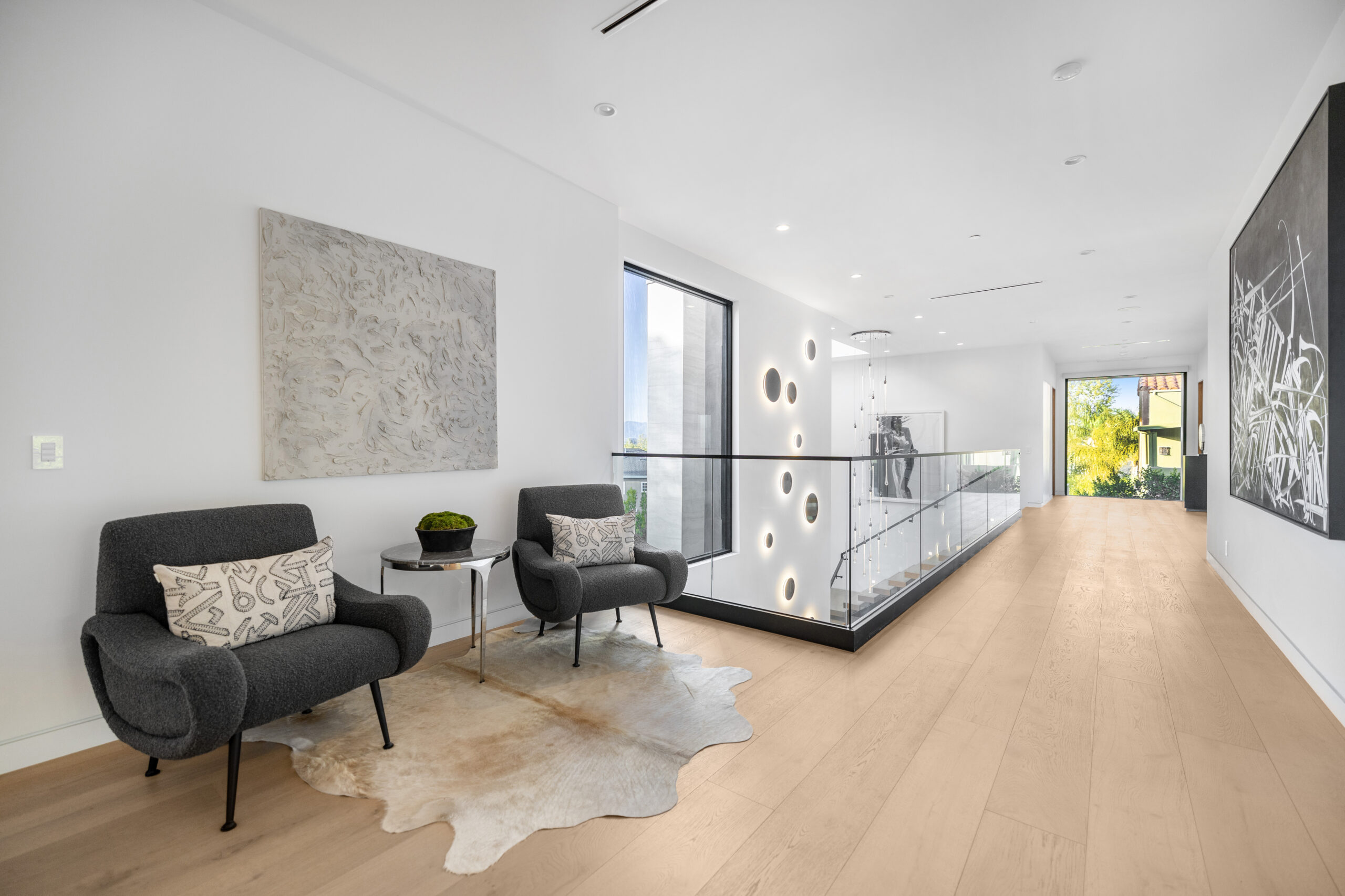Tucked away at the end of a tranquil cul-de-sac, this 8,476-square-foot estate serves as a masterclass in modern sophistication and architectural scale. The open-concept interior is defined by radiant European oak flooring and soaring floor-to-ceiling glass that invites an abundance of natural light to dance across every room. Designed for the ultimate host, the home features a dramatic great room anchored by a custom stone bar and a glass-enclosed wine display, while the culinary center boasts a chef’s kitchen equipped with dual center islands and professional-grade stainless steel appliances.