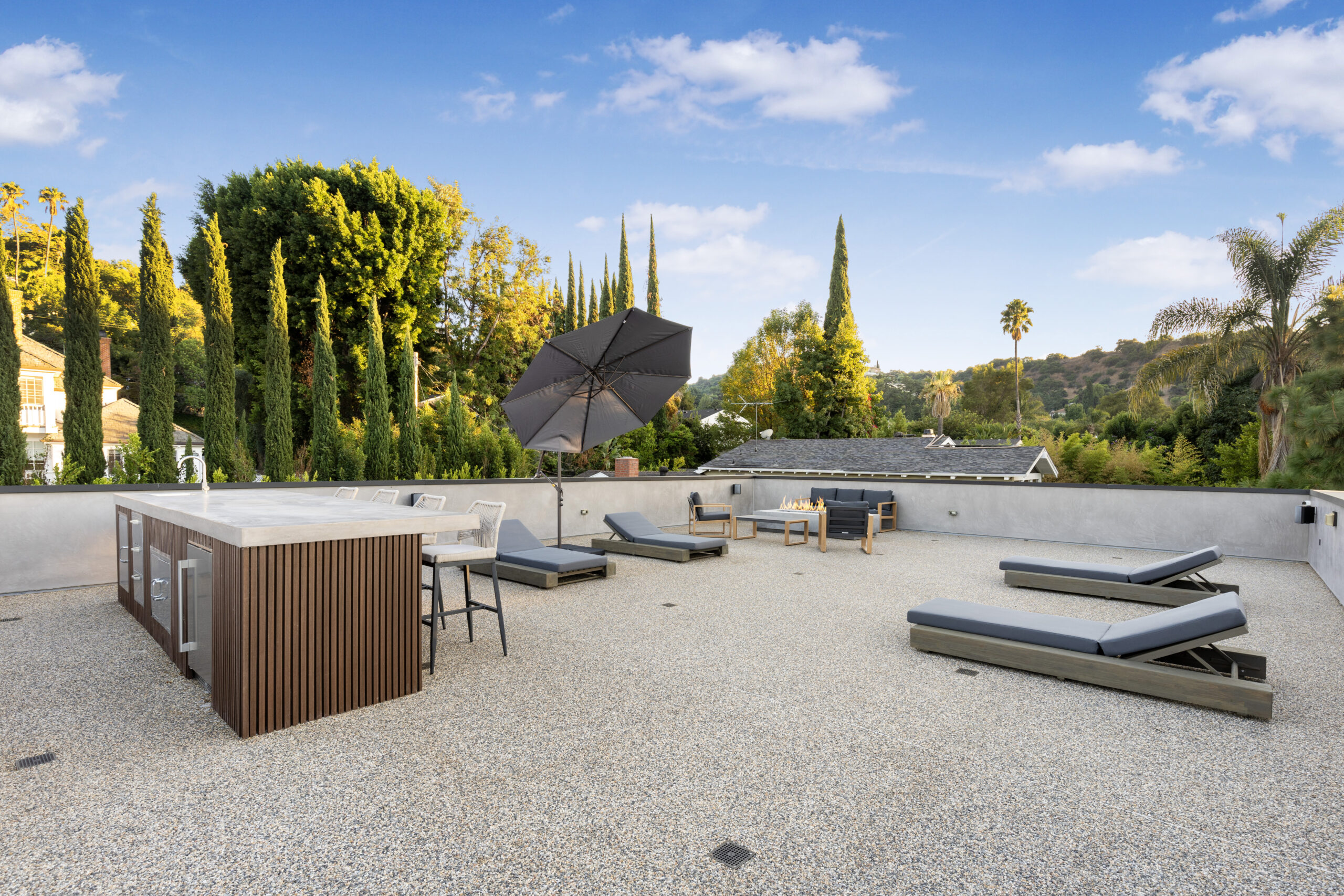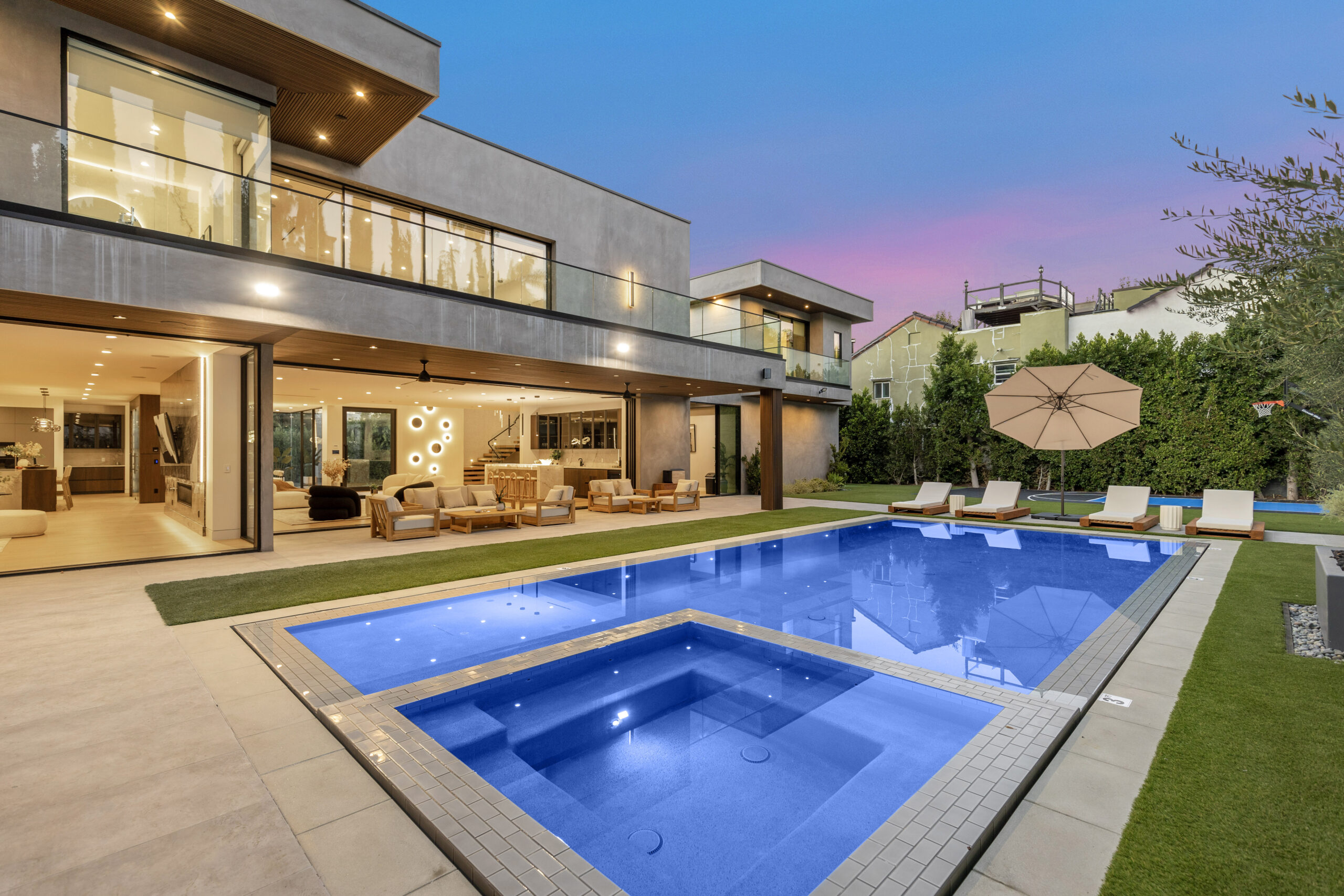 Beyond the aesthetics, the residence offers a curated five-star hospitality experience, arriving fully furnished and meticulously equipped with hotel-grade essentials. Each of the five ensuite bedrooms is a private sanctuary, highlighted by a primary retreat featuring a cozy fireplace, a spa-inspired bath, and private balcony access. Outside, the grounds transform into a private resort with a zero-edge pool, sports court, and a rooftop deck offering panoramic valley views—all seamlessly managed by a state-of-the-art Control4 smart home system and supported by a 24/7 concierge team dedicated to an effortless stay.
