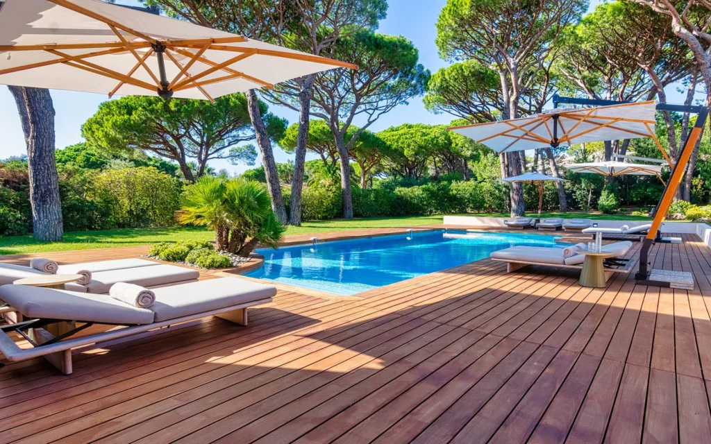 The Lisa Villa is a luxurious retreat in St. Tropez, bathed in sunshine and surrounded by lush greenery, ensuring an unforgettable holiday experience. Nestled on the southern hill of the exclusive Parcs de Saint Tropez, this exquisite villa offers both tranquility and security while being conveniently close to the vibrant attractions of the Côte d’Azur. Set among gently swaying umbrella pines and beautifully landscaped Mediterranean gardens, the villa features two outdoor lounge areas, a covered al fresco dining space, and numerous terraces and porticoes, providing ample opportunities to unwind with a book and a refreshing drink. At the heart of the gardens lies a stunning private swimming pool (heated from June to August), complete with loungers, parasols, and a well-equipped pool house, ensuring comfort and convenience for sun-soaked days.