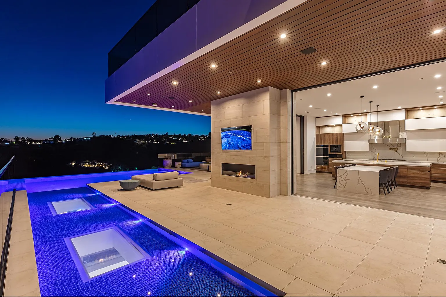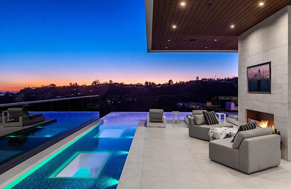 The estate’s transition to the outdoors is equally breathtaking, centered around a mesmerizing glass-bottom infinity pool that cascades into the horizon. For the ultimate retreat, the primary suite offers a secluded deck, while the expansive rooftop lounge provides a scenic bar and fire pit with 360-degree vistas. The lower level is dedicated to world-class entertainment, featuring an illuminated onyx bar, a professional cinema, a spacious gym, and a temperature-controlled wine cellar. This home is more than a residence; it is a rare work of art situated in one of the world’s most prestigious enclaves.