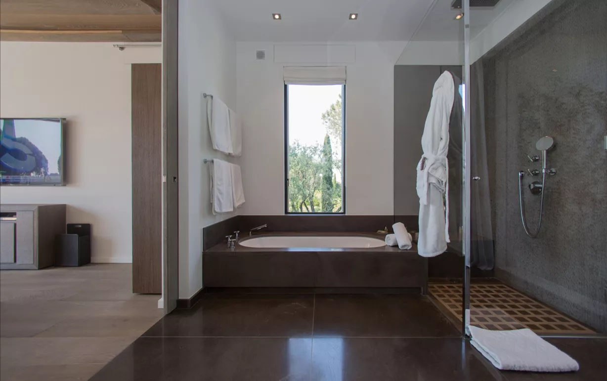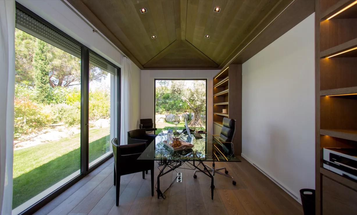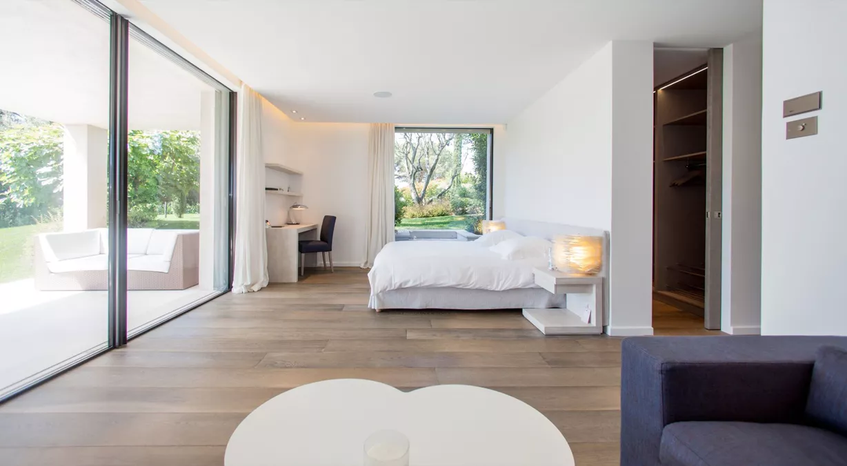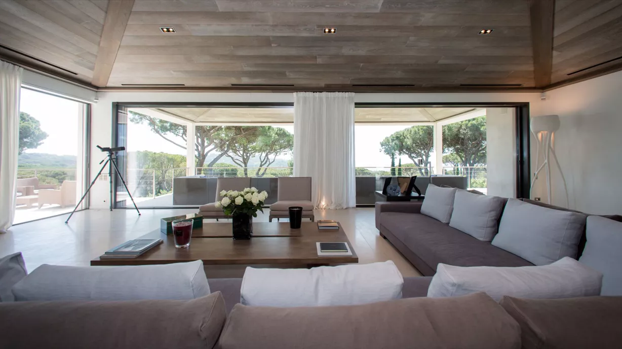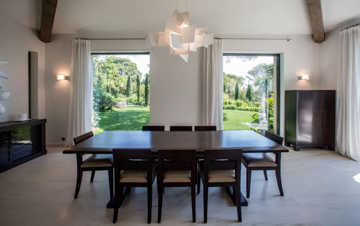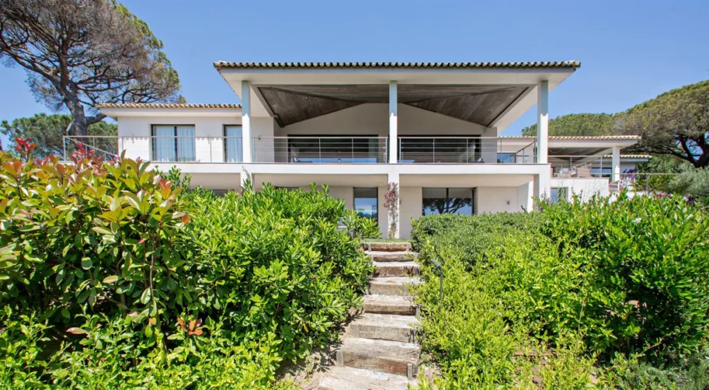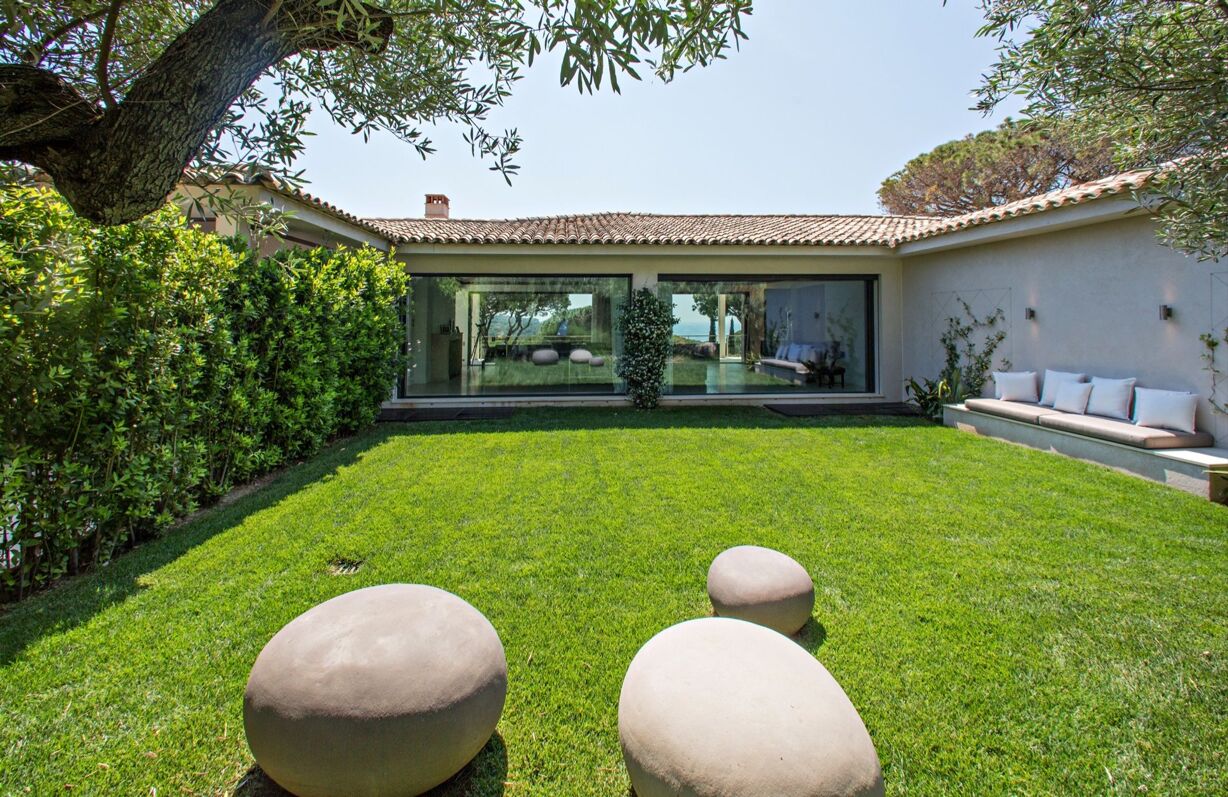 Nestled beneath a canopy of century-old pine trees, The Leora Villa reveals itself as a lush green sanctuary between the sky and the sea, right in the heart of Saint-Tropez. This serene garden, bathed in light and cool breezes, offers a tranquil view that extends to the horizon, creating a perfect escape from the hustle and bustle.