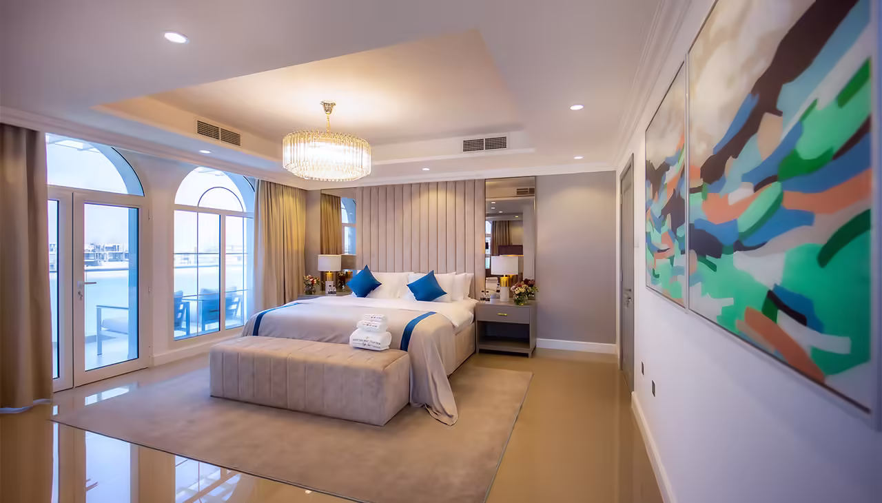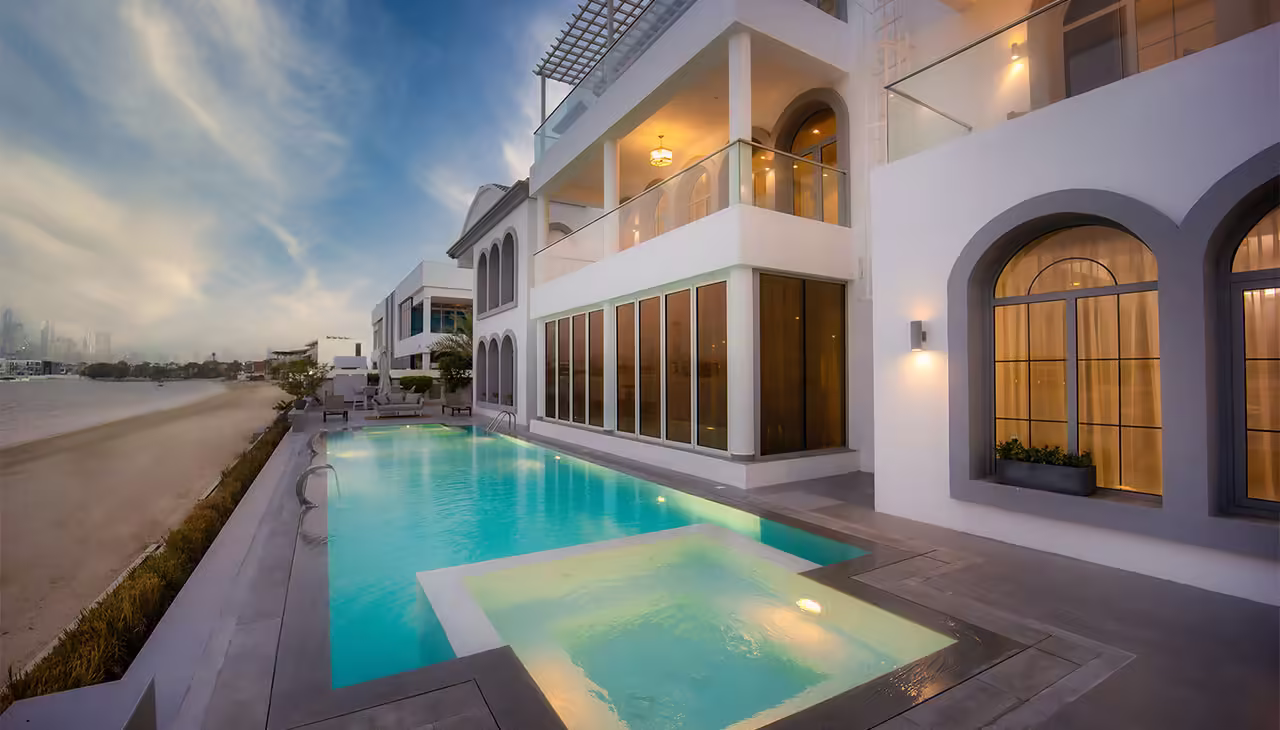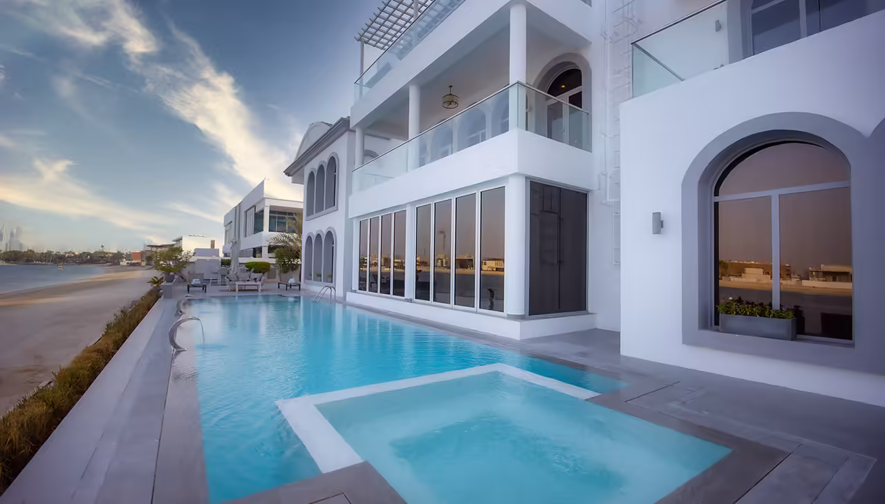 This custom-built masterpiece, nestled on one of the most exclusive fronds of Palm Jumeirah. Boasting spacious interiors and exquisite design, this villa stands as one of the largest and most sought-after 9-bedroom properties in Dubai, perfect for those seeking privacy, elegance, and breathtaking surroundings.
