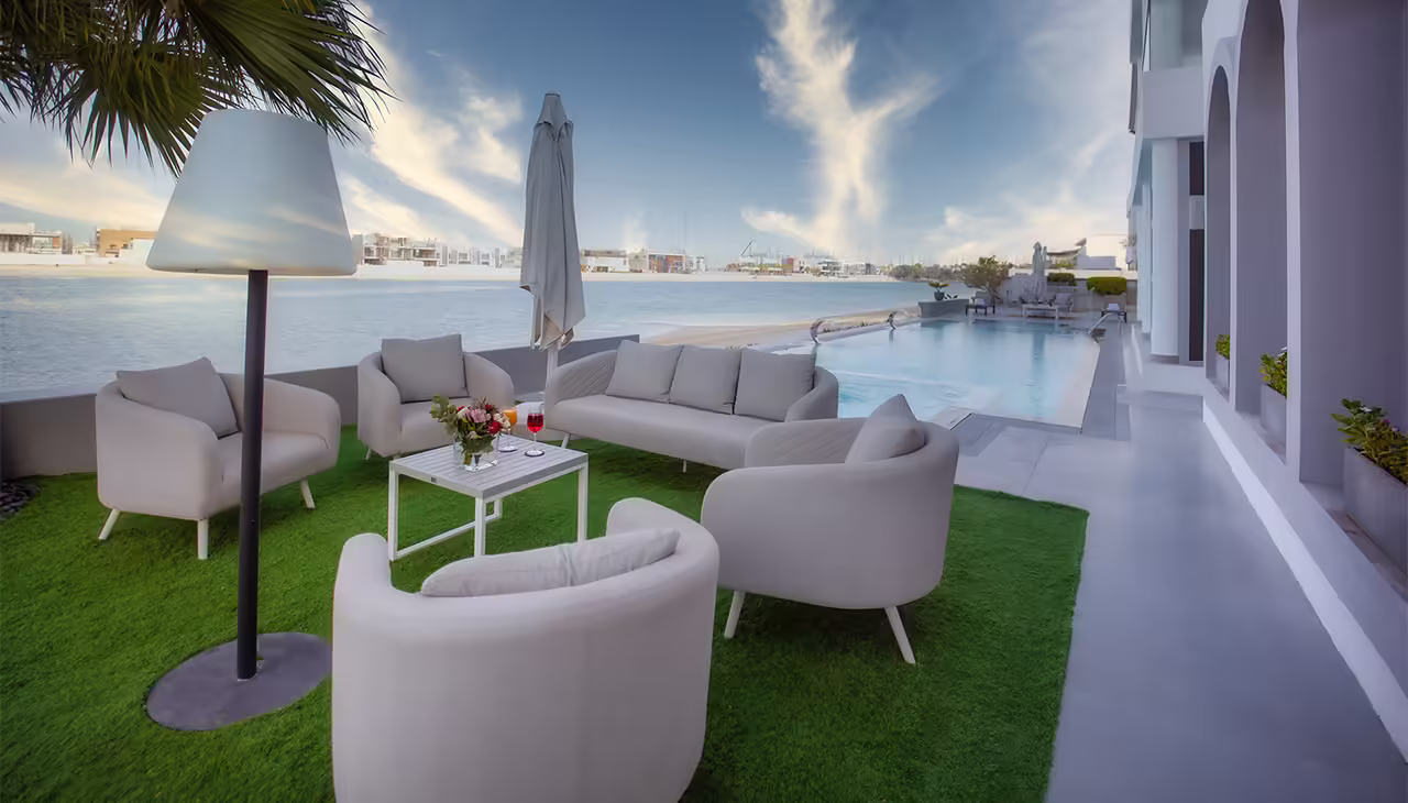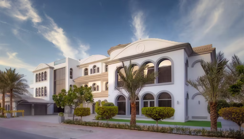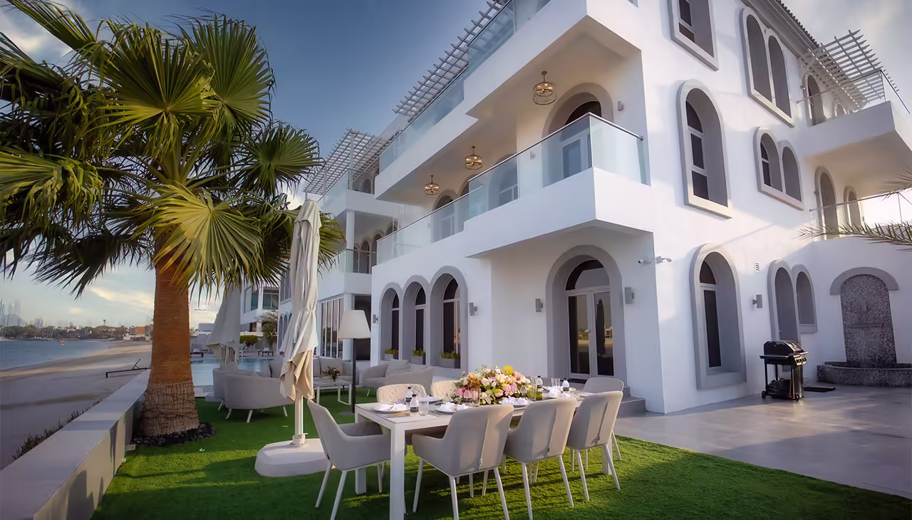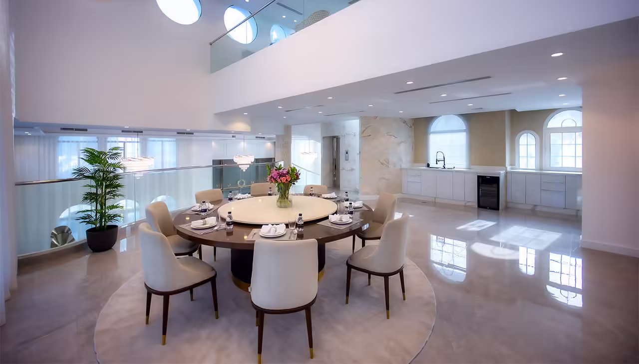 This custom-built masterpiece, nestled on one of the most exclusive fronds of Palm Jumeirah. Boasting spacious interiors and exquisite design, this villa stands as one of the largest and most sought-after 9-bedroom properties in Dubai, perfect for those seeking privacy, elegance, and breathtaking surroundings.