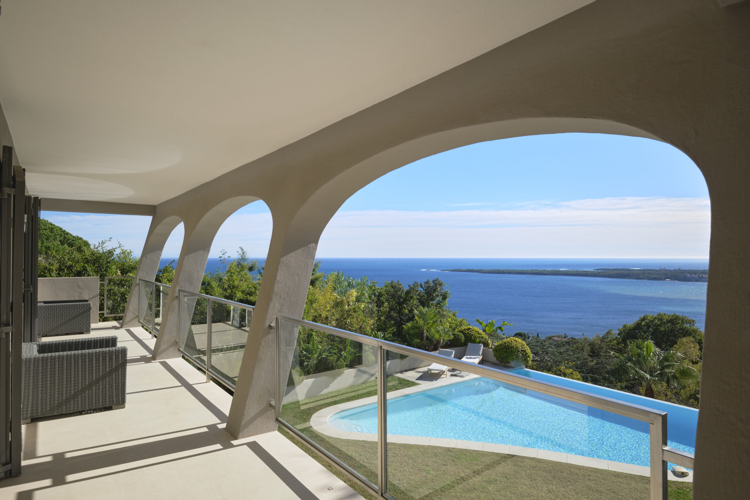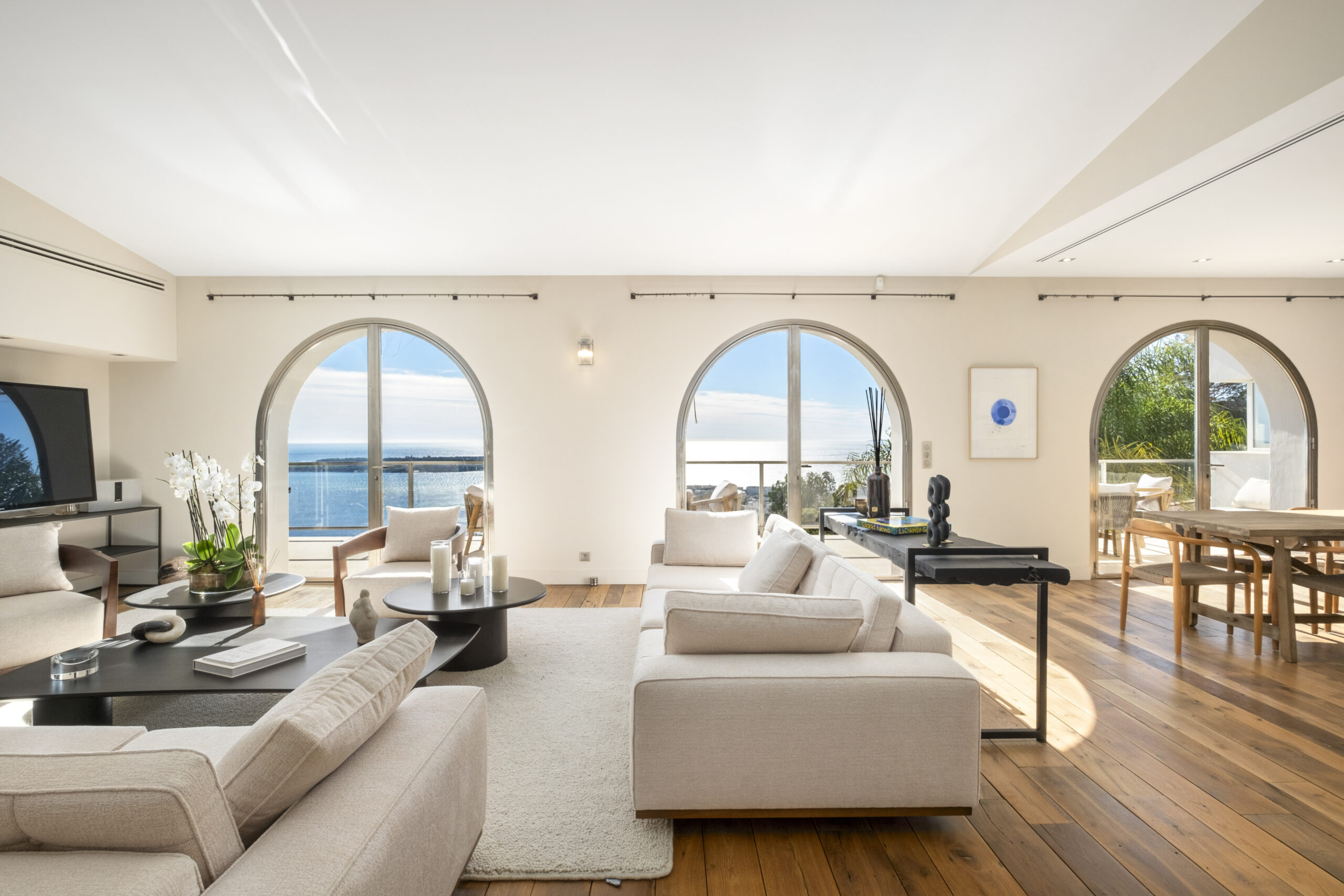 Located in the prestigious California district of Cannes, this exquisite villa spans approximately 300 square meters and boasts breathtaking views of the Mediterranean Sea. The elegant property offers a luxurious and serene environment, perfect for enjoying the beauty of the French Riviera.
