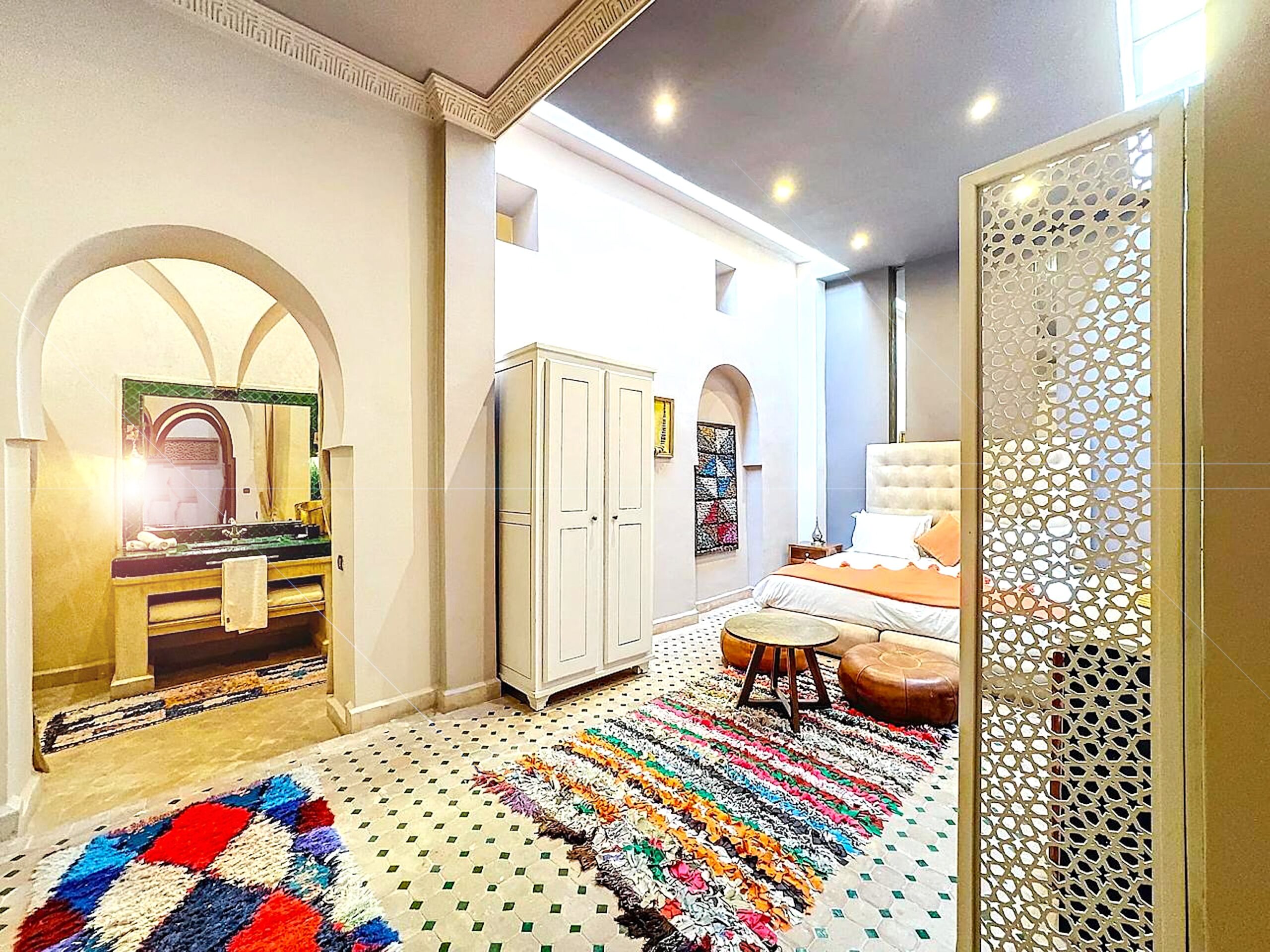 Experience the magnificence of our seven uniquely designed bedrooms and suites, each crafted with tradition and authenticity to provide personalized attention to every guest. Recognizing that each individual is unique, we prioritize creating an intimate atmosphere that feels like a home away from home. The stunning 16th-century Remparts wall encircles the Riad, complemented by multilevel double-facing terraces—perfect for relaxation and retreat.