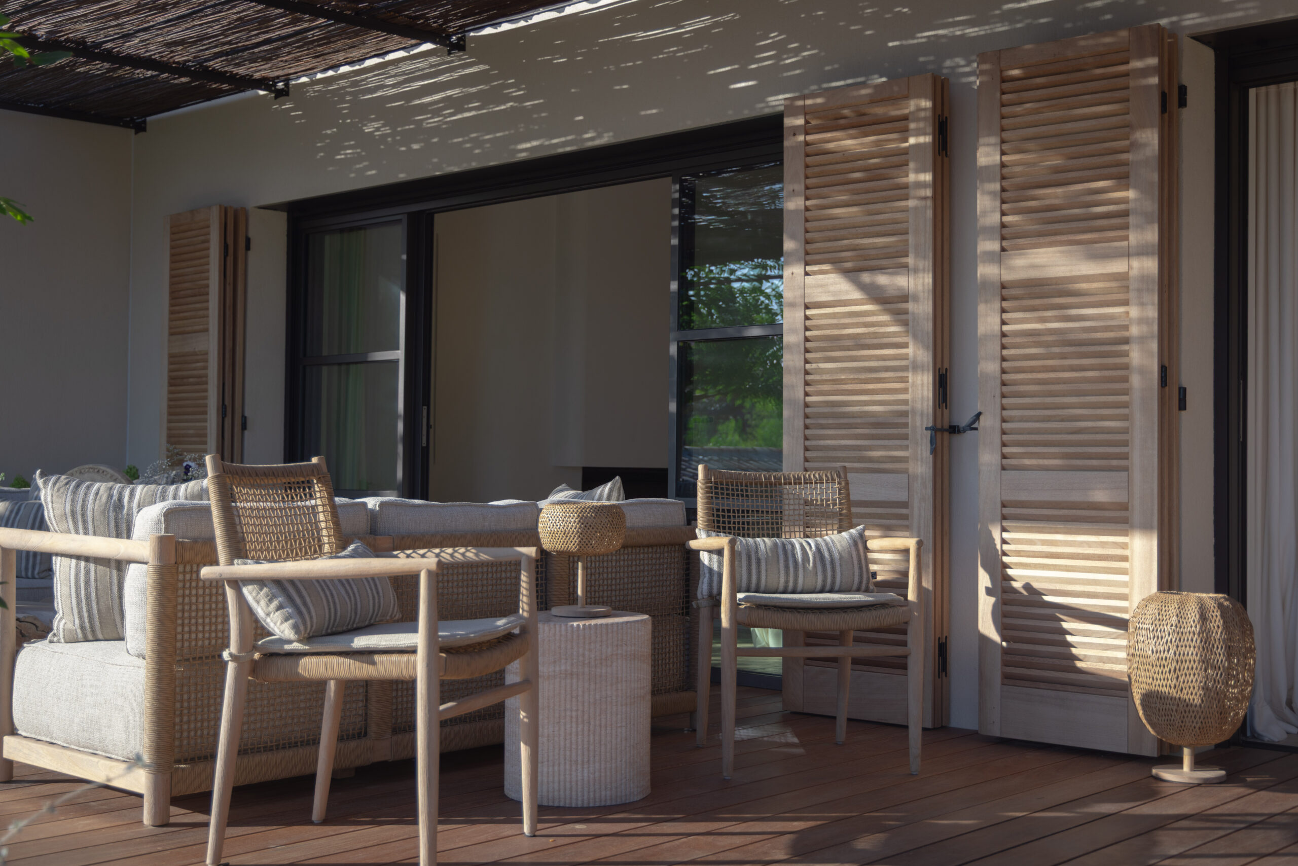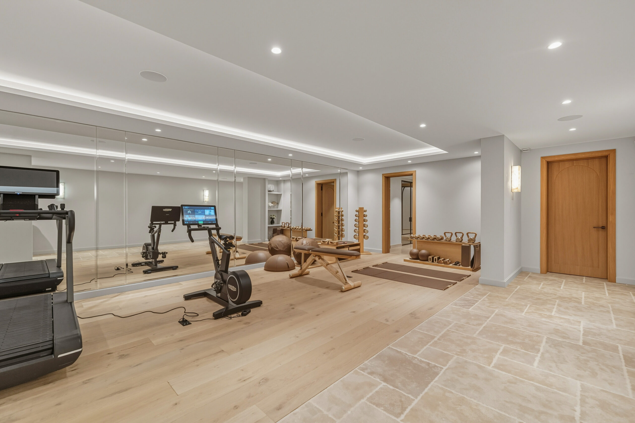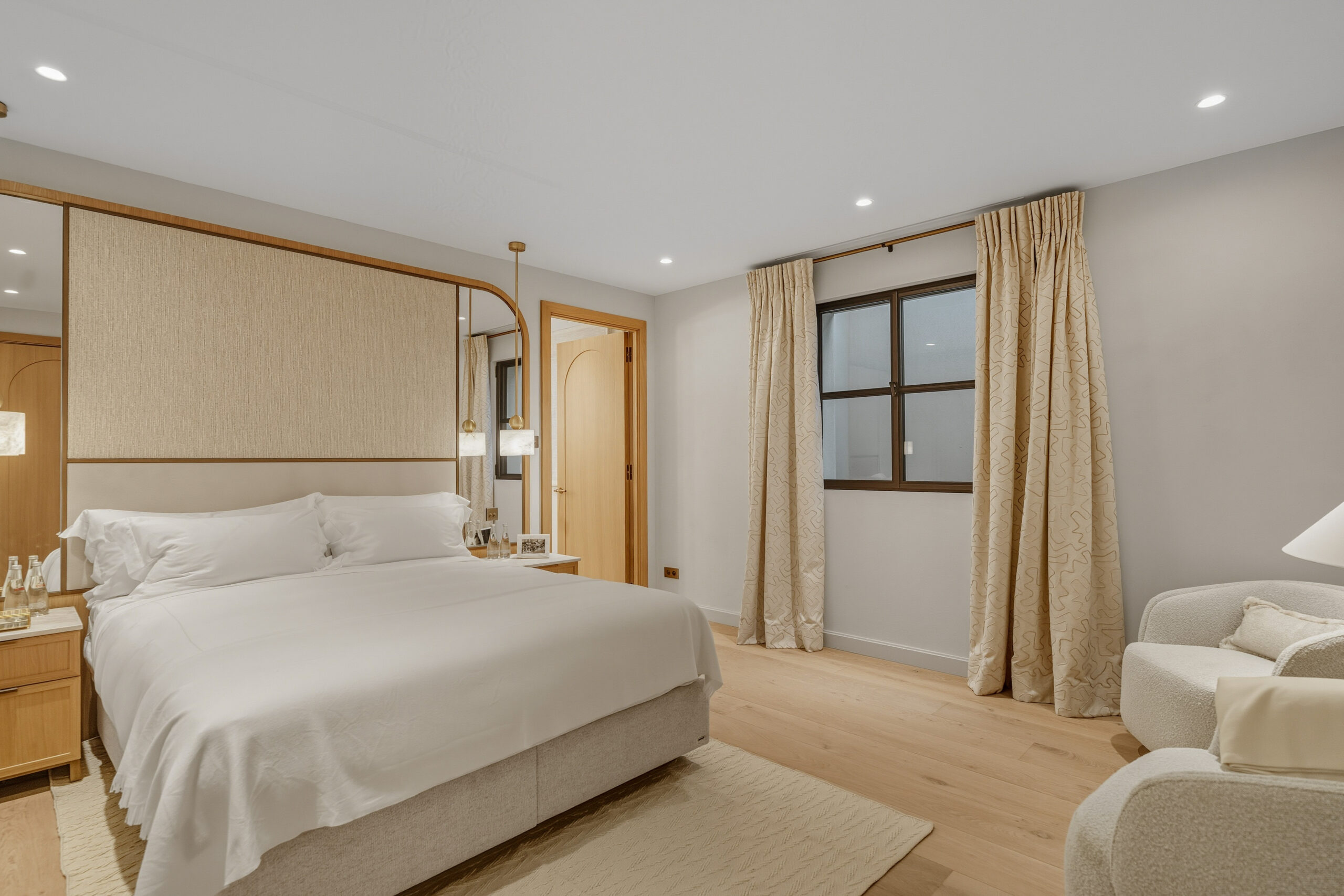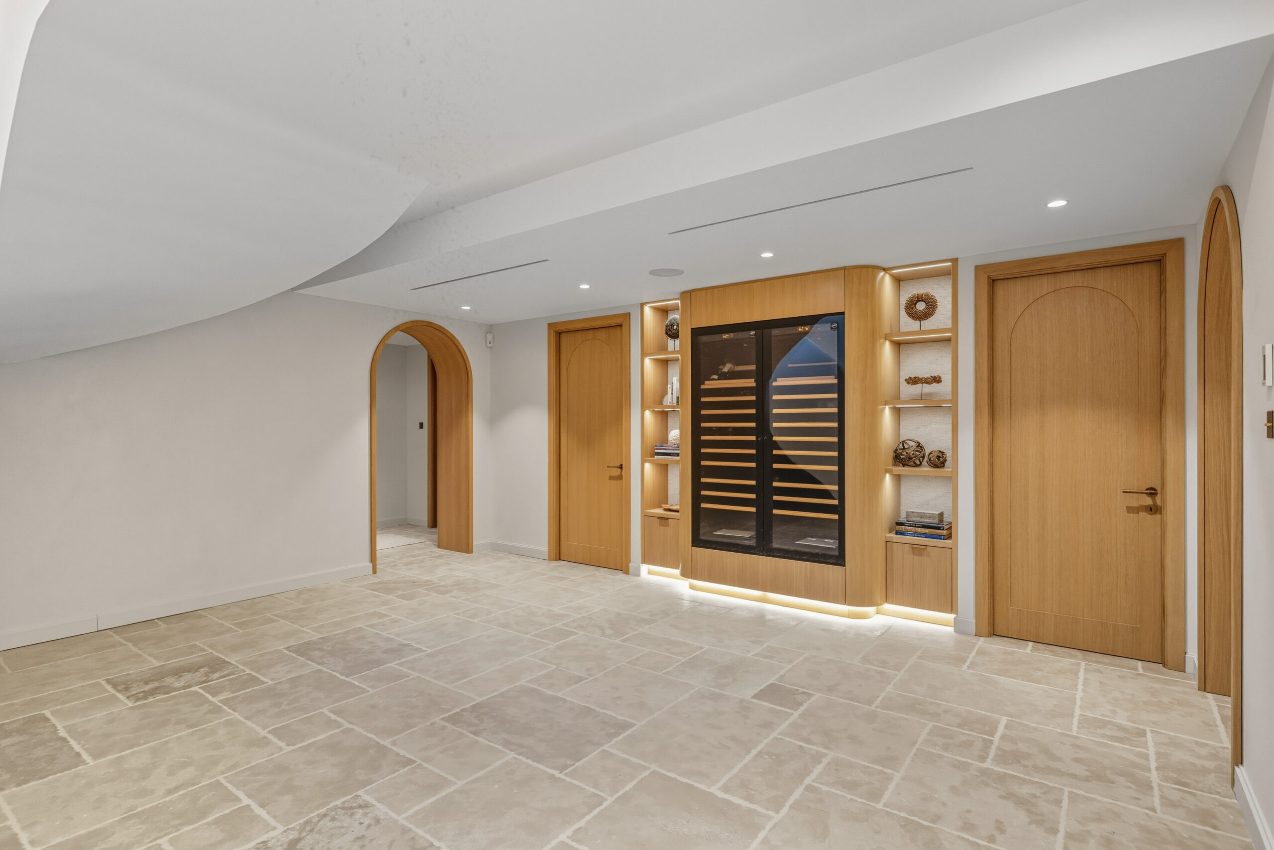 Set on an expansive 5,500 sqm plot, the villa boasts 750 sqm of meticulously curated interiors. The layout features seven spacious king or super-king bedroom suites, each with its own private en suite bathroom and generous built-in wardrobe, ensuring comfort and privacy for every guest.
