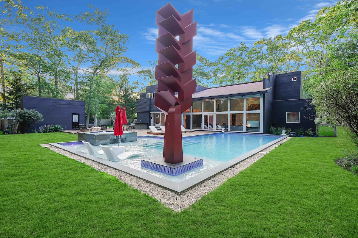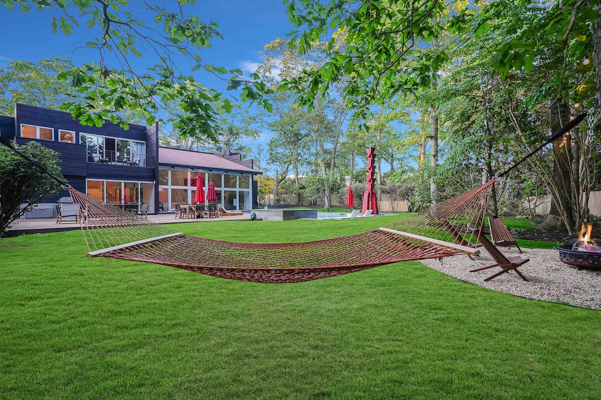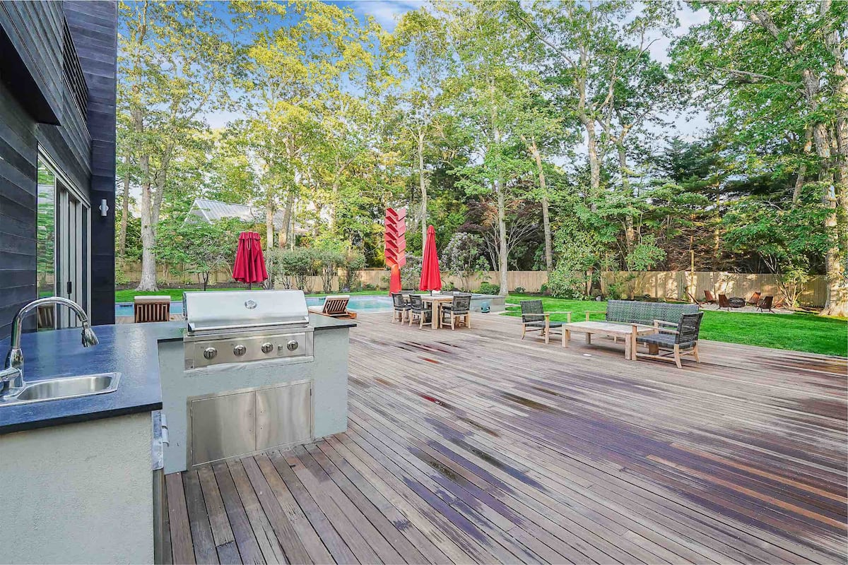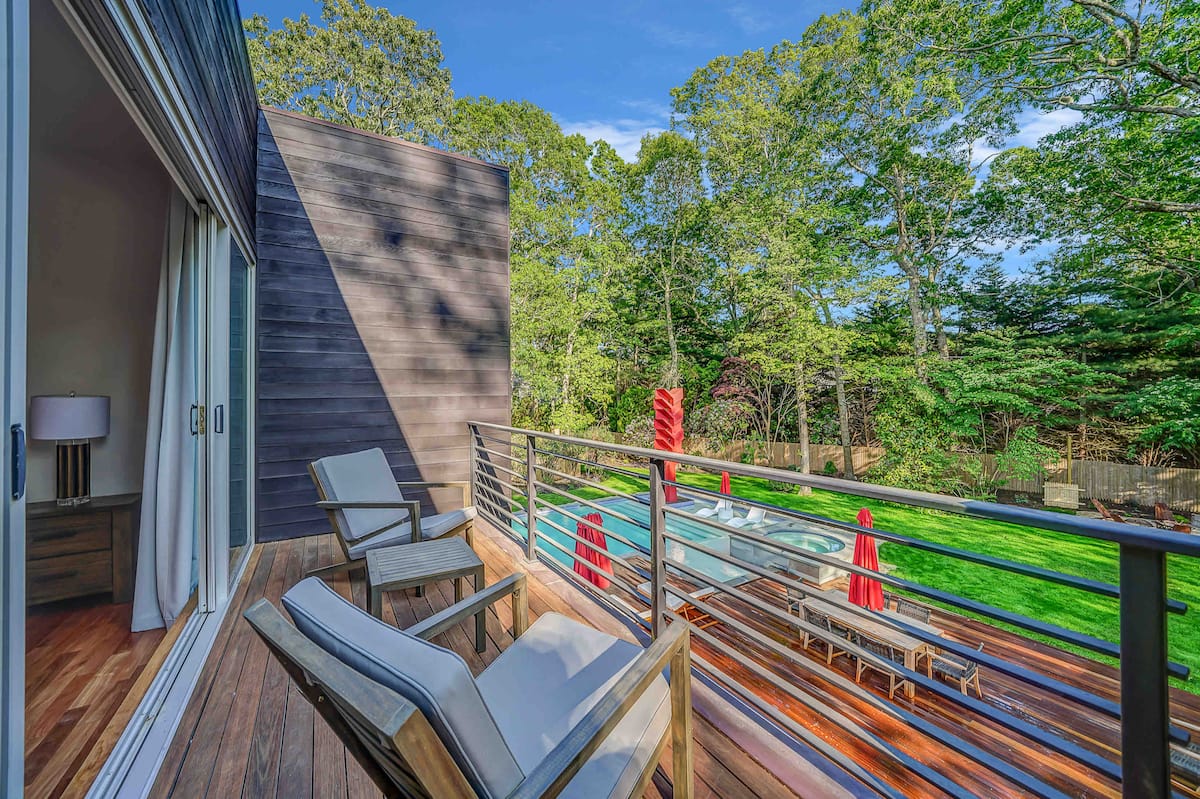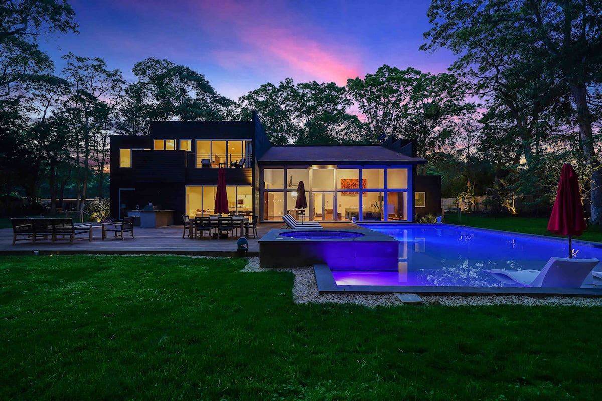 Welcome to your luxurious modern estate in the heart of East Hampton. This stunning property boasts sleek and contemporary design, with high-end finishes and top-of-the-line appliances throughout. The open-concept living space is perfect for entertaining, with a spacious living room, gourmet kitchen, and dining area that opens up to a beautiful outdoor patio. The master suite is a true oasis, featuring a king-sized bed, spa-like bathroom, and private balcony with breathtaking views of the surrounding landscape. Additional bedrooms are equally spacious and comfortable with all ensuite bathrooms with plenty of room for guests. Outside, you’ll find a beautifully landscaped yard, brand new pool and hot tub reaching up to 103 degrees, and outdoor bbq kitchen, perfect for enjoying the sunny East Hampton weather. With its prime location just minutes from the beach, shopping, celebrity spotting, world famous vineyards, and fine dinning. This modern estate is the ultimate East Hampton getaway. Our home is nestled on sought after south of the highway minutes from renown beaches and golf courses in and around EH areas.