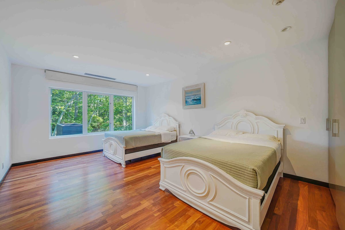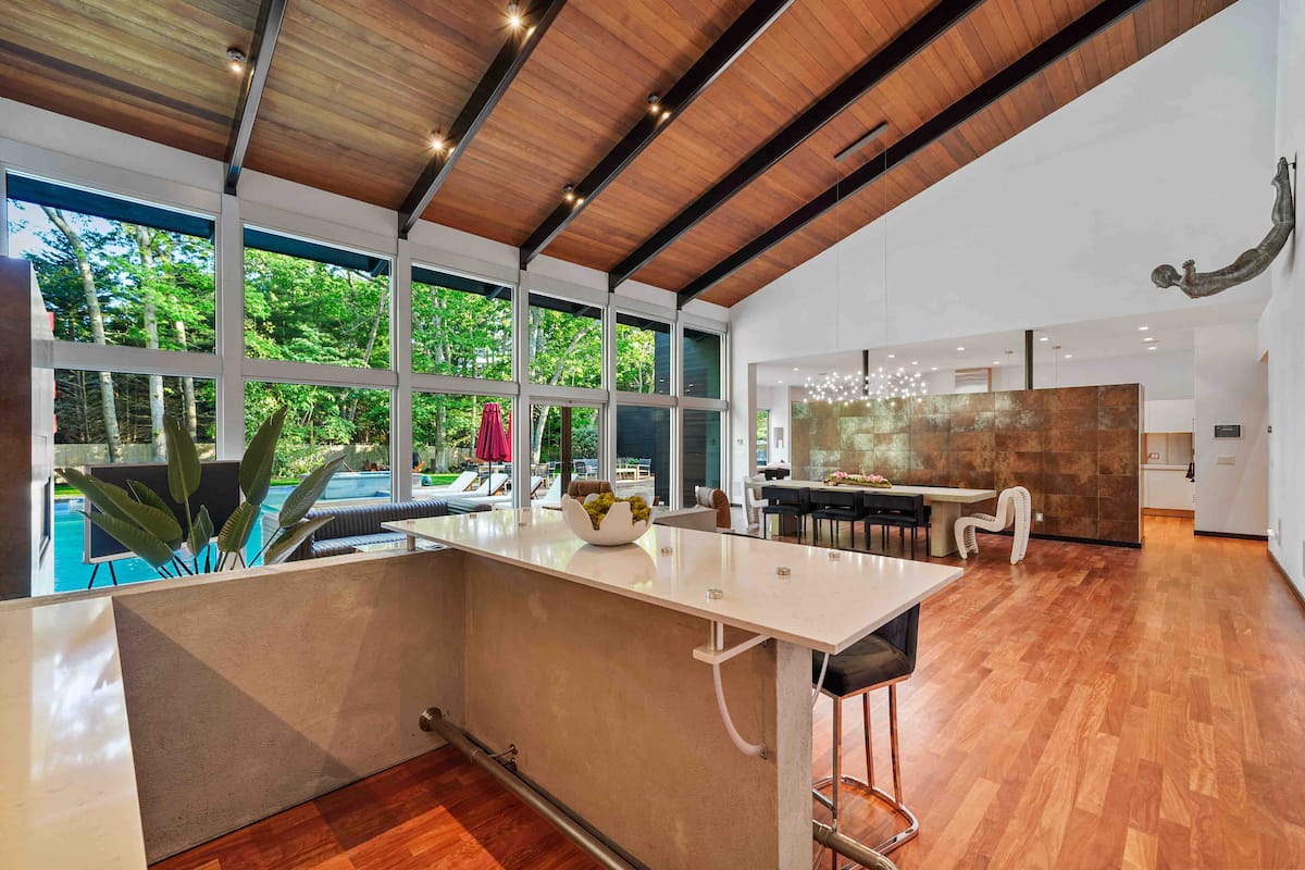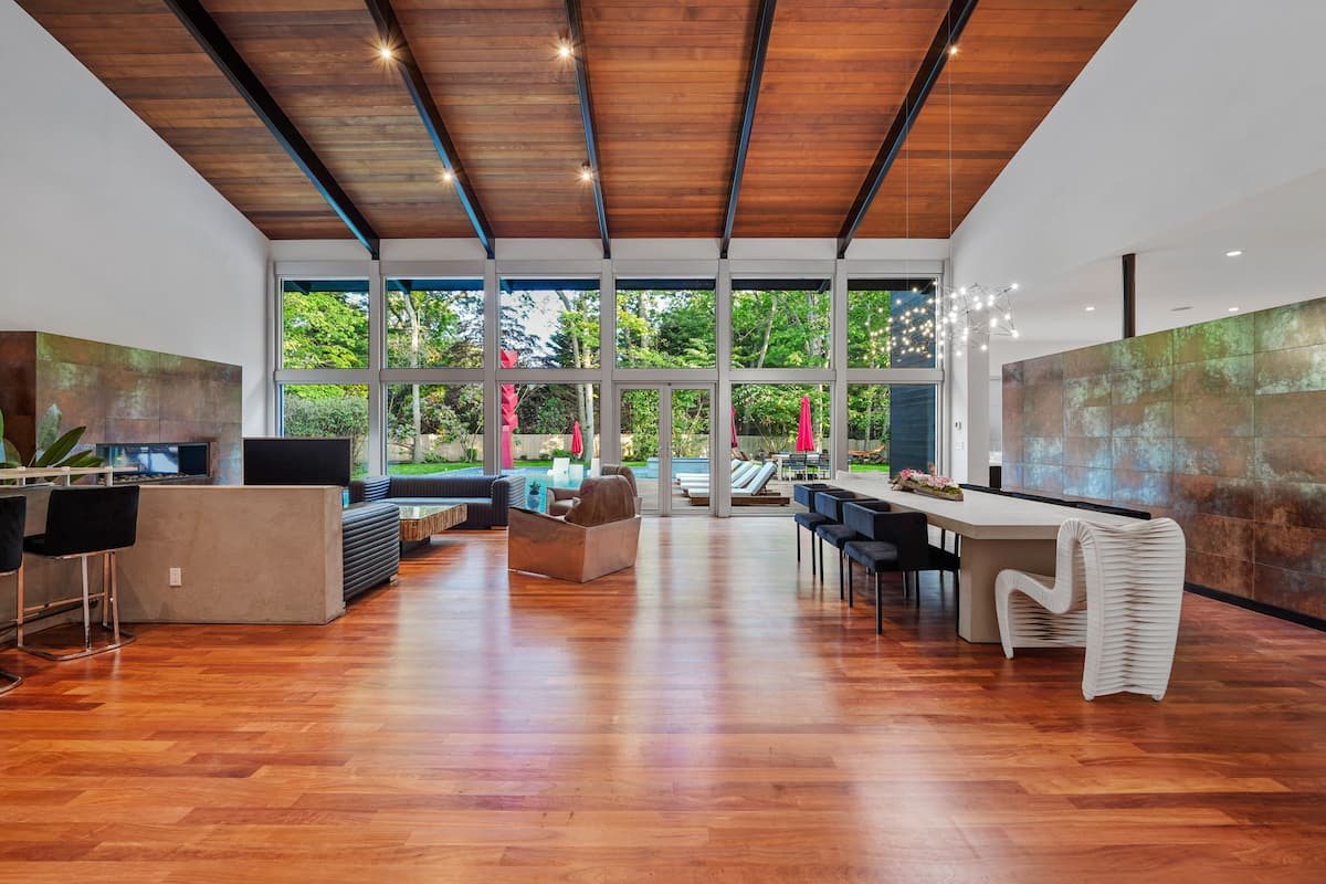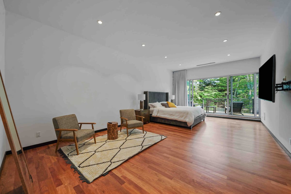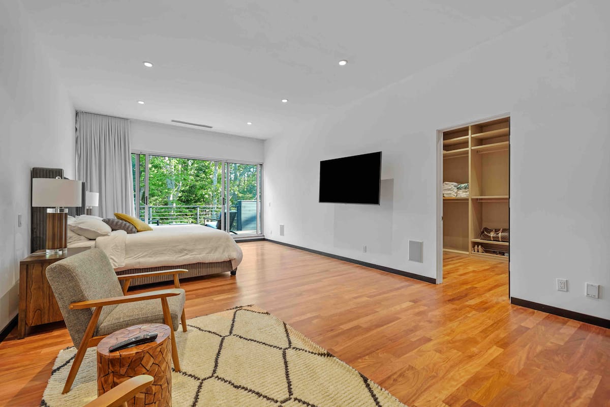 Welcome to your luxurious modern estate in the heart of East Hampton. This stunning property boasts sleek and contemporary design, with high-end finishes and top-of-the-line appliances throughout. The open-concept living space is perfect for entertaining, with a spacious living room, gourmet kitchen, and dining area that opens up to a beautiful outdoor patio. The master suite is a true oasis, featuring a king-sized bed, spa-like bathroom, and private balcony with breathtaking views of the surrounding landscape. Additional bedrooms are equally spacious and comfortable with all ensuite bathrooms with plenty of room for guests. Outside, you’ll find a beautifully landscaped yard, brand new pool and hot tub reaching up to 103 degrees, and outdoor bbq kitchen, perfect for enjoying the sunny East Hampton weather. With its prime location just minutes from the beach, shopping, celebrity spotting, world famous vineyards, and fine dinning. This modern estate is the ultimate East Hampton getaway. Our home is nestled on sought after south of the highway minutes from renown beaches and golf courses in and around EH areas.
