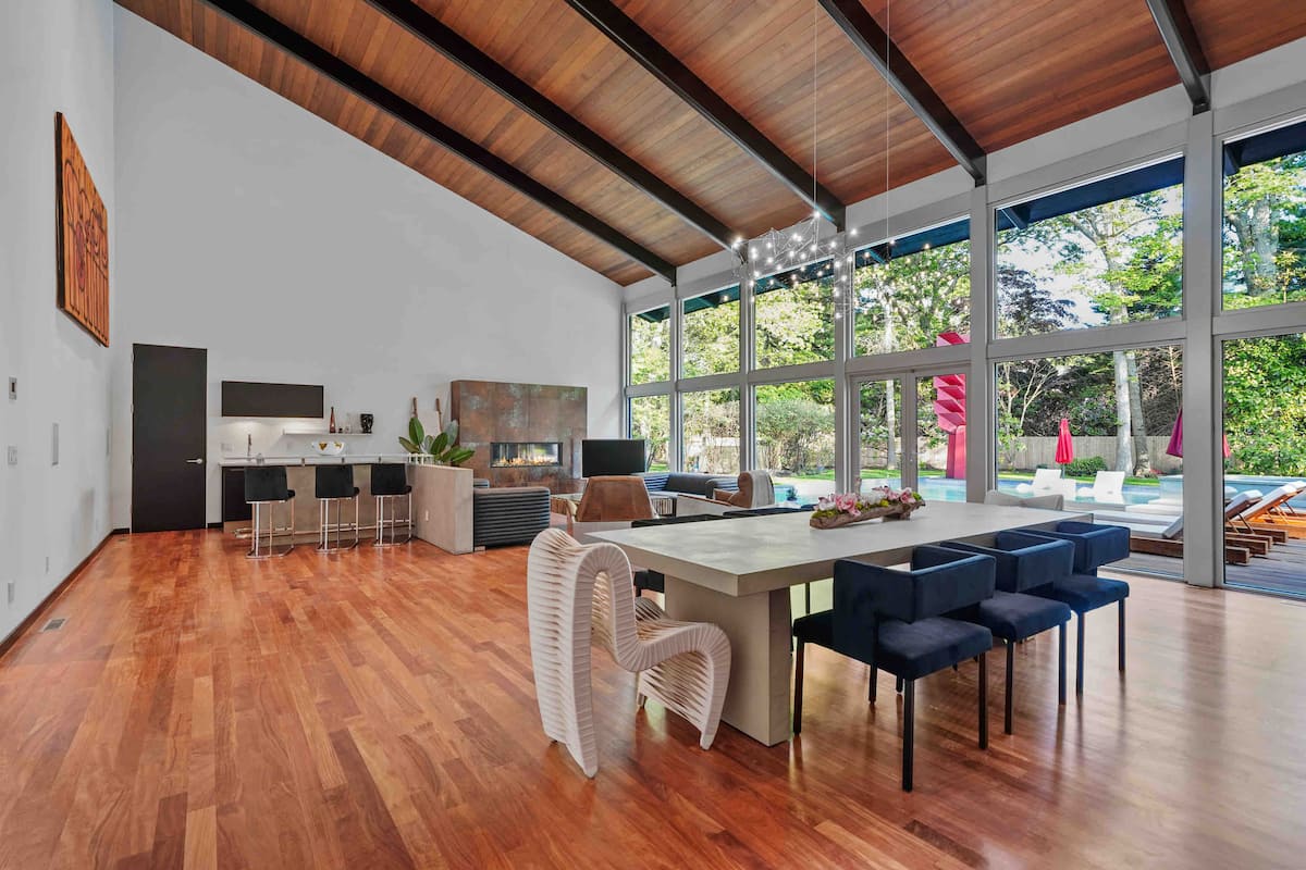 Indulge in luxurious coastal living at this stunning Art Deco retreat nestled in the prestigious East Hampton. Newly renovated, this exquisite home blends modern sophistication with timeless elegance. Boasting five spacious bedrooms and seven well-appointed bathrooms, the residence is designed to accommodate relaxation and style. Many restaurants ,vineyards, and beaches less than 4 min drive. Bicycles available.