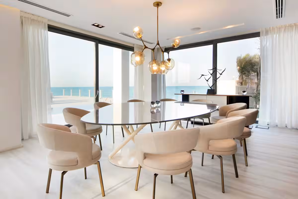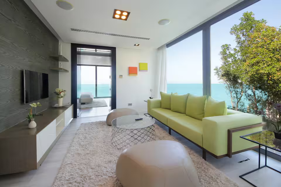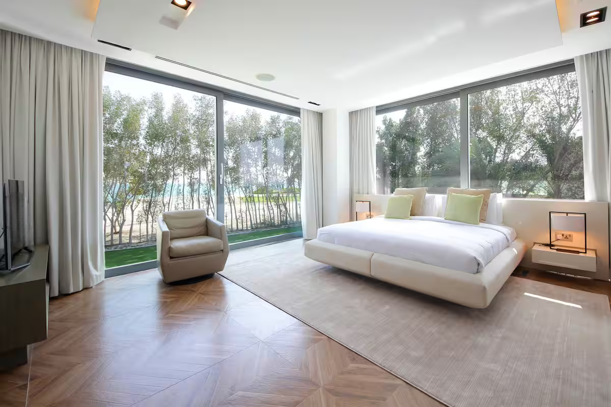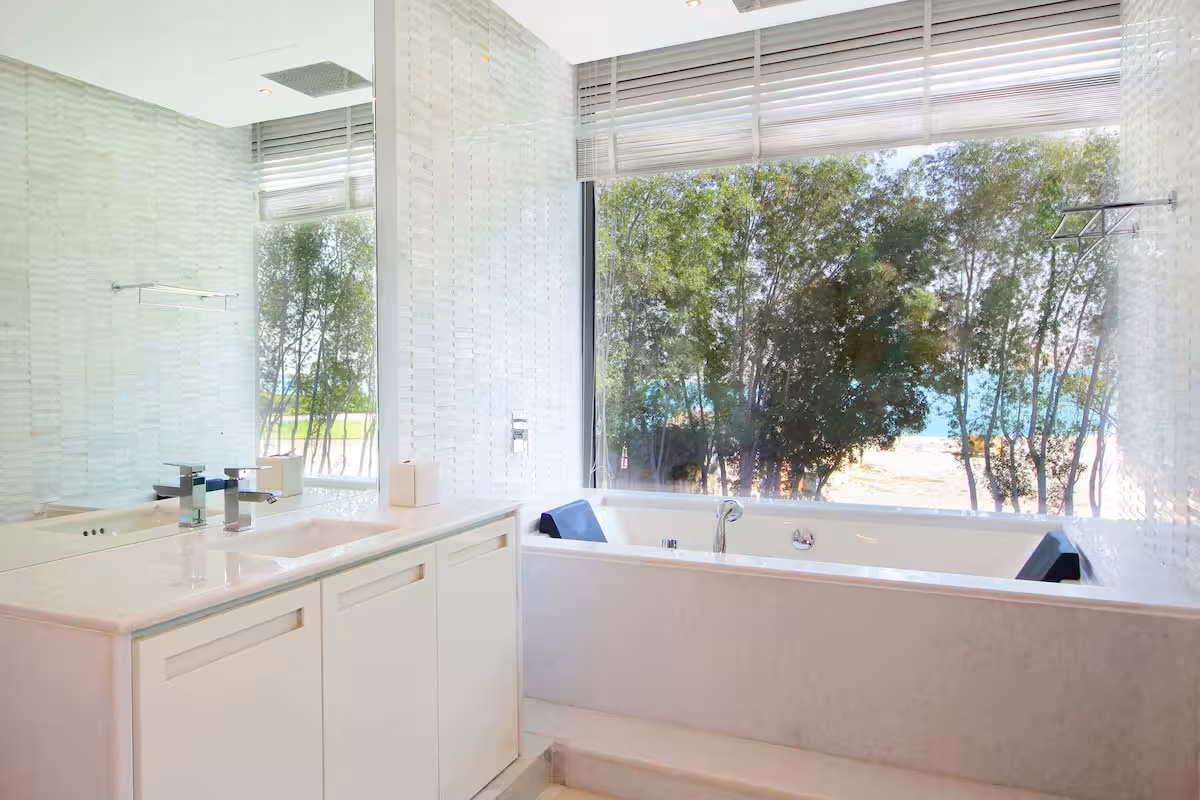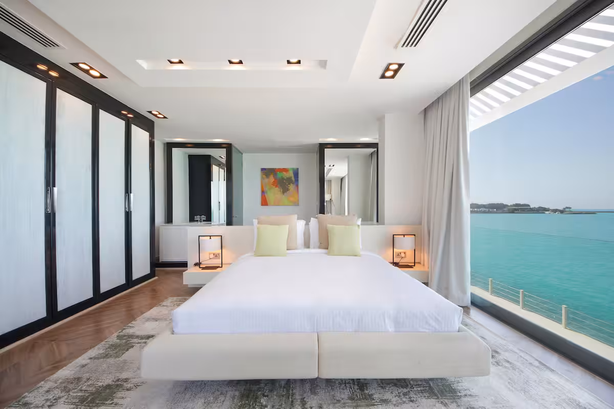 Each bedroom is airy and modern, with large windows framing breathtaking views of the ocean, gardens, or waterfront. Designed in soothing neutral tones with tasteful decor, these rooms provide a tranquil and luxurious sanctuary for rest and rejuvenation.